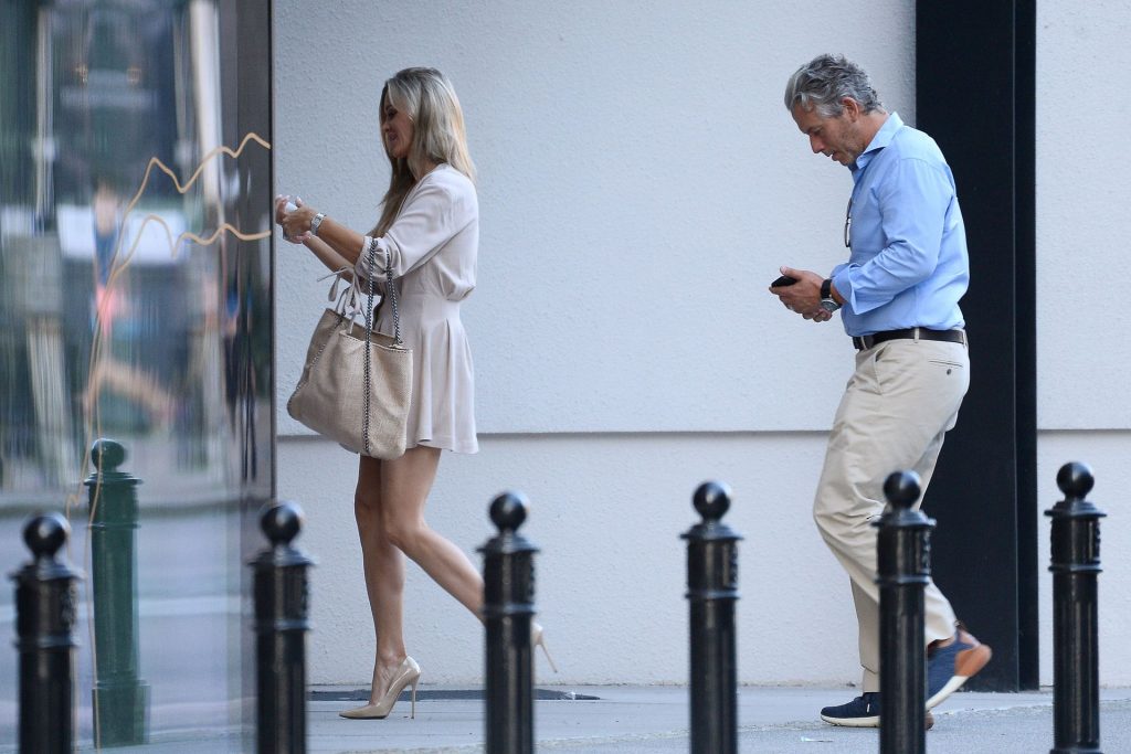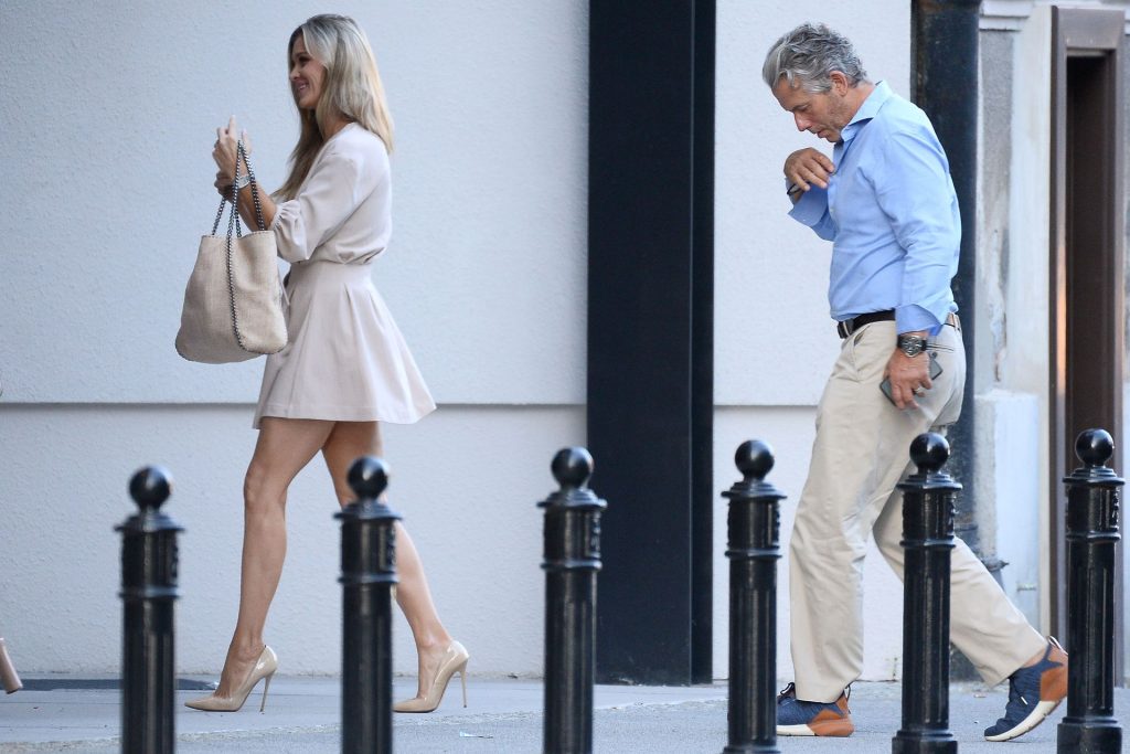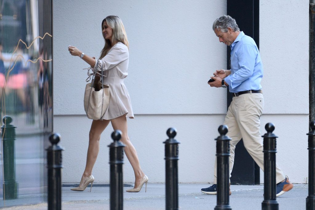 Длинноногие актриса/модель Йоанна Крупа (41) и её муж идут в ресторан Nobu в Варшаве, Польша, 08/09/2020.