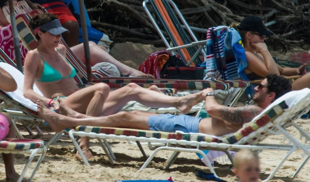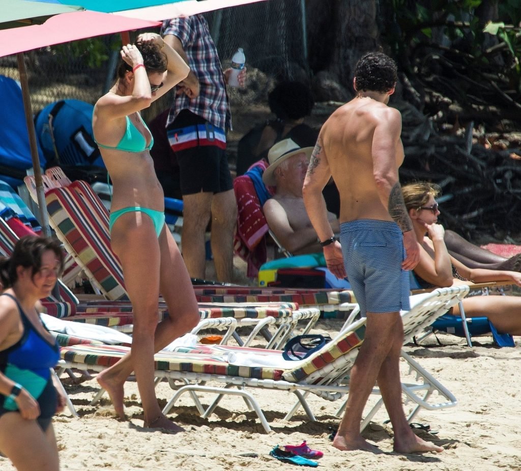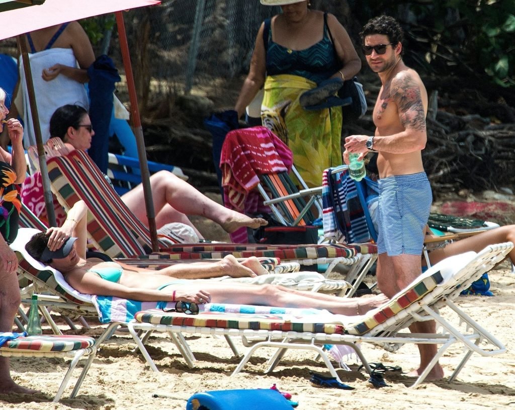 Бывшая британская модель Джоди Кидд (40) и её парень Джозеф Бэйтс замечены на пляже на Барбадосе, 10.04.2019.