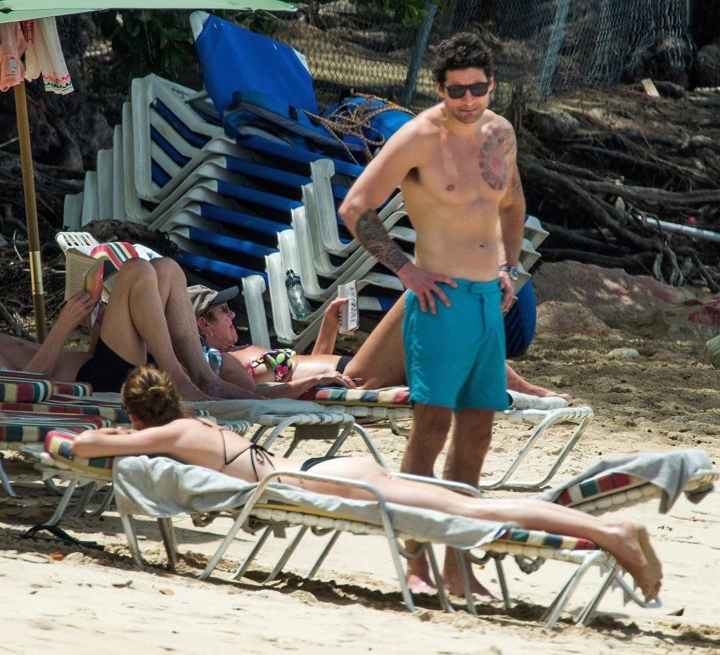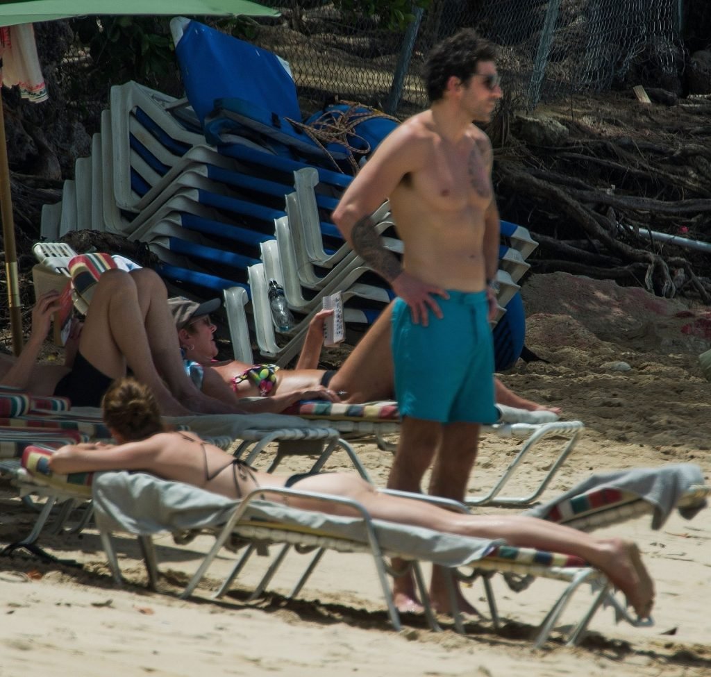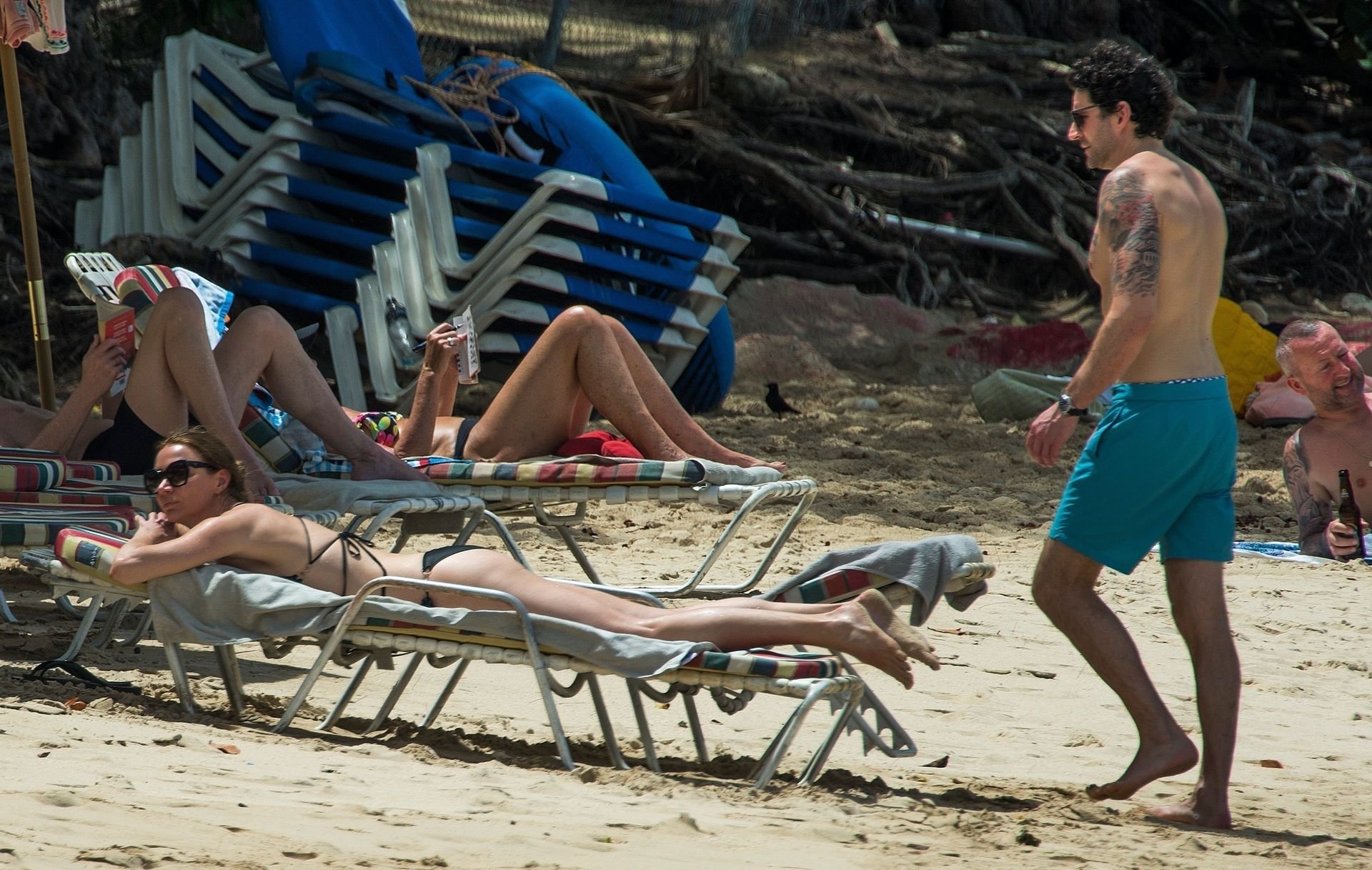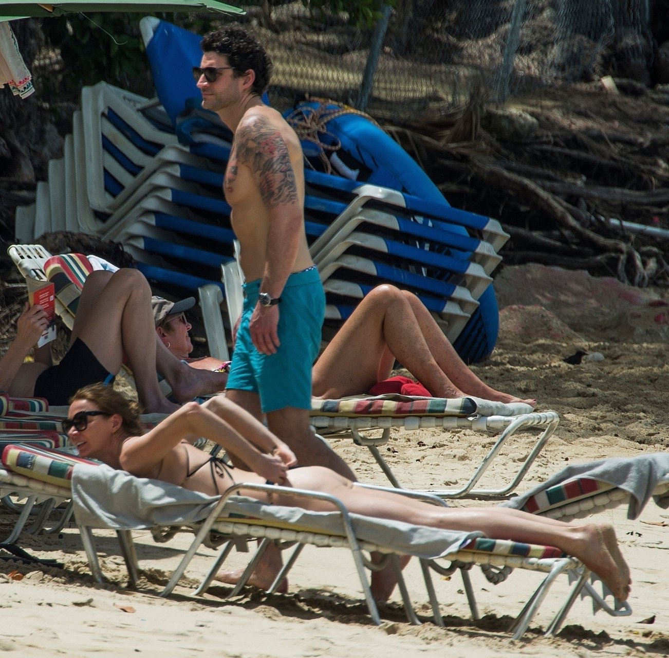 Английская модель, автогонщица и телеведущая Джоди Кидд (40) и её парень Джозеф Бейтс были замечены на пляже рано утром в субботу во время отпуска на Барбадосе, 04/07/2019.