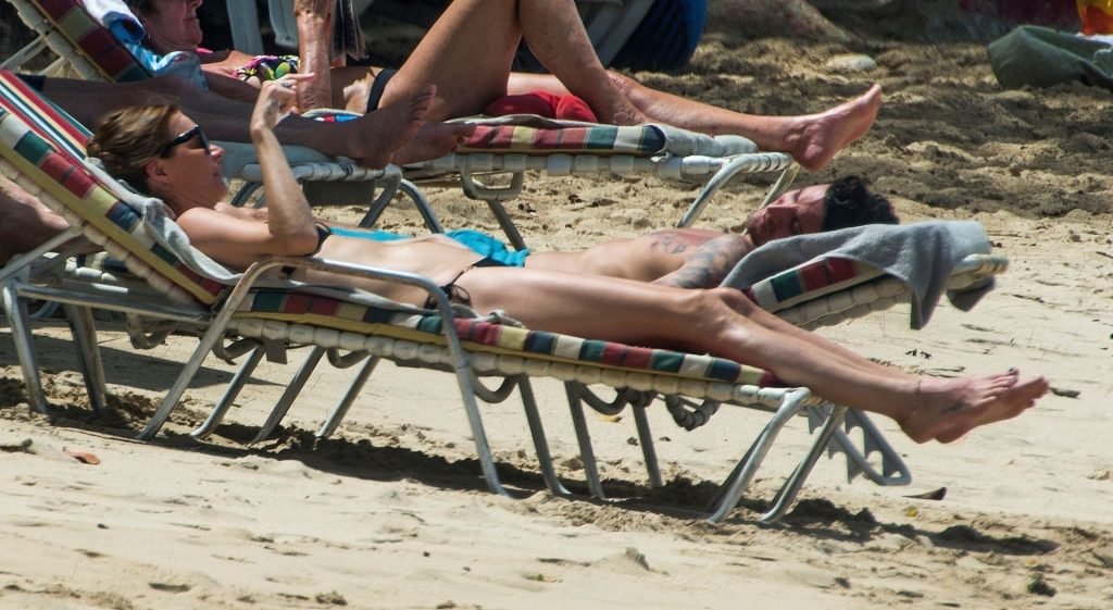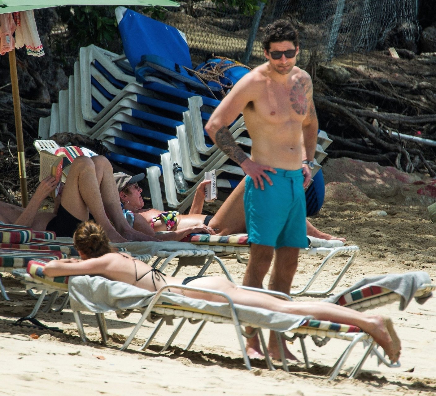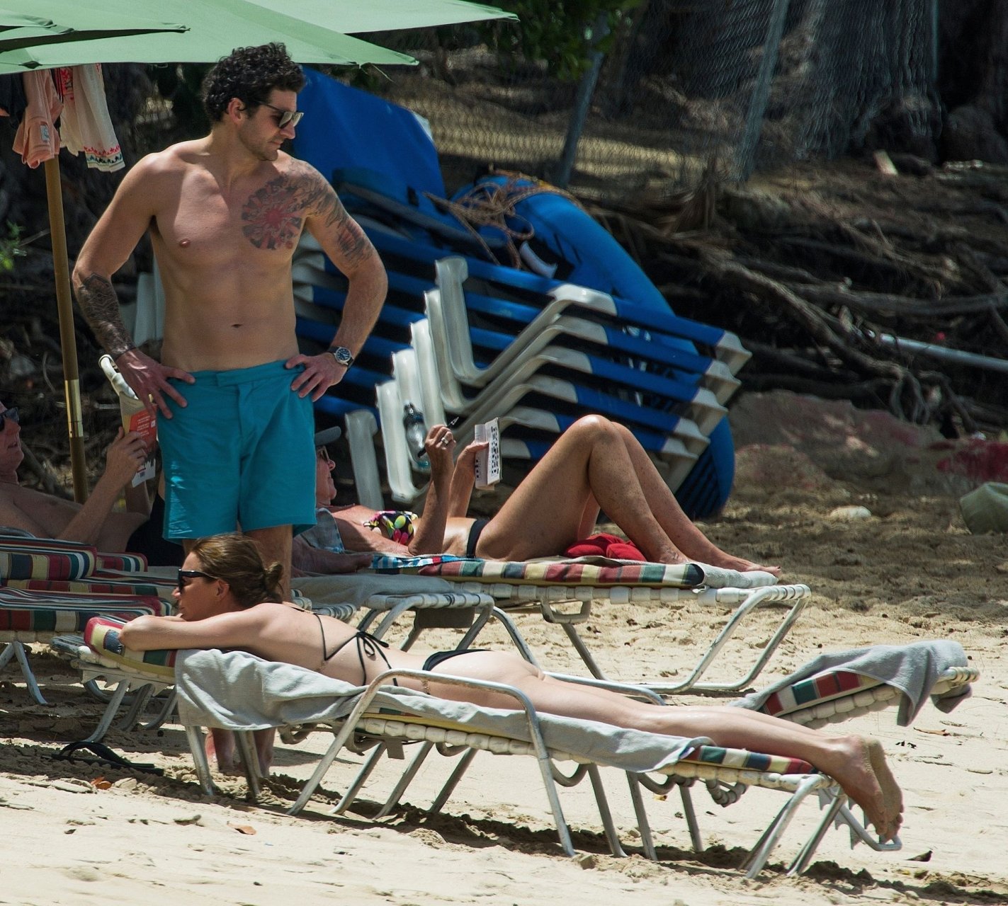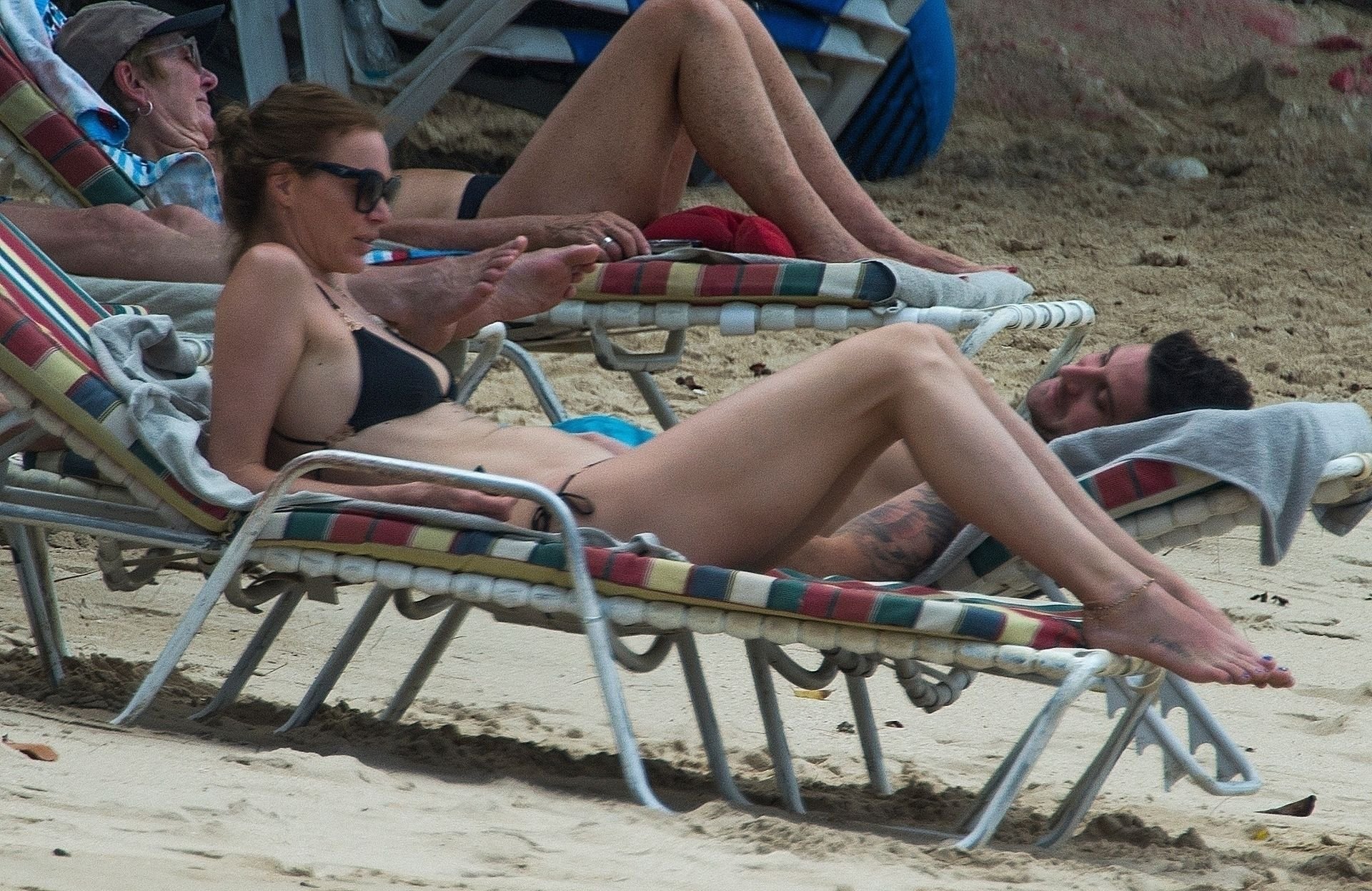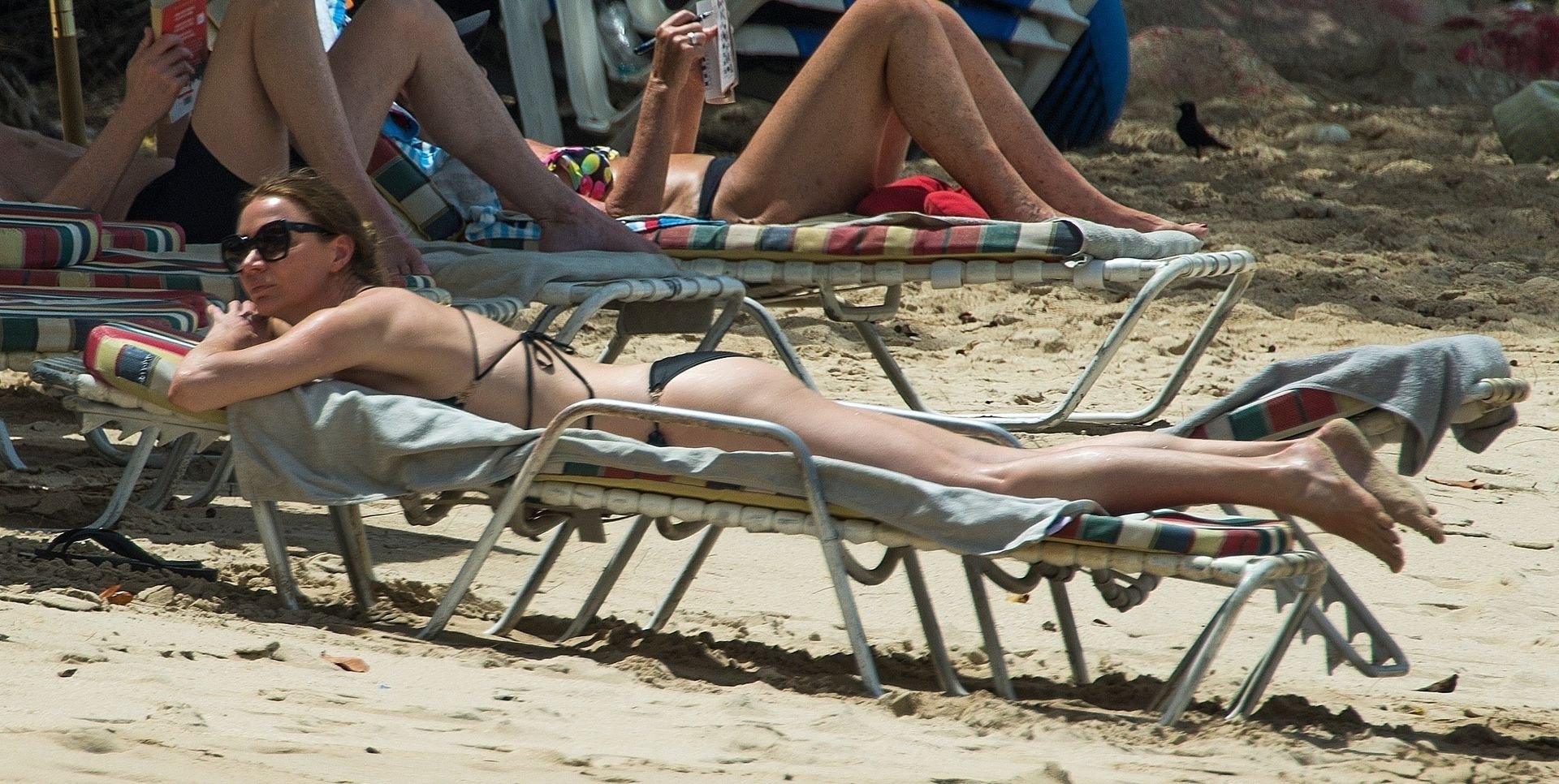 Английская модель, автогонщица и телеведущая Джоди Кидд (40) и её парень Джозеф Бейтс были замечены на пляже рано утром в субботу во время отпуска на Барбадосе, 04/07/2019.