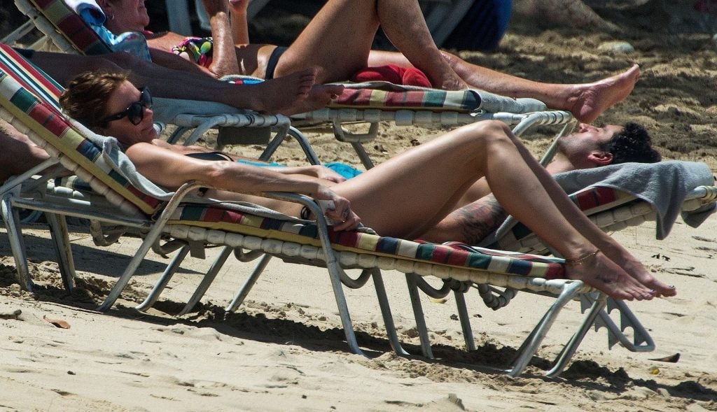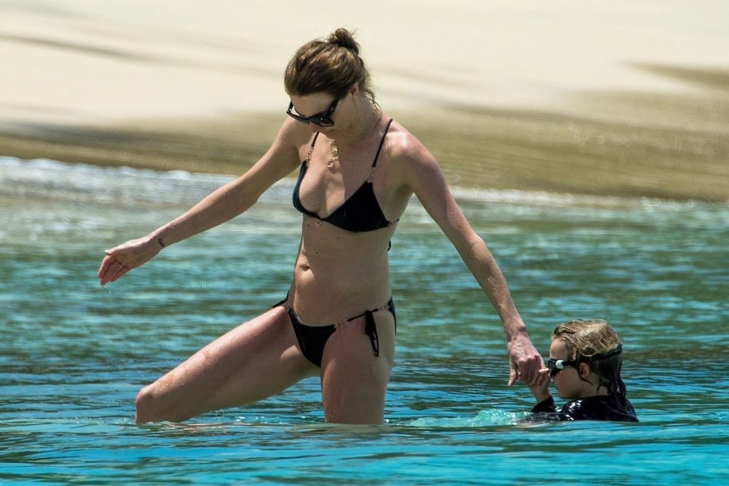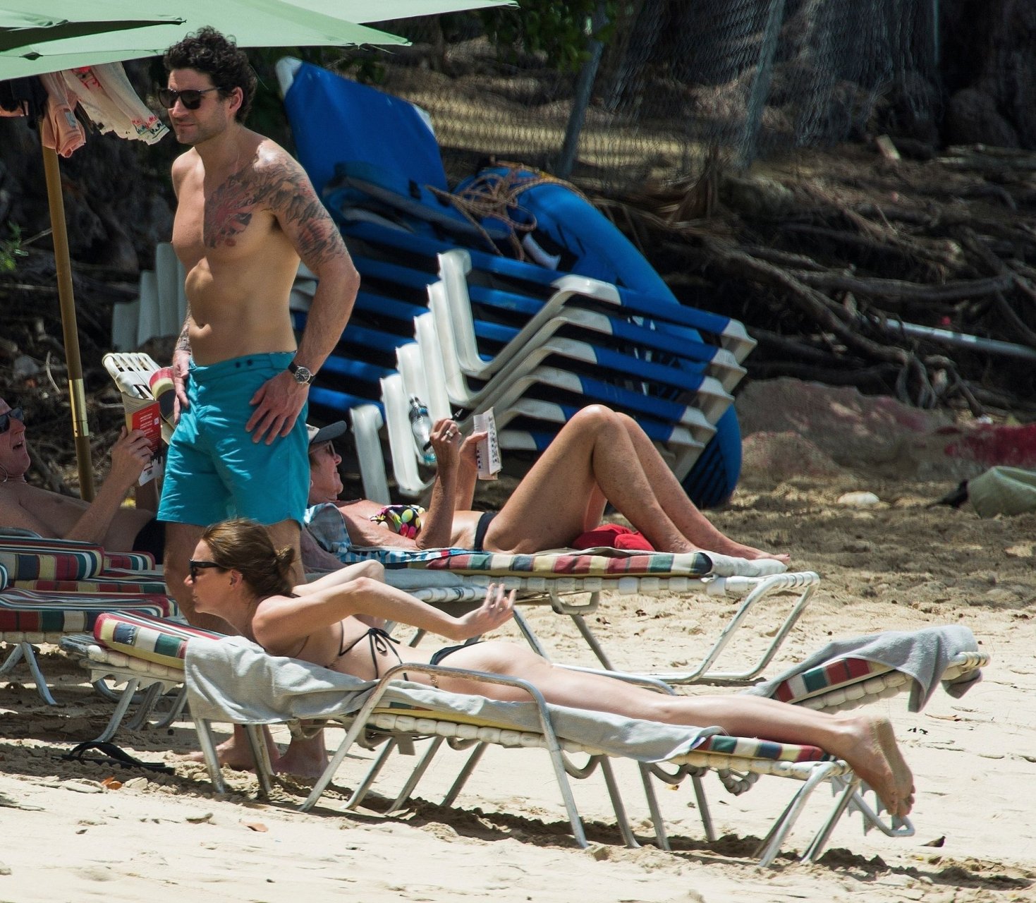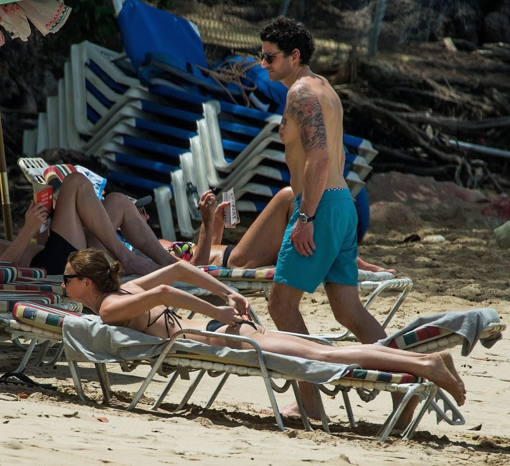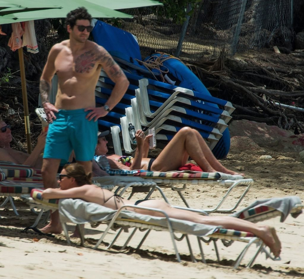 Английская модель, автогонщица и телеведущая Джоди Кидд (40) и её парень Джозеф Бейтс были замечены на пляже рано утром в субботу во время отпуска на Барбадосе, 04/07/2019.
