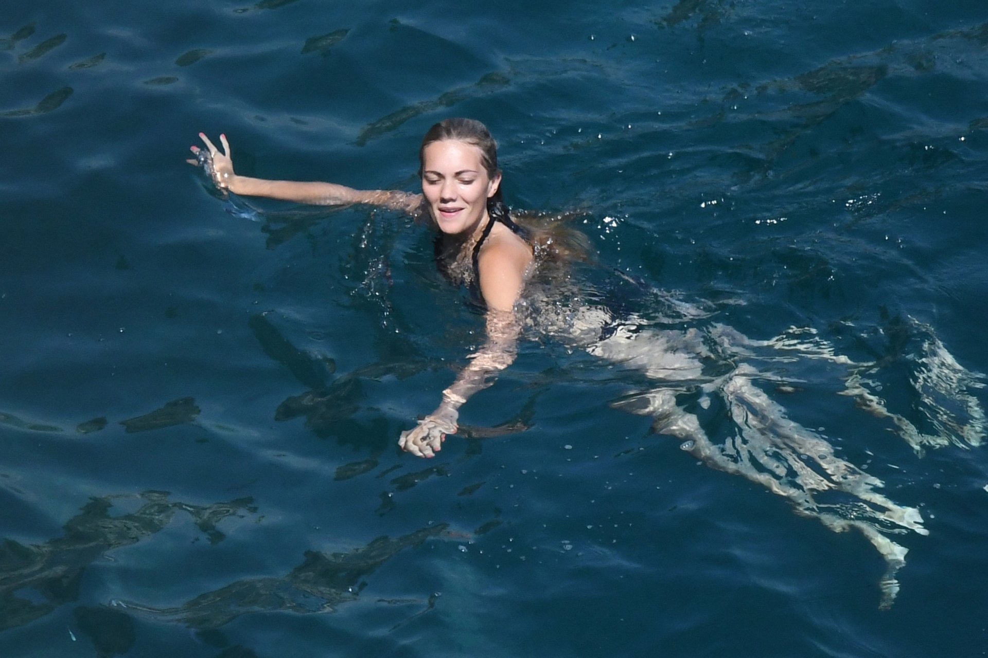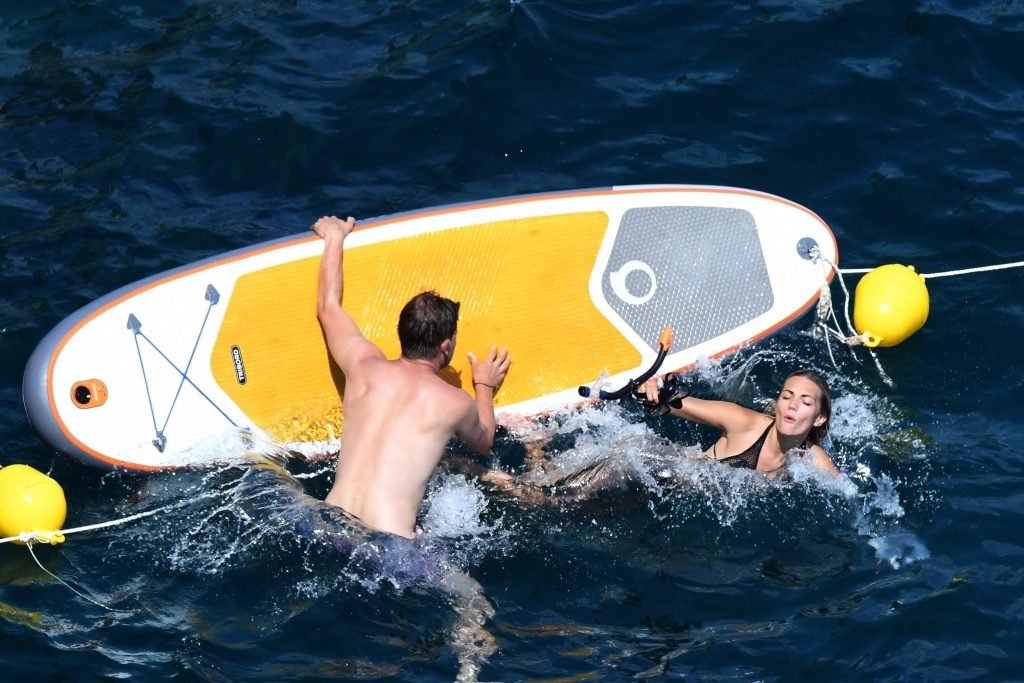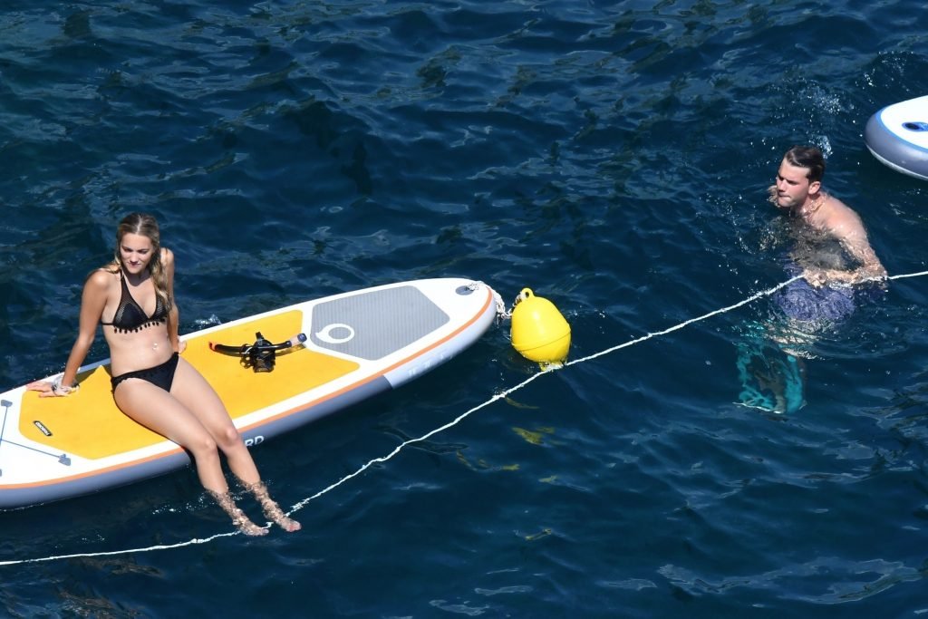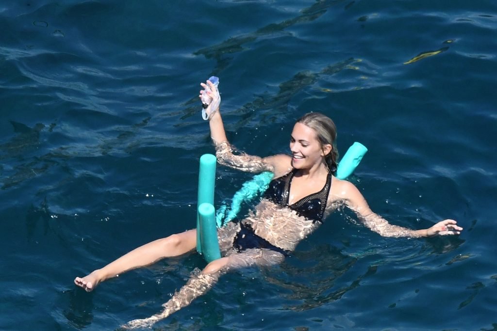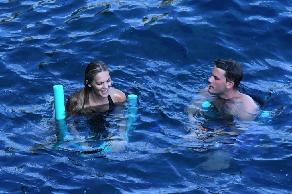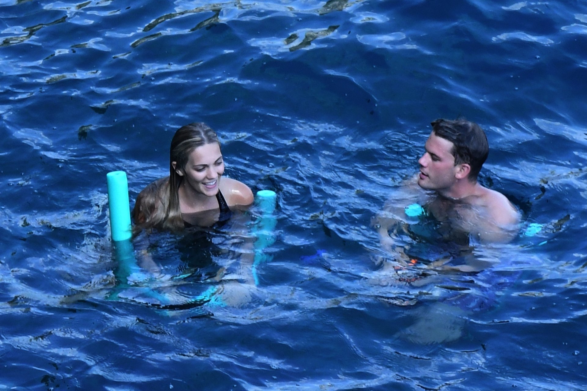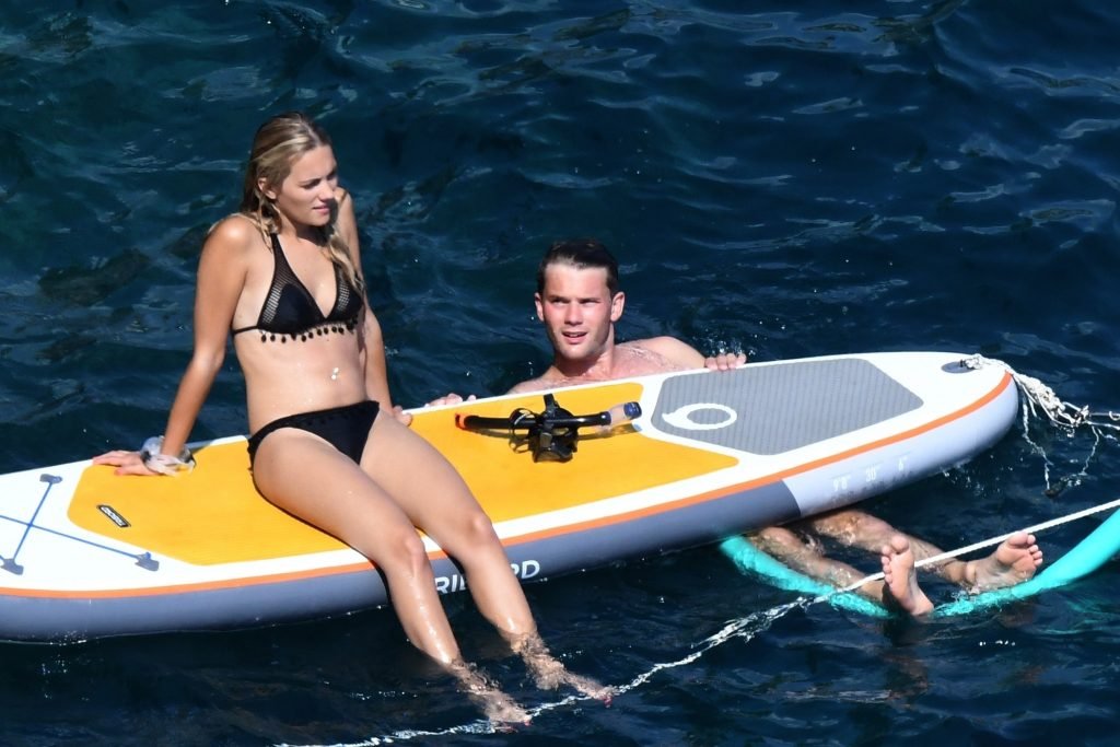 Звезда “Мамма Мия” Джереми Ирвин и его девушка, модель Джоди Спенсер (22), произвели фурор в прекрасном Позитано, 26.07.2018. Пару видели занимающимися снорклингом и наслаждающимися прекрасным днем у моря.