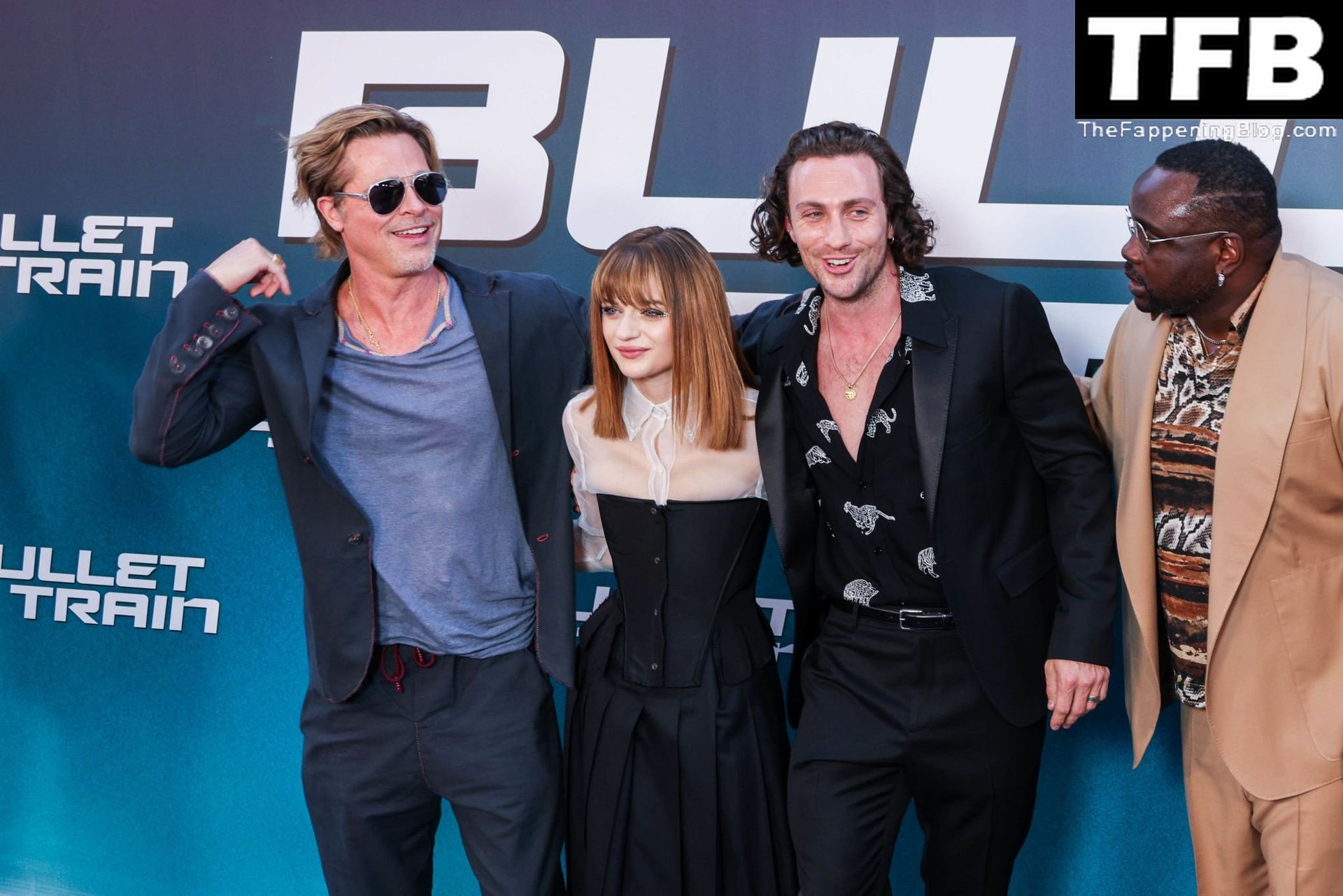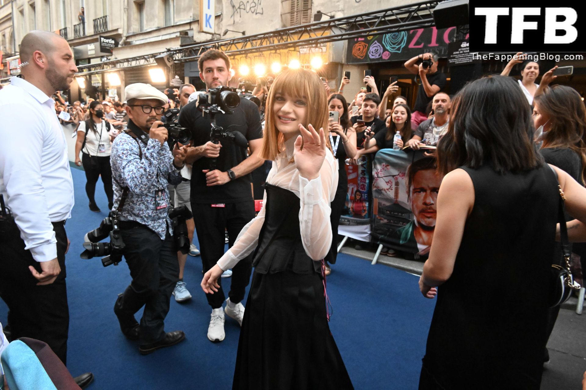 Американская актриса Джоуи Кинг позирует во время предпросмотра фильма “Скоростной поезд” в Париже, 18.07.2022.