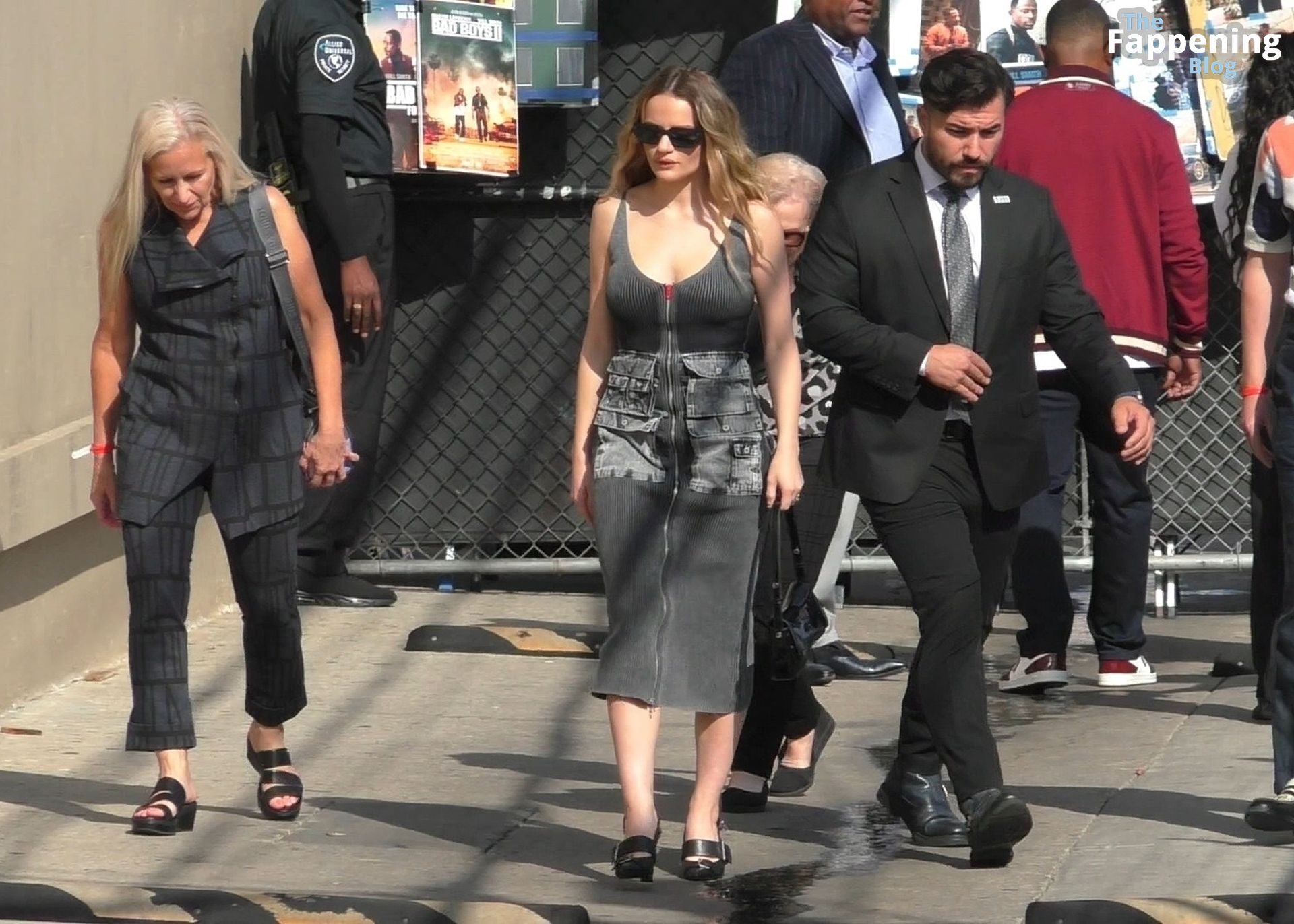 Актриса Джои Кинг выглядела потрясающе, когда приехала на шоу ‘Jimmy Kimmel Live!’, выбрав элегантное, облегающее платье.