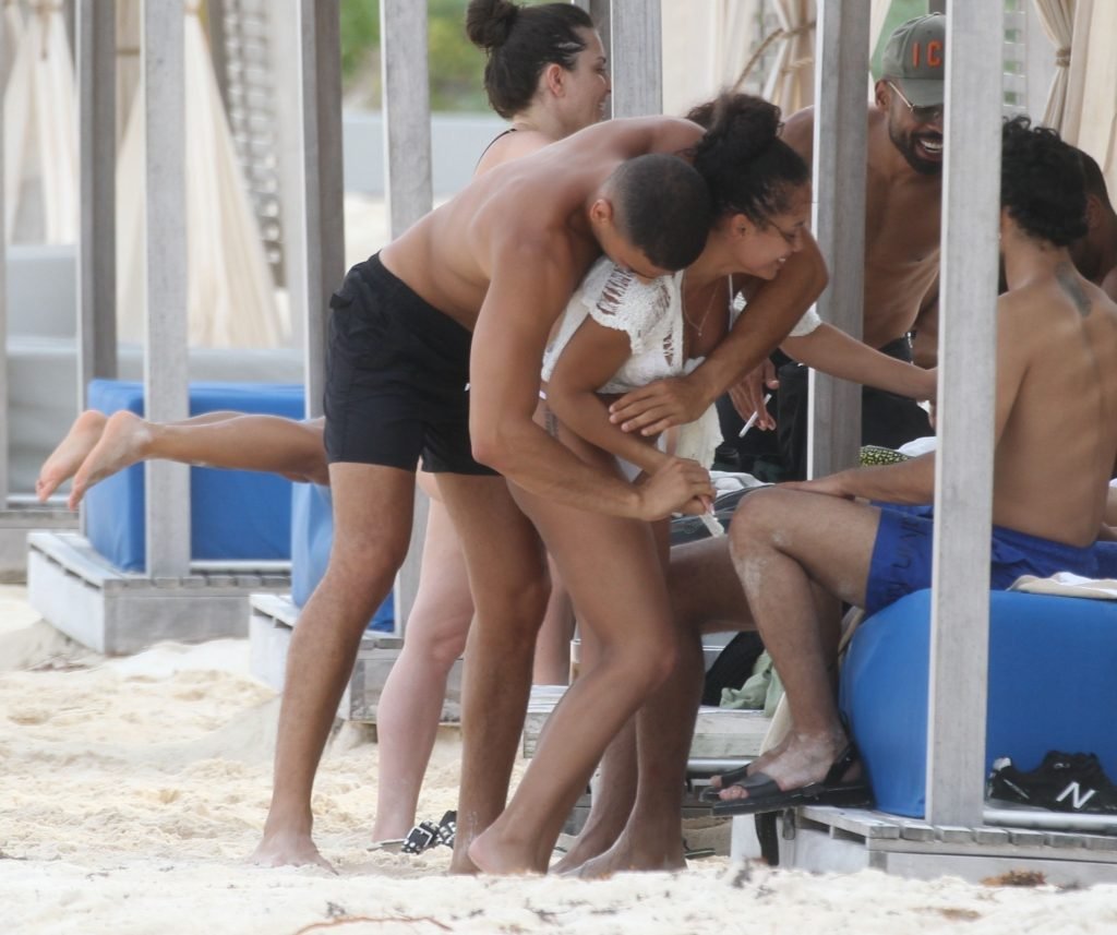 Парень Кортни Кардашьян Юнес Бенджима был замечен в очень игривом настроении с бывшей девушкой Тайги Джордан Озуна во время отпуска в Мексике, 07.08.2018.