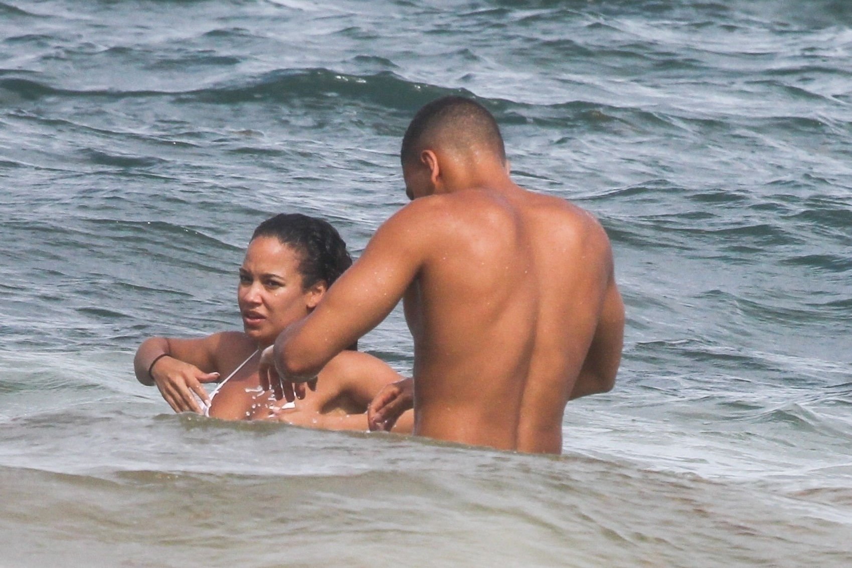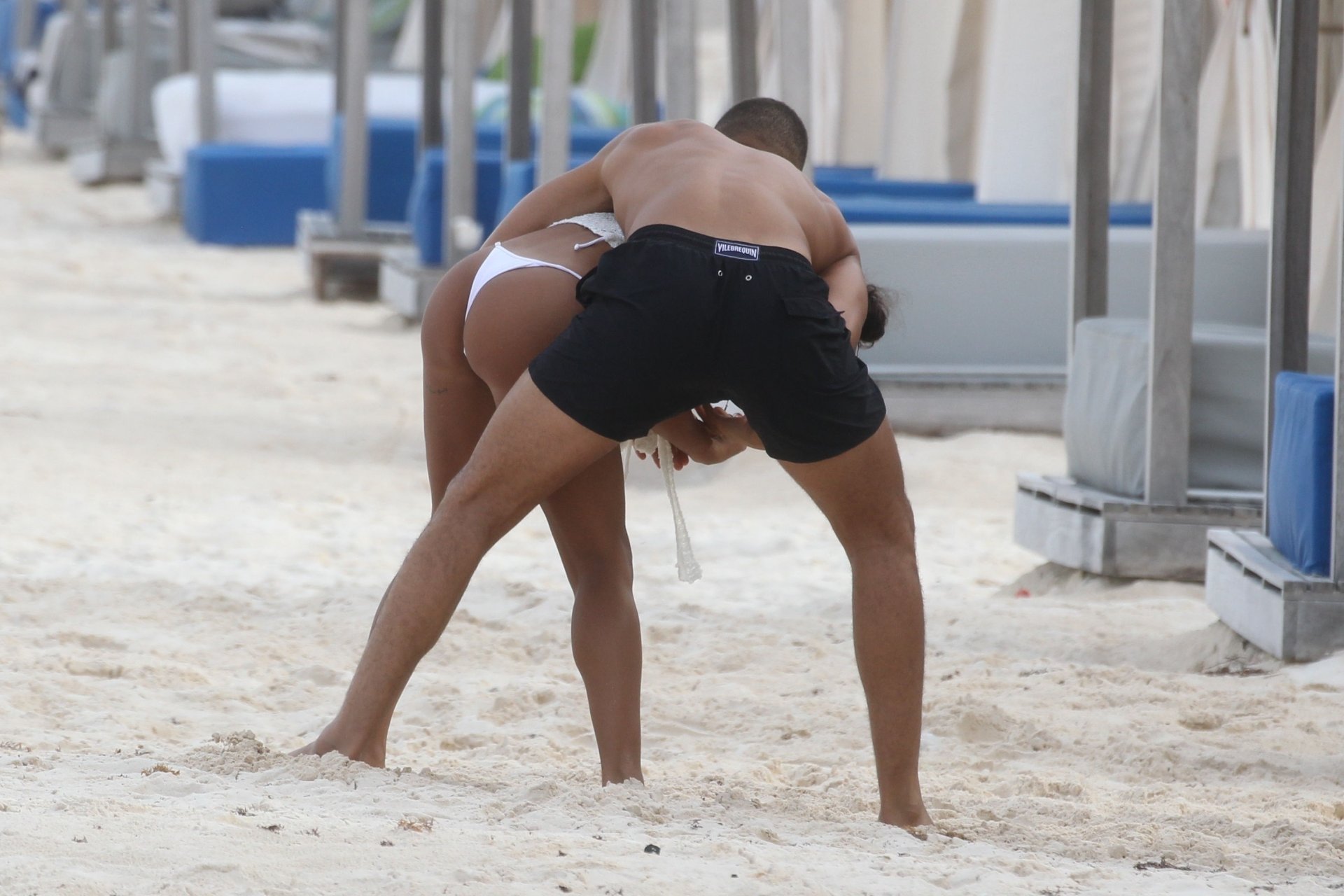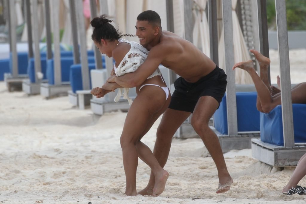 Юнес поднимал 28-летнюю красавицу, когда они игриво боролись на песке. Парень Кортни обнял Джордан, поднял её и позже был замечен, играющим с ней в воде, бросая в её сторону морские водоросли и вместе отдыхая на пляжной кровати.