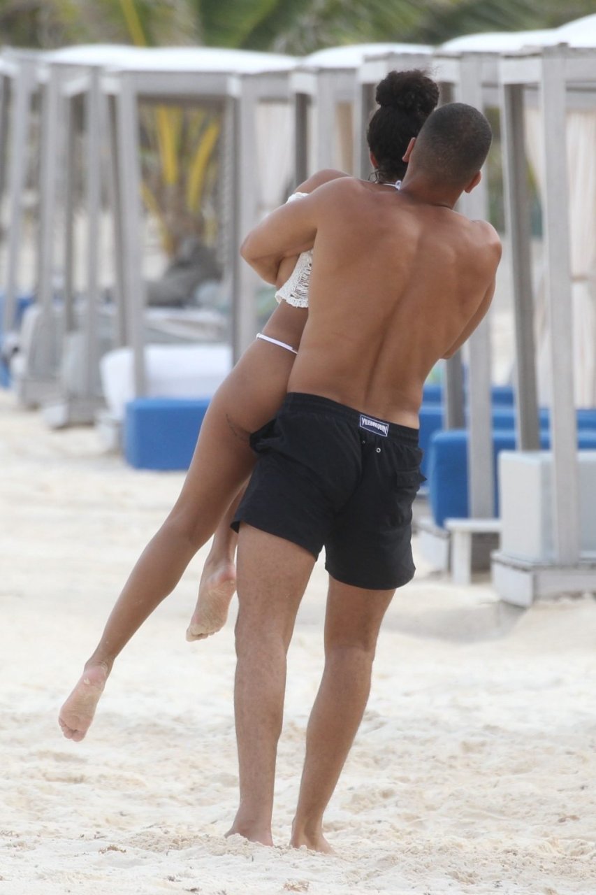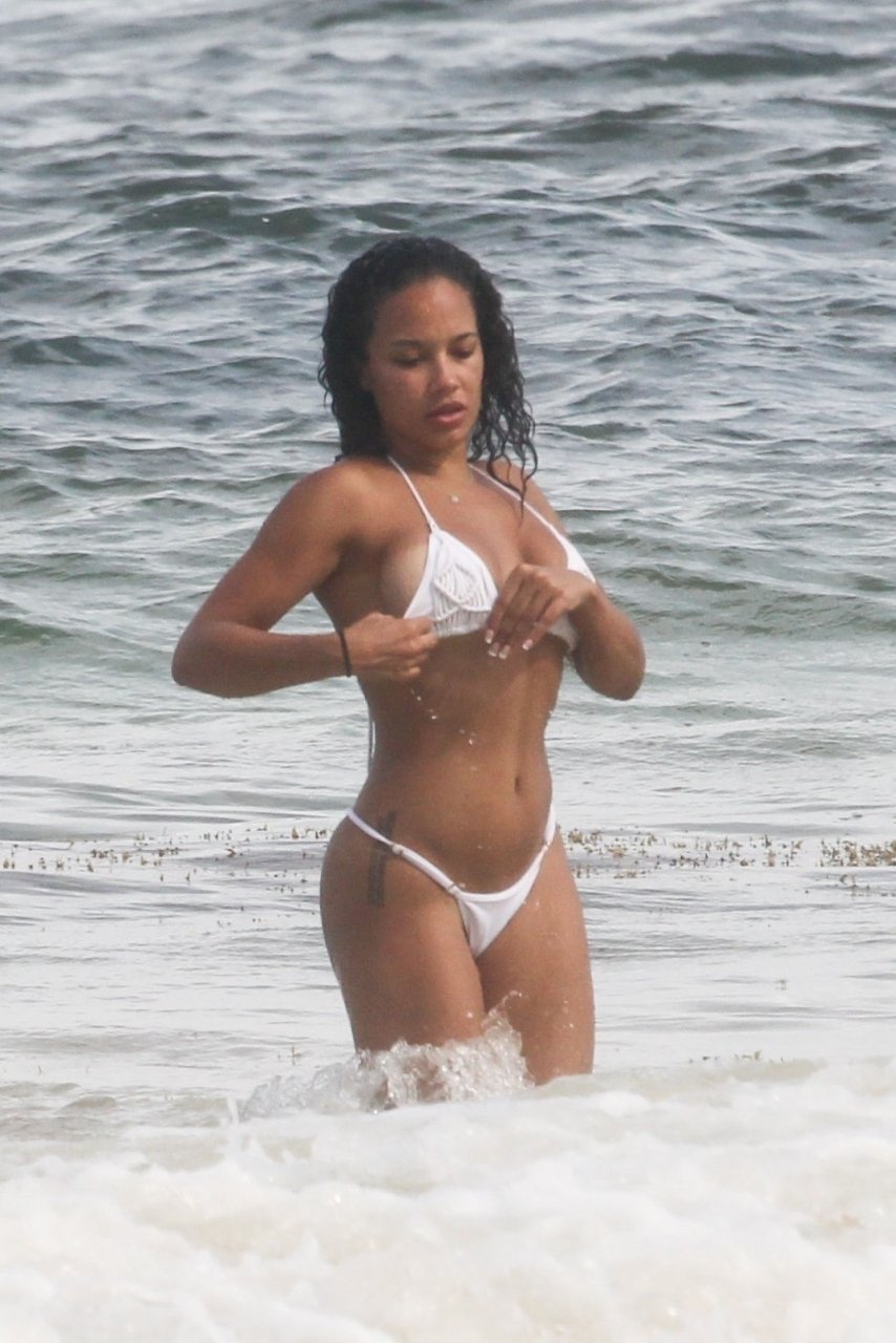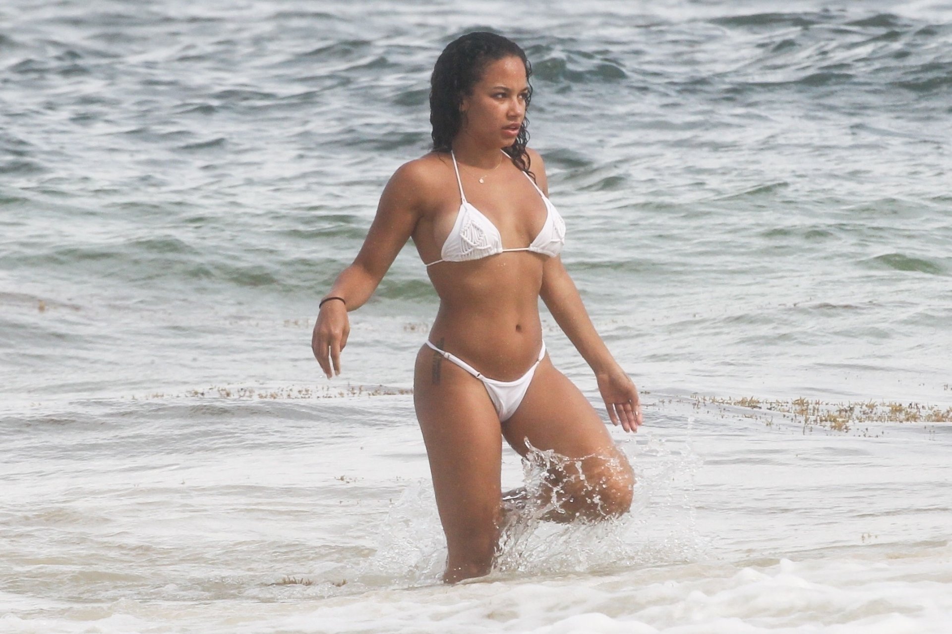 Юнес поднимал 28-летнюю красавицу, когда они игриво боролись на песке. Парень Кортни обнял Джордан, поднял её и позже был замечен, играющим с ней в воде, бросая в её сторону морские водоросли и вместе отдыхая на пляжной кровати.