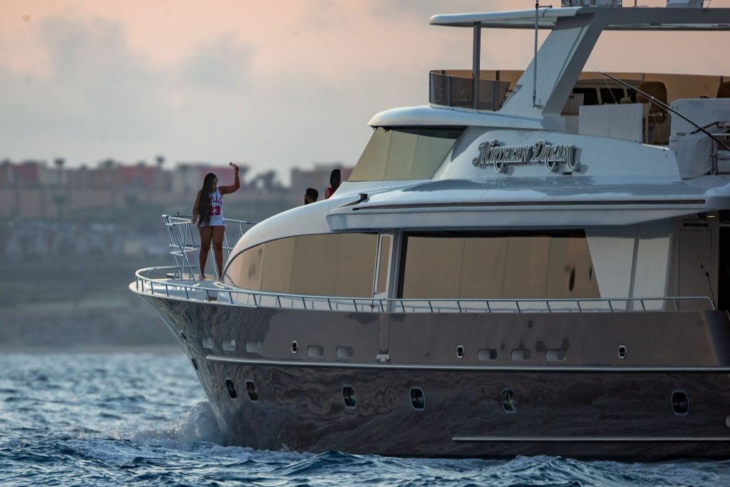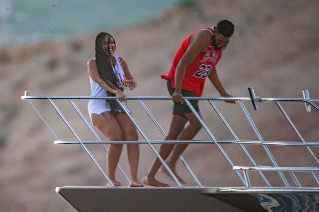 Вечеринка по случаю дня рождения Джордин была выдержана в черно-красной тематике и включала индивидуальные майки “Woods” с номером 23! Таунс также подарил Джордин подписанную майку Майкла Джордана, которая продается примерно за 8 тысяч долларов. Джордин отдыхает в Кабо, и пару видели расслабляющимися на яхте, катающимися на гидроцикле и проводящими вместе день.