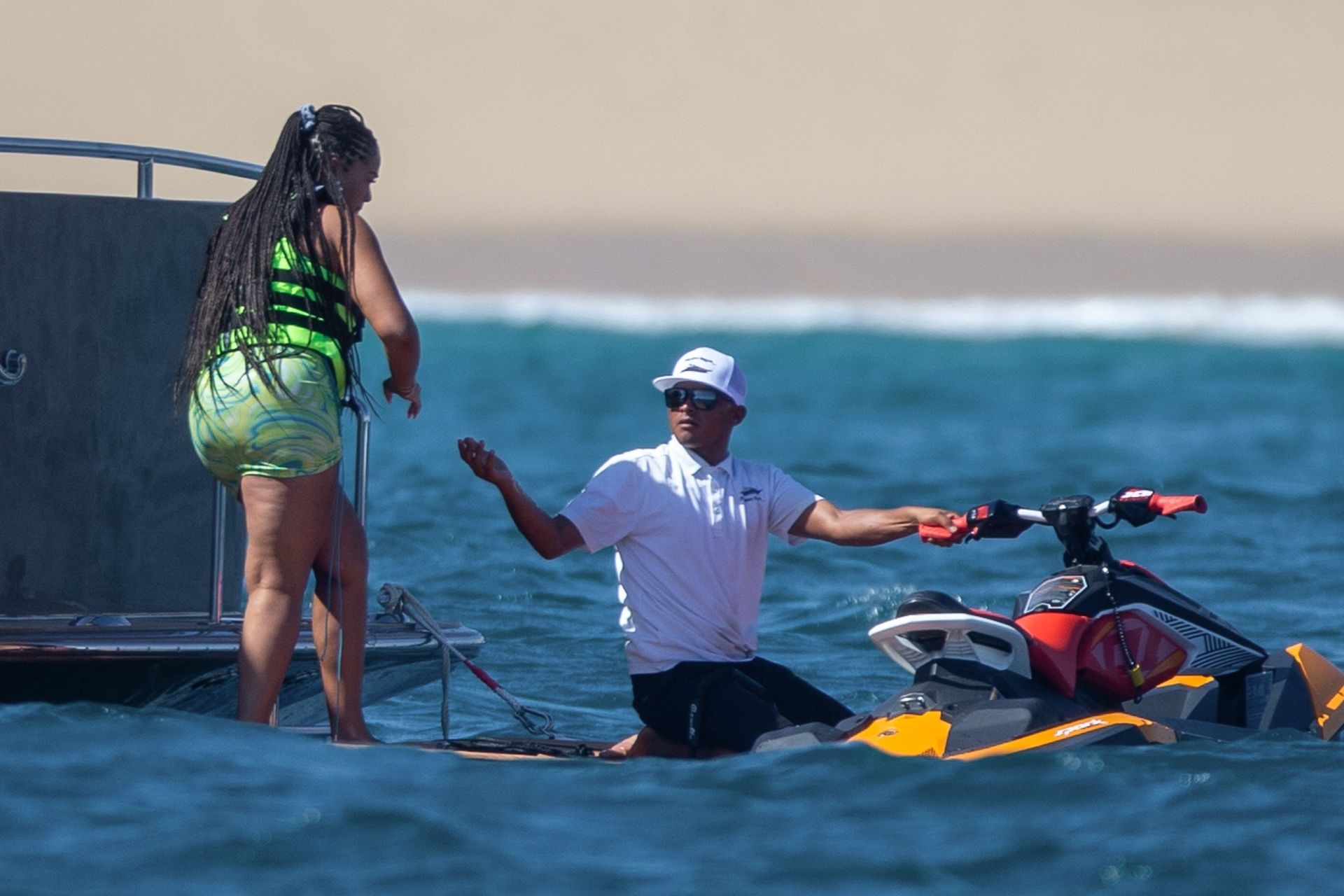 Вечеринка по случаю дня рождения Джордин была выдержана в черно-красной тематике и включала индивидуальные майки “Woods” с номером 23! Таунс также подарил Джордин подписанную майку Майкла Джордана, которая продается примерно за 8 тысяч долларов. Джордин отдыхает в Кабо, и пару видели расслабляющимися на яхте, катающимися на гидроцикле и проводящими вместе день.