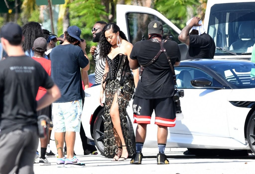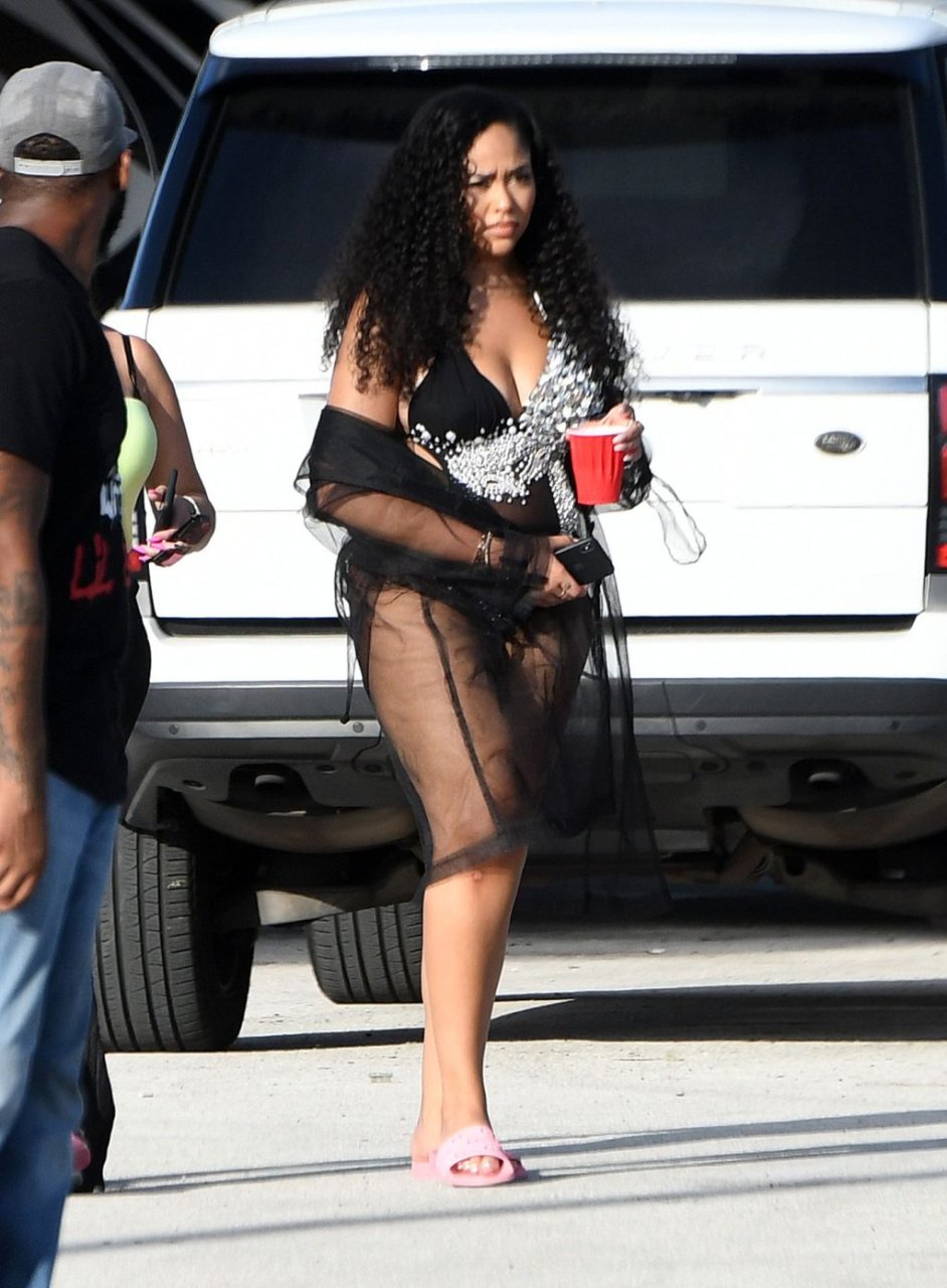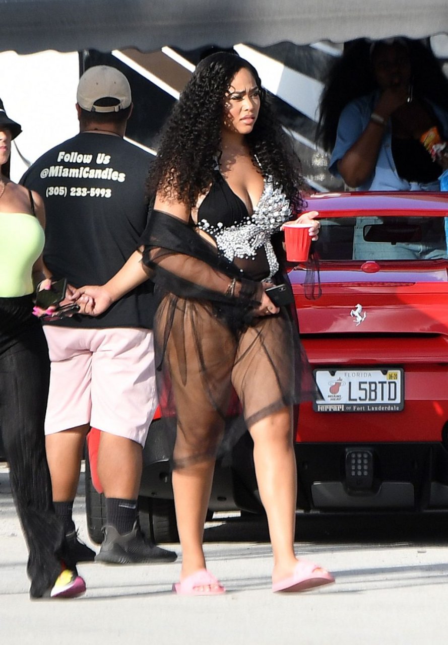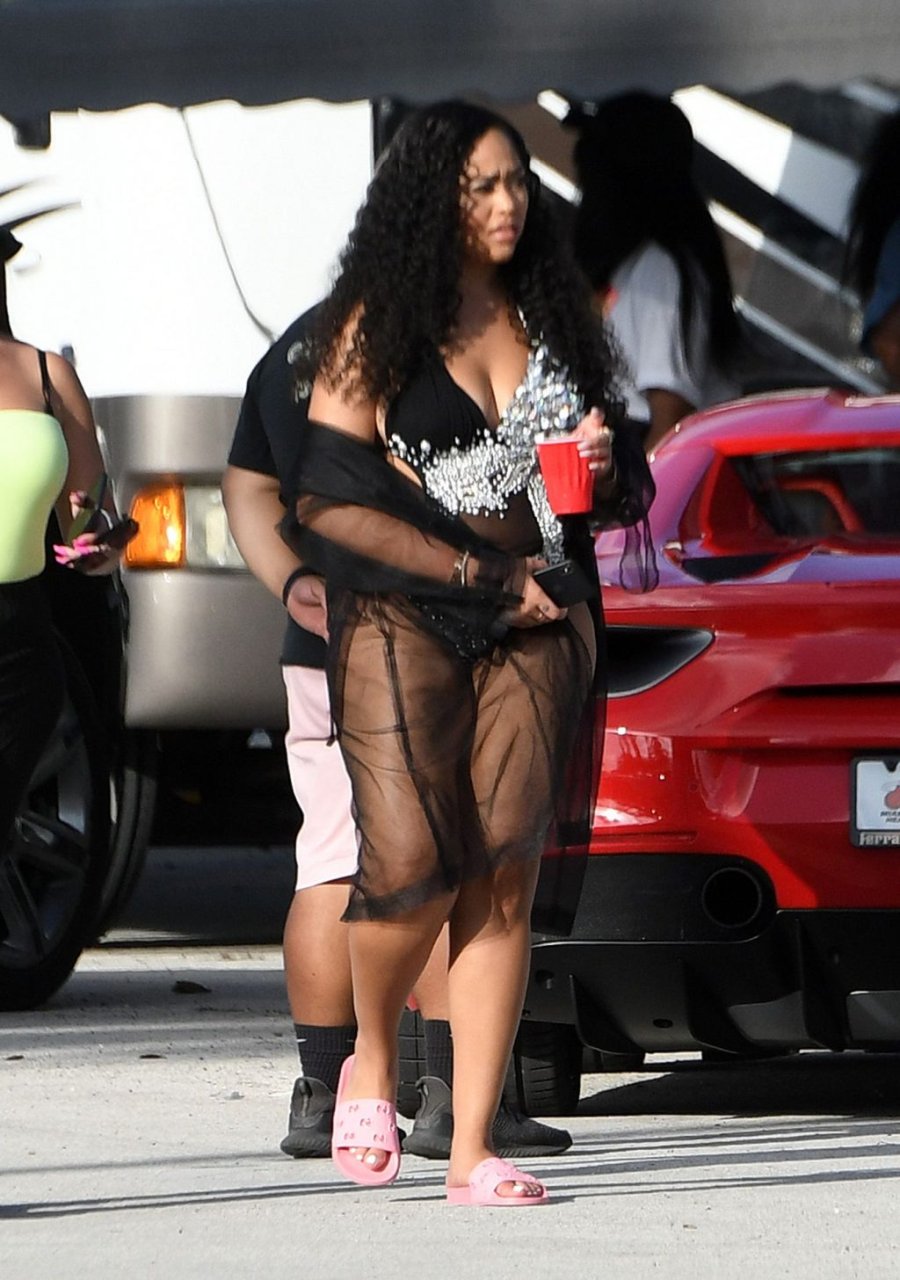 Бывшая лучшая подруга Кайли Дженнер Джордин Вудс демонстрирует свои изгибы в нижнем белье на съемках музыкального клипа в Майами, 17.07.2019.