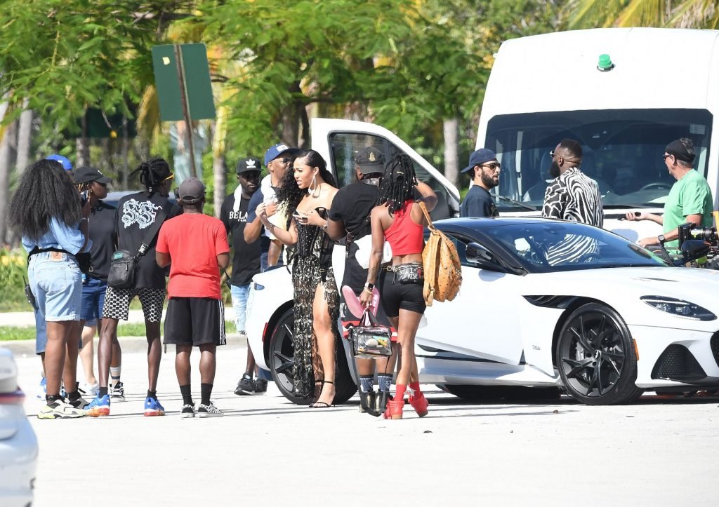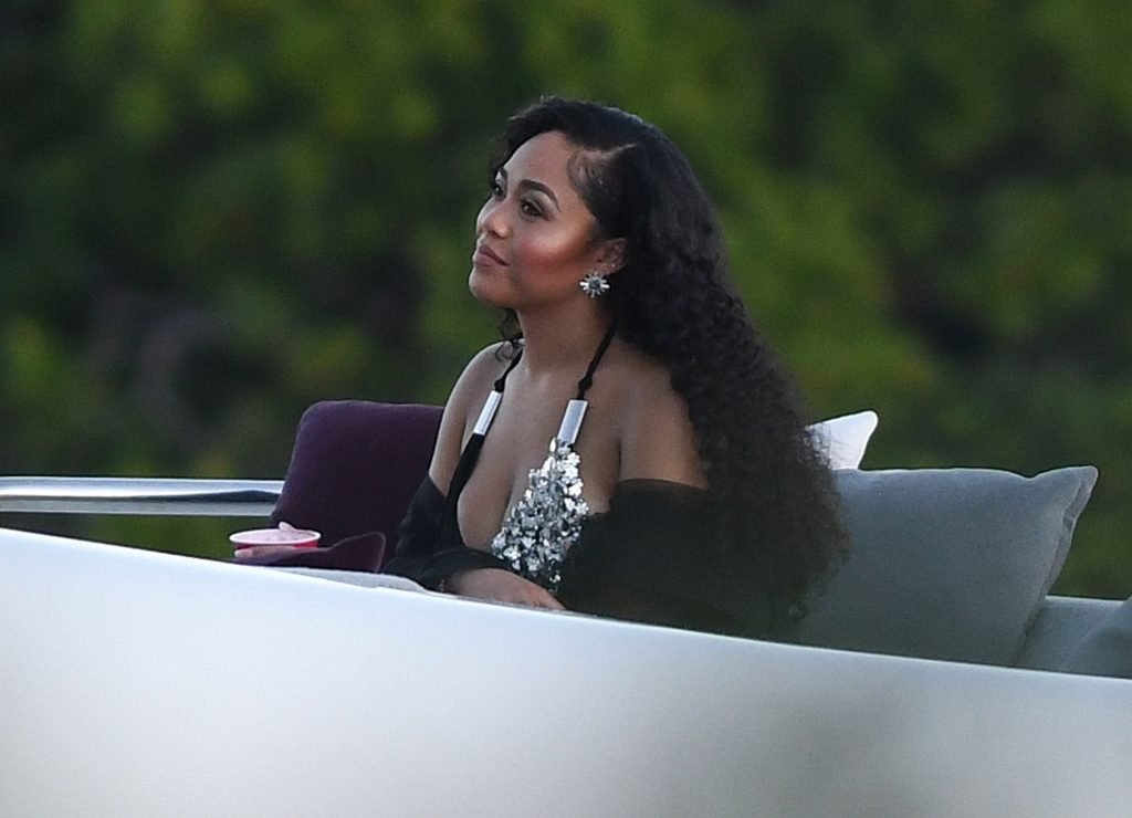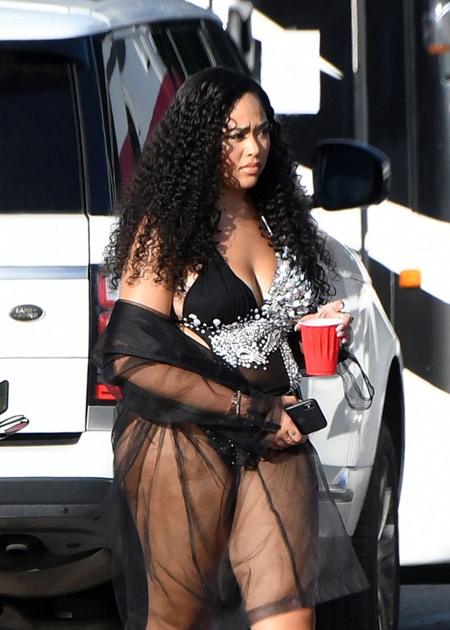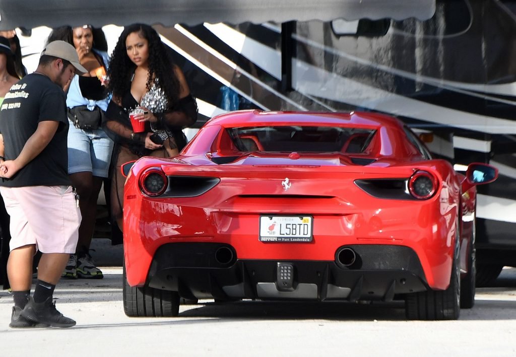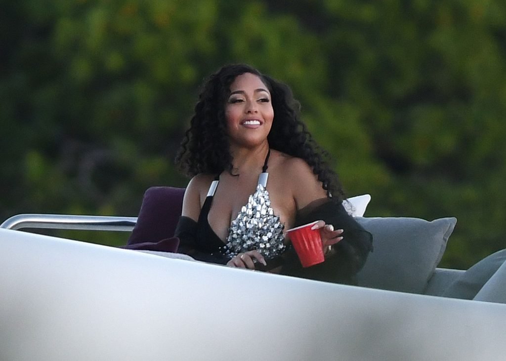 Бывшая лучшая подруга Кайли Дженнер Джордин Вудс демонстрирует свои изгибы в нижнем белье на съемках музыкального клипа в Майами, 17.07.2019.