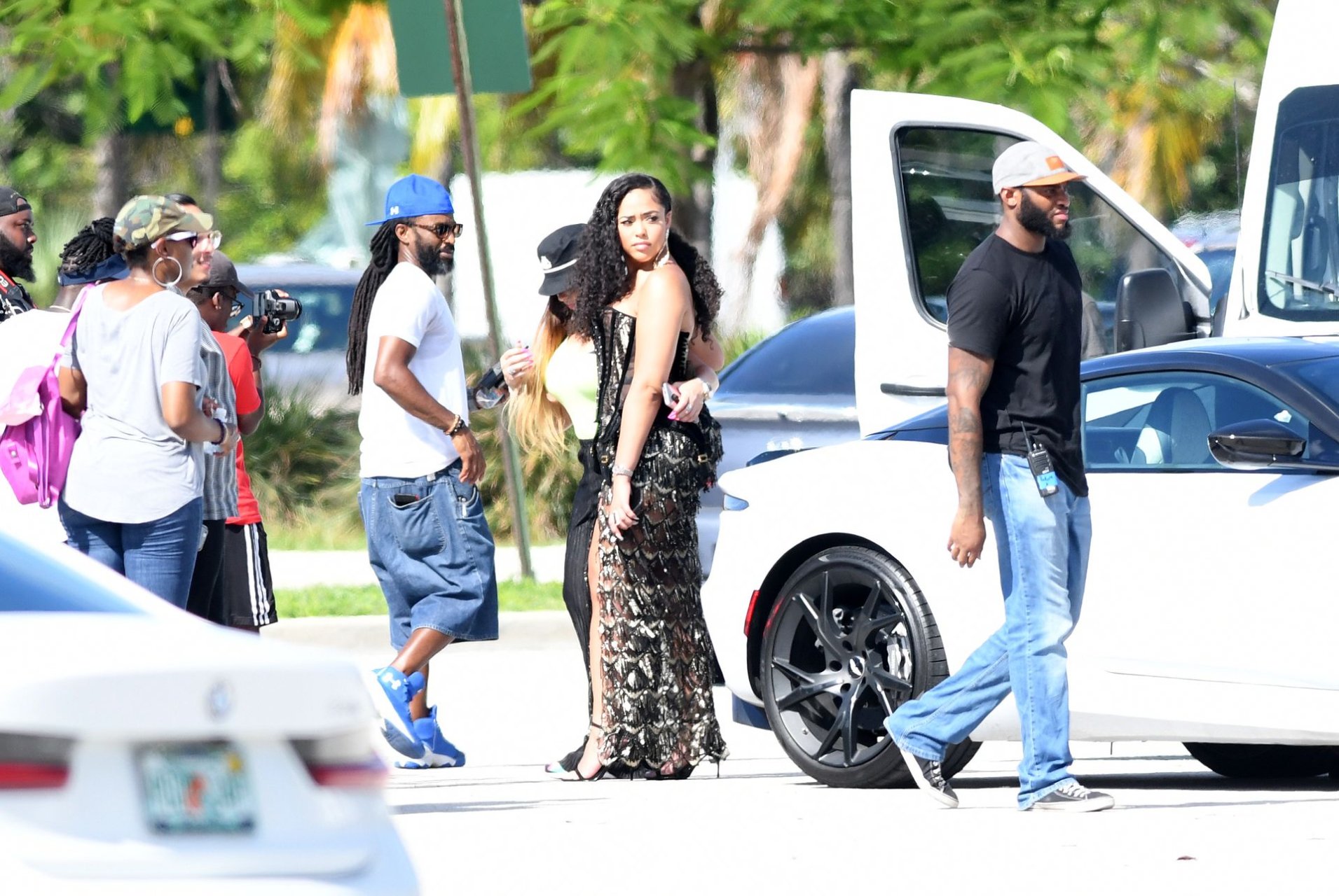 Бывшая лучшая подруга Кайли Дженнер Джордин Вудс демонстрирует свои изгибы в нижнем белье на съемках музыкального клипа в Майами, 17.07.2019.
