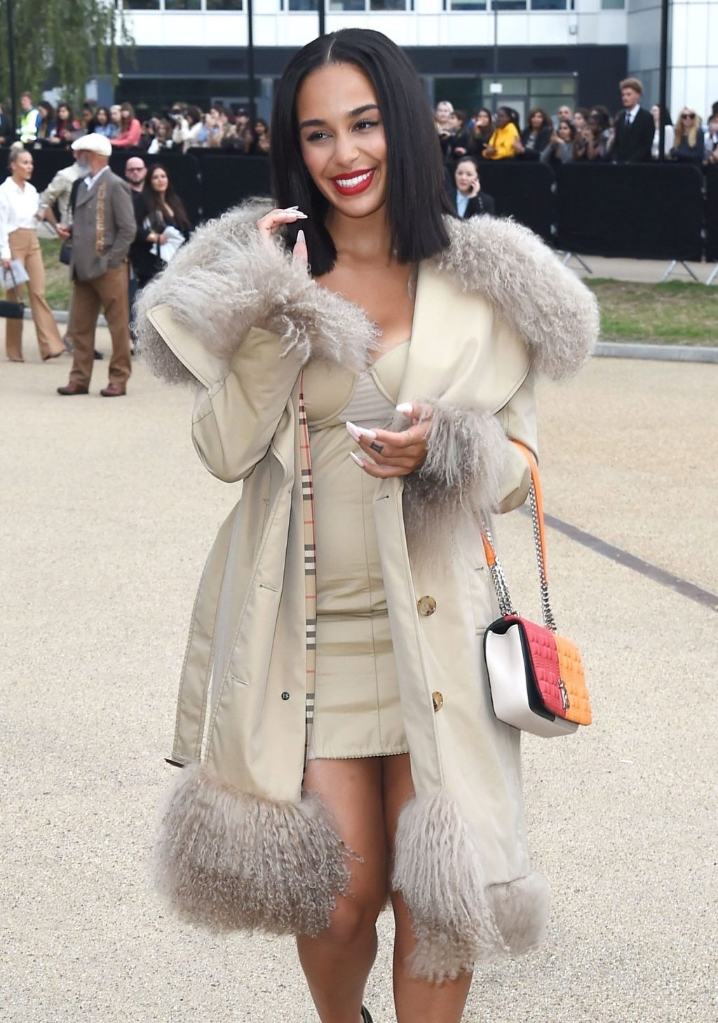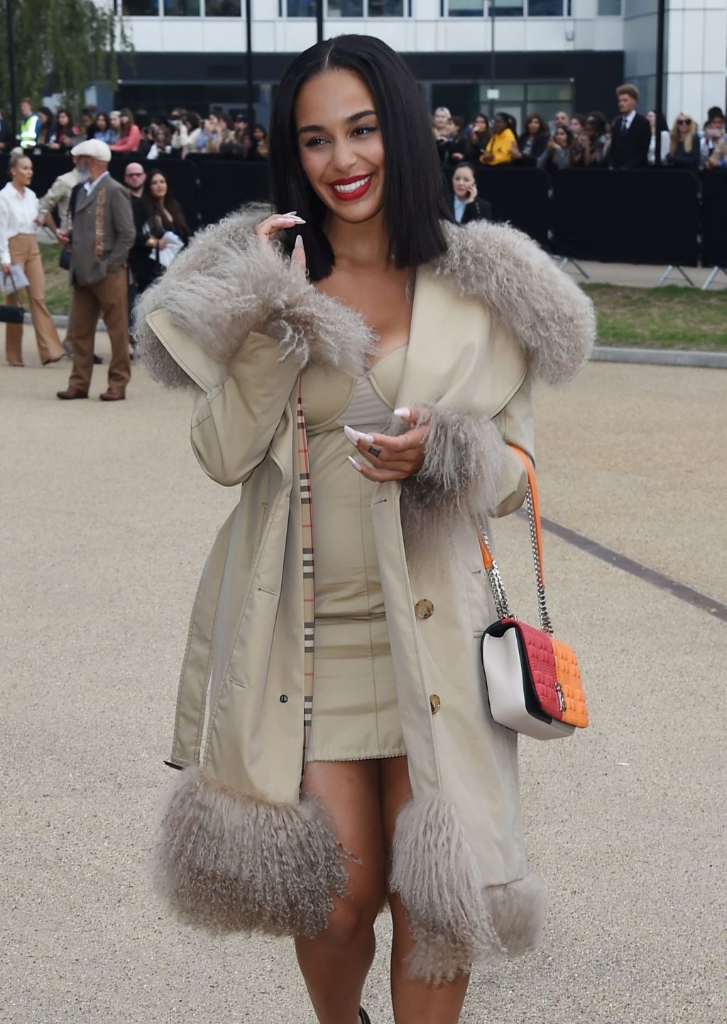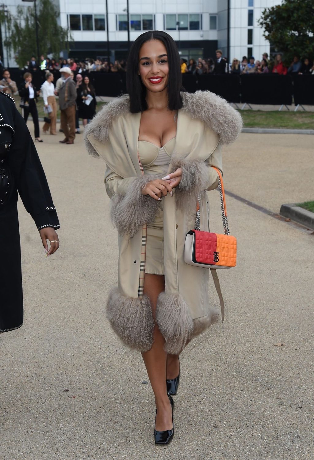 Пышногрудая Джоржа Смит была сфотографирована при выходе с показа Burberry LFW 2019 в Лондоне, 16.09.2019.