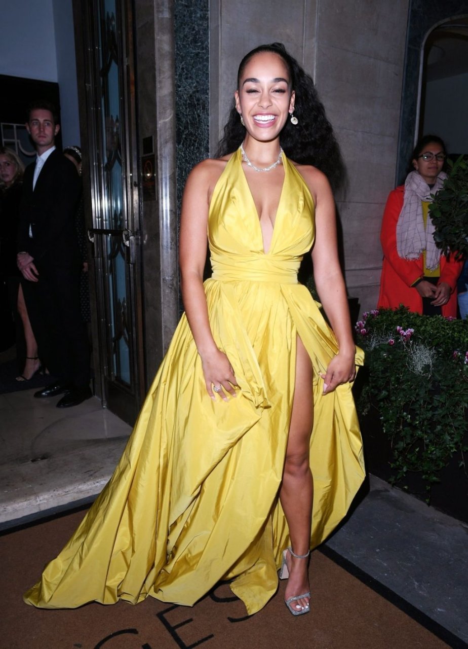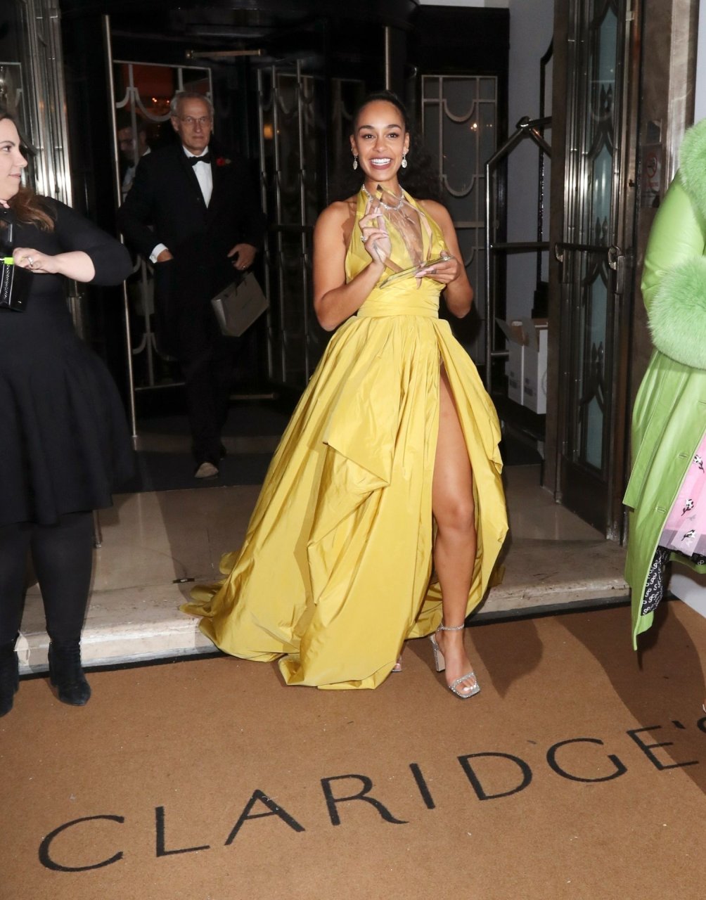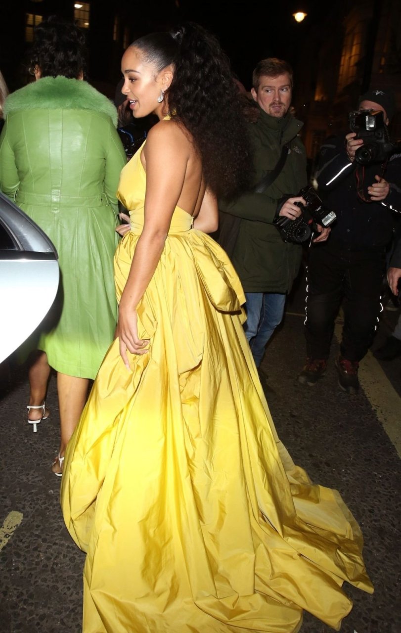 У Джоржи произошел конфуз с гардеробом: покидая церемонию, у нее были видны трусики через потрясающее ярко-желтое платье с высоким разрезом на ноге.