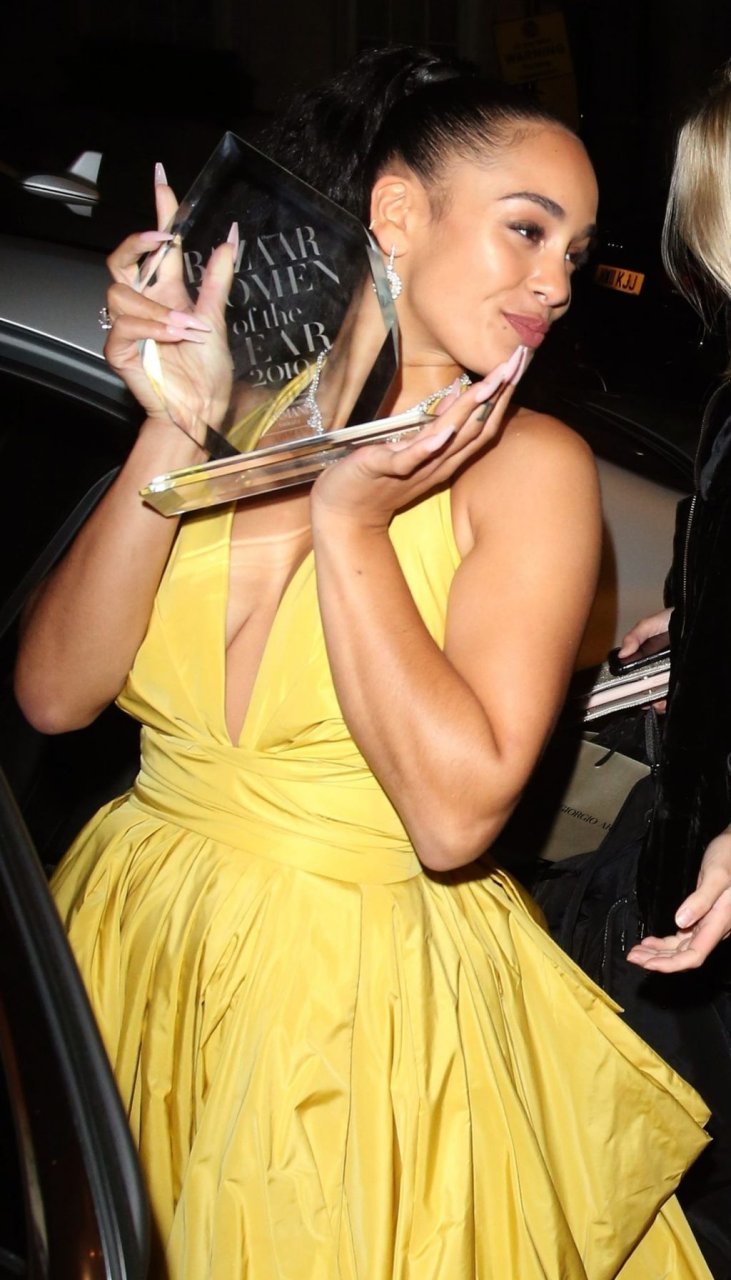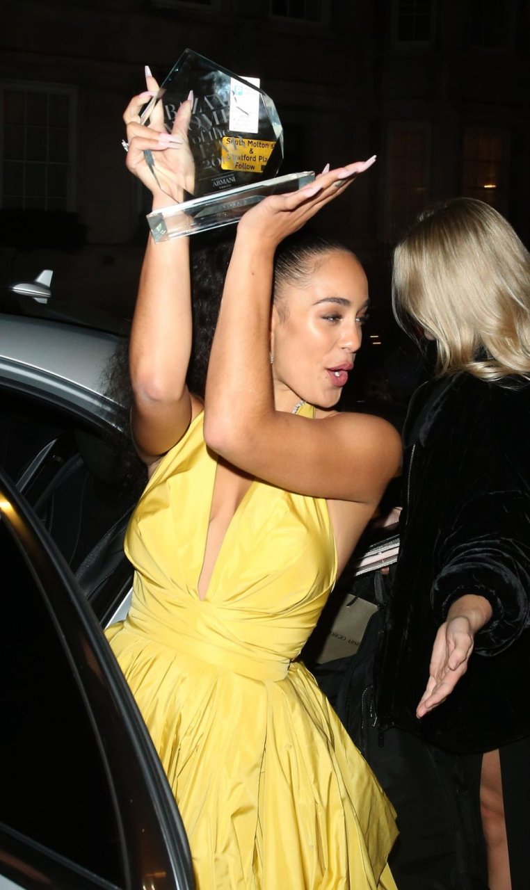 Певица Джоржа Смит (22) была замечена на церемонии Harper’s Bazaar Women Of The Year Awards 2019, держа в руках свою награду, 30.10.2019.