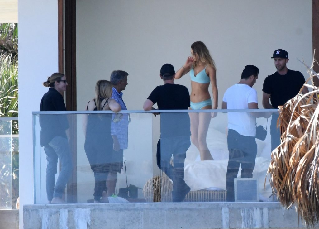 Модели Victoria’s Secret Джозефин Скривер, Джорджия Фаулер и Русмарейн Де Кок позируют в комплектах бюстгальтеров и нижнего белья во время фотосессии в Майами, 15.02.2018.