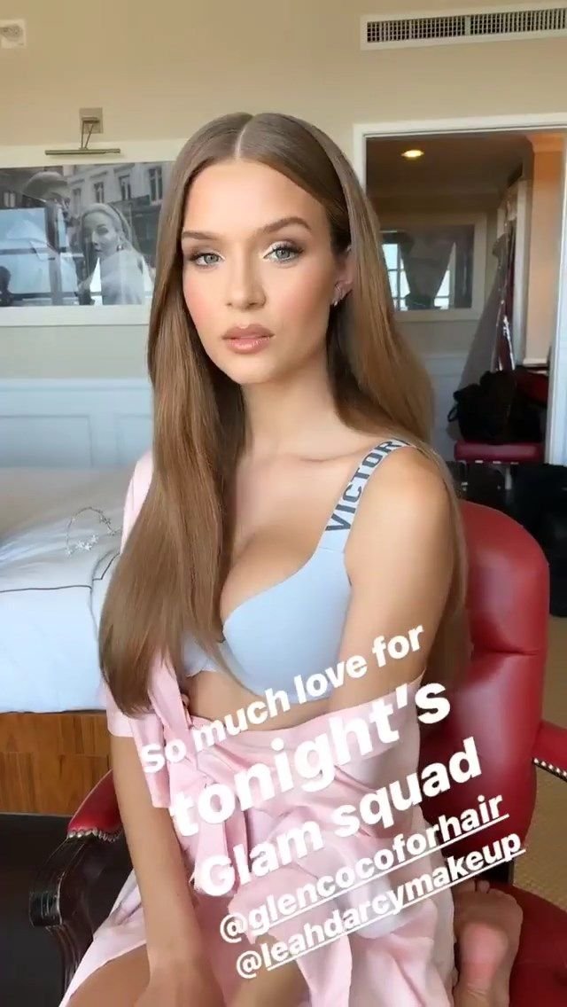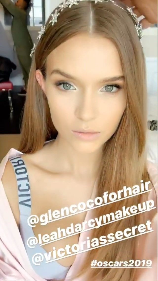 Модель демонстрирует декольте в прозрачном платье на вечеринке просмотра церемонии вручения премии Академии Элтона Джона по борьбе со СПИДом в Вест-Голливуде, 24.02.2019.