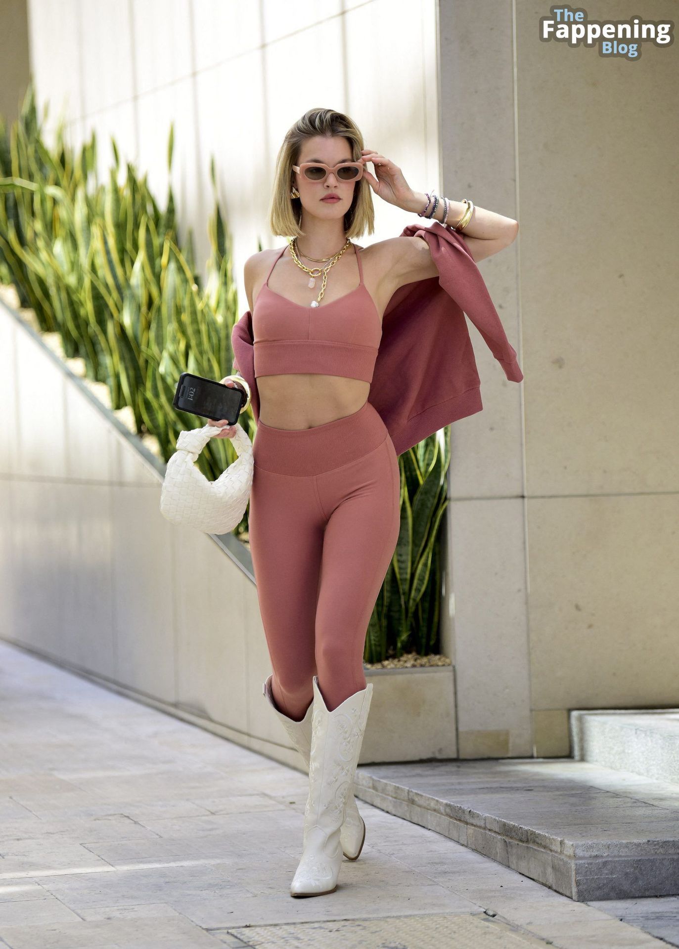 Джой Корриган показывает свою горячую попку и подтянутое тело в облегающих леггинсах и спортивном бюстгальтере в штаб-квартире Alo в Беверли-Хиллз.