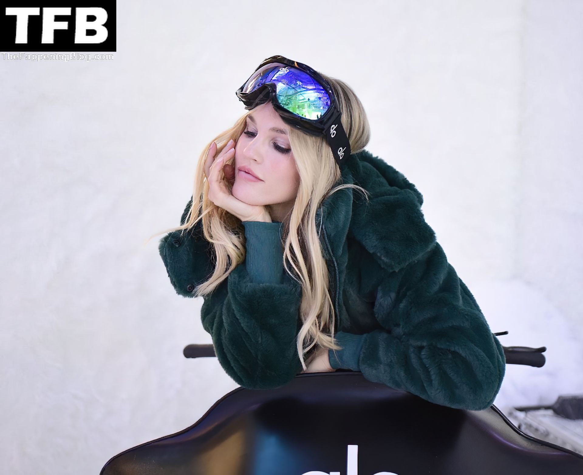 Звезда Fappening Джой Корриган выглядит горячо, показывая свои сексуальные сиськи и соски в белом спортивном топе на Alo House Winter 2021 – День 3 в Лос-Анджелесе, 11/05/2021.