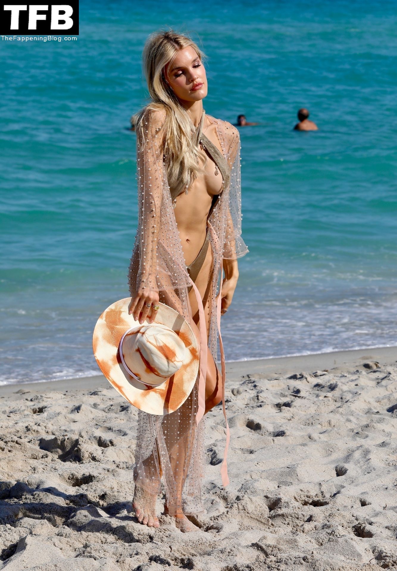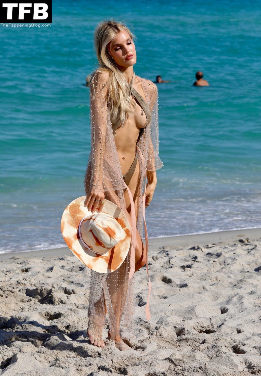 Фэшн-модель Джой Корриган демонстрирует свой сексуальный купальник и пляжное тело, позируя для фотографий в бикини на пляже Майами, 28.03.2022.