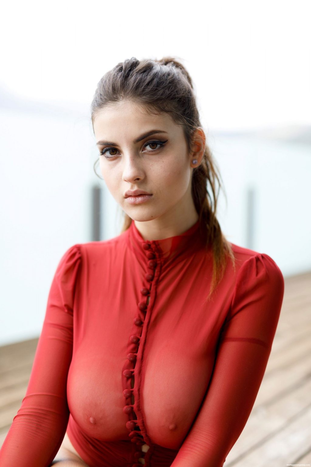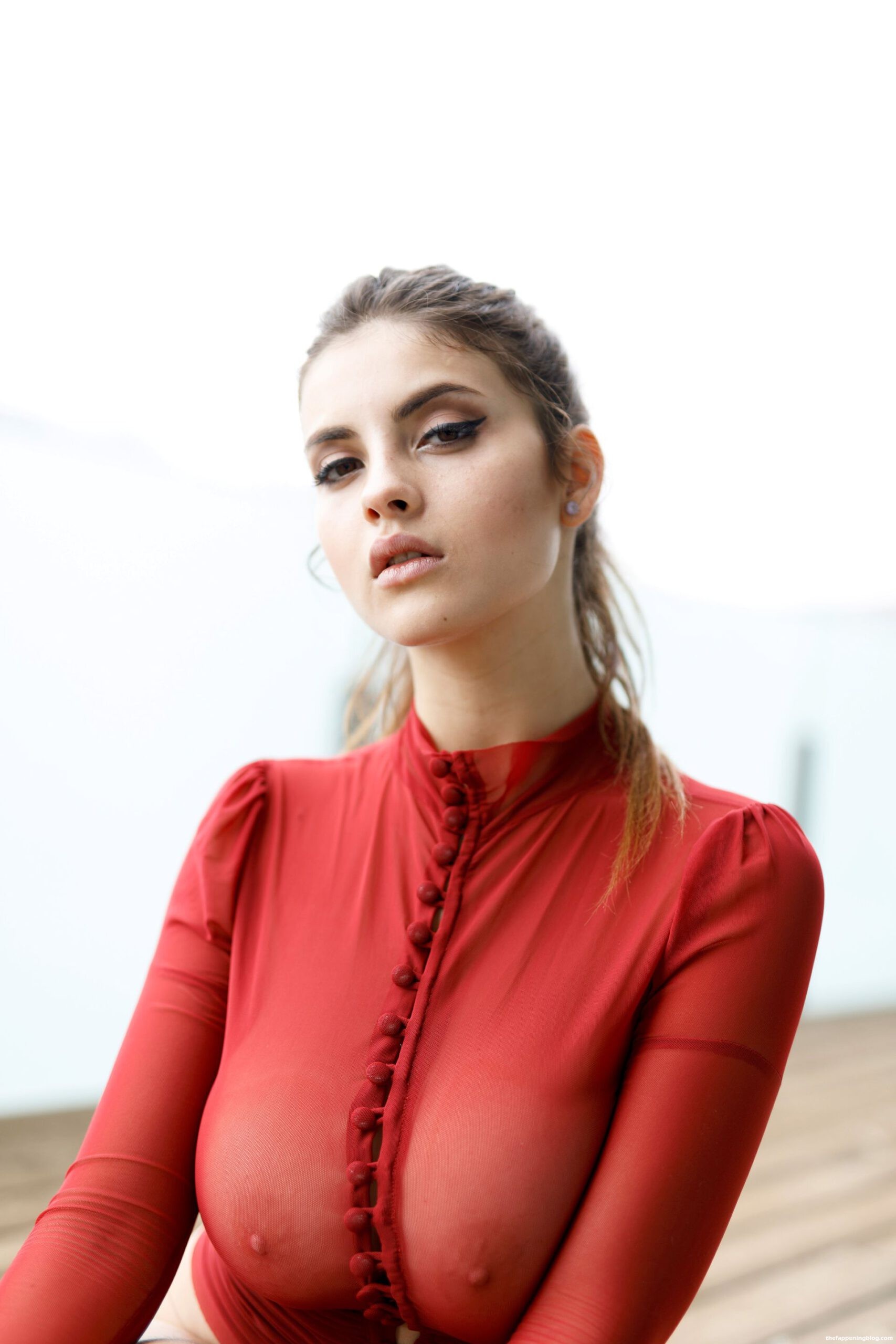 Вот слегка обнажённые фотографии пышногрудой красавицы Judit Guerra, показывающей свои груди, позирующей в красной прозрачной рубашке и демонстрирующей голую попку.