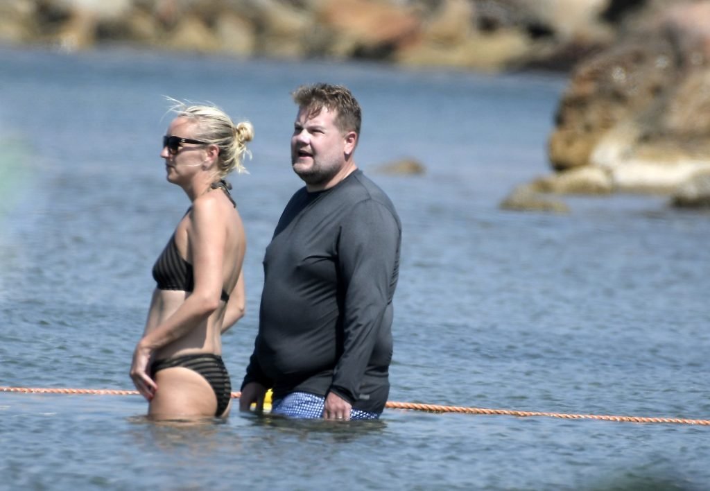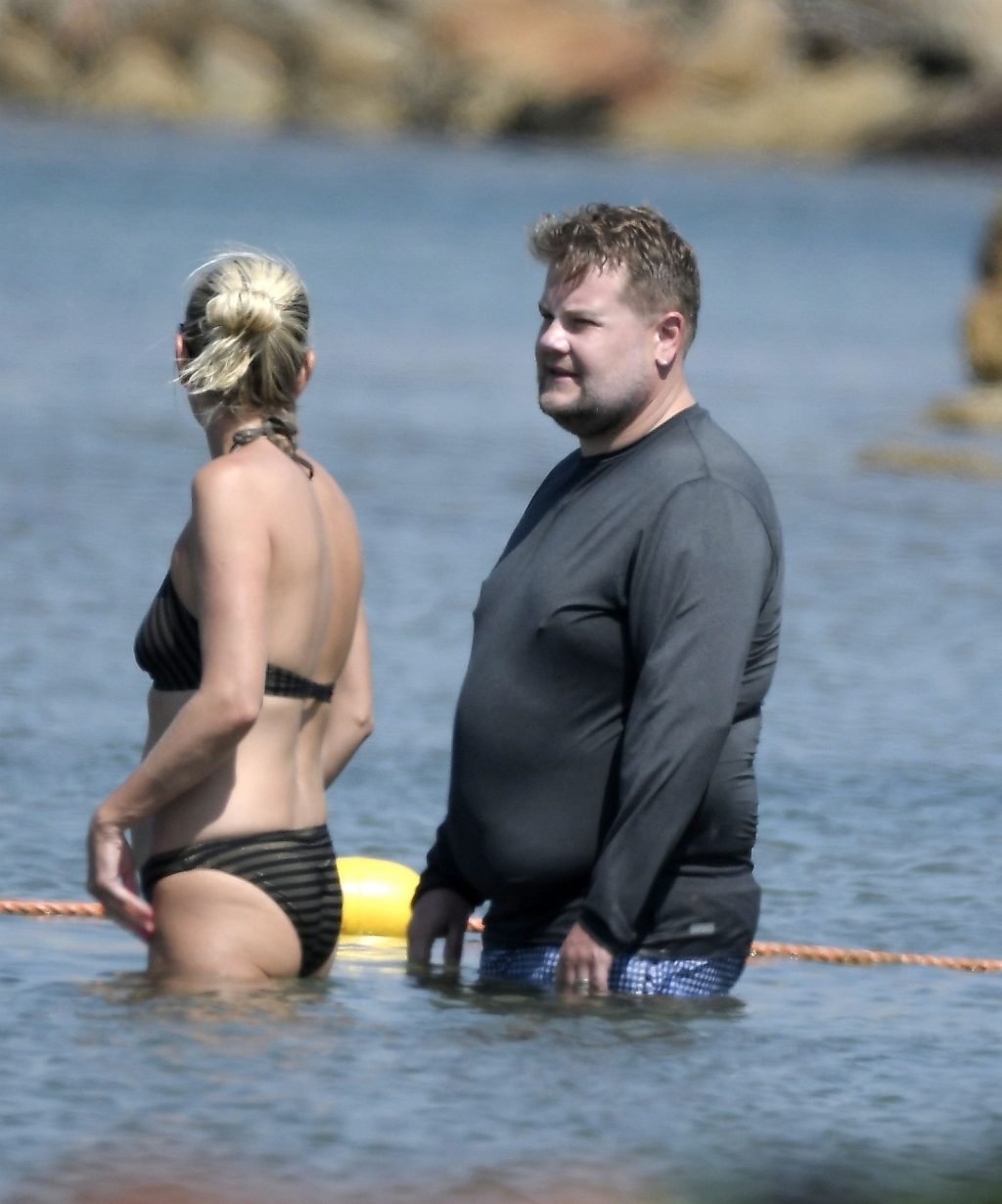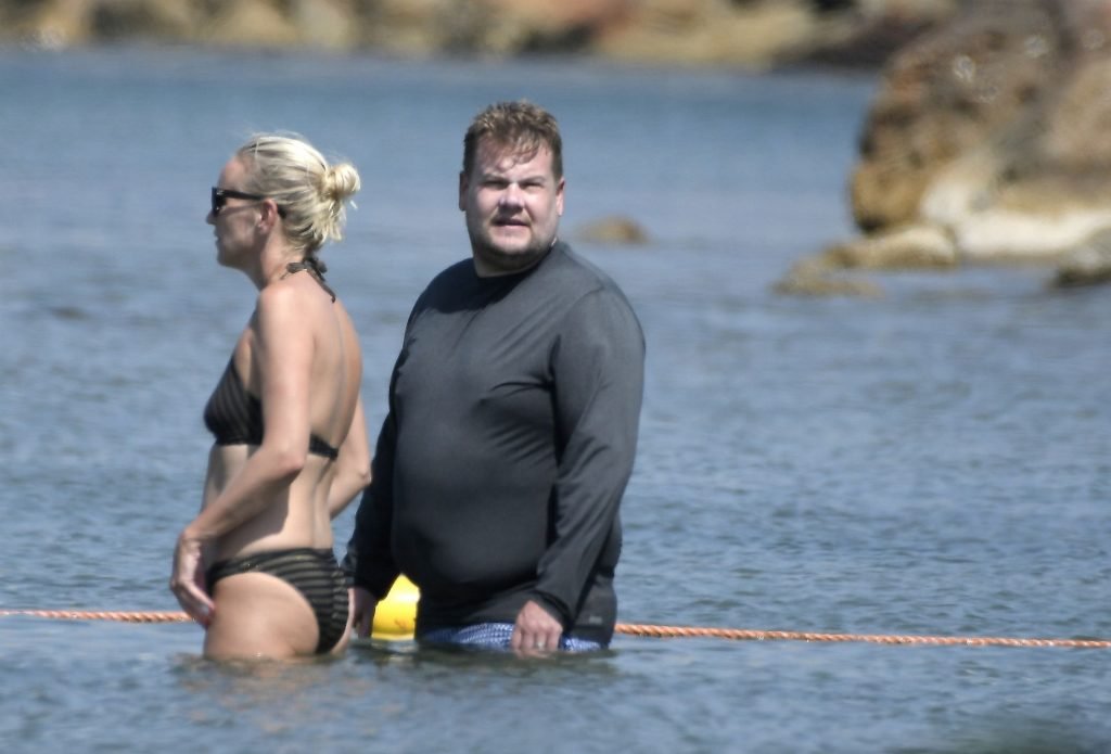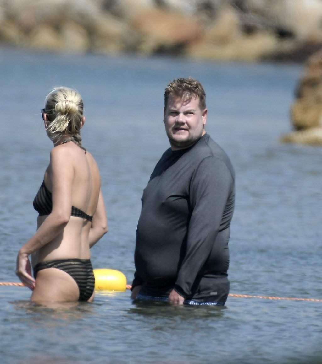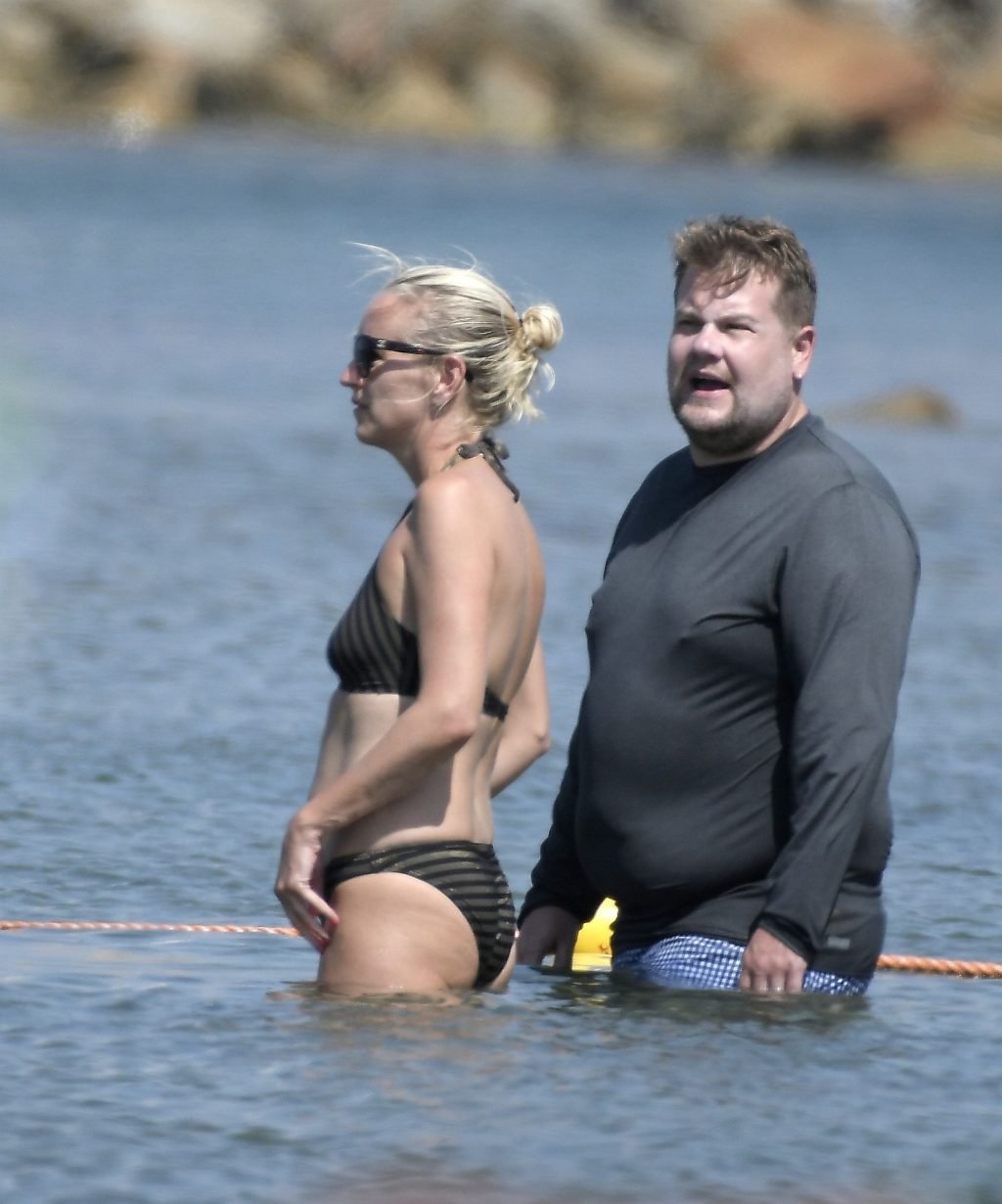 Ведущий шоу The Late Late Show Джеймс Корден был замечен, как наслаждается солнцем вместе со своей женой Джулией Кэри и их детьми в Сен-Тропе, 07/07/2019.