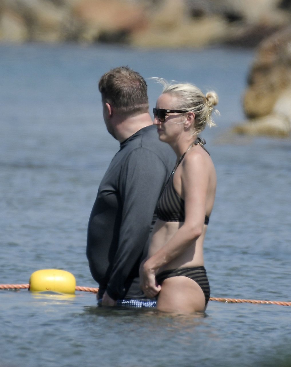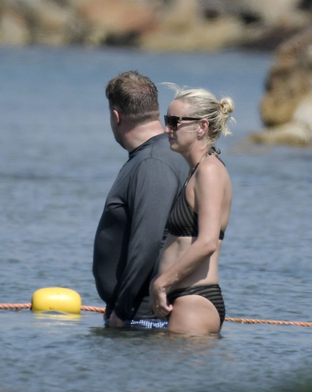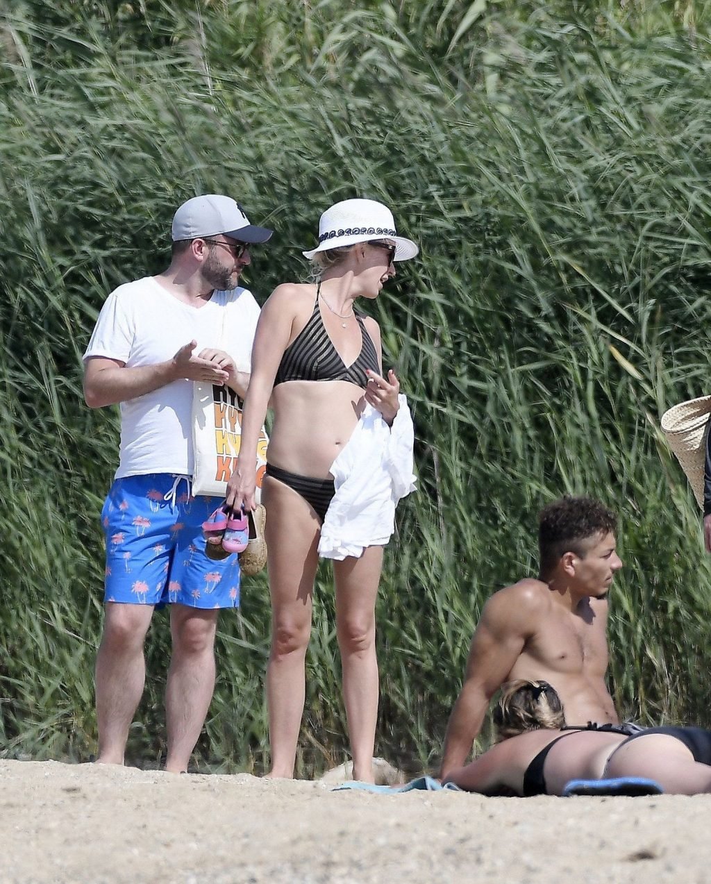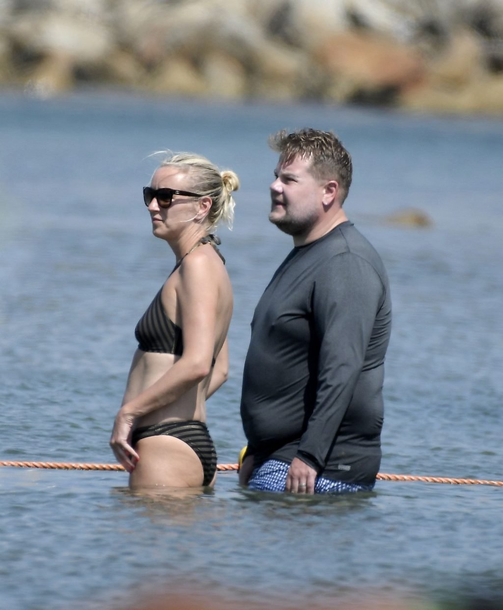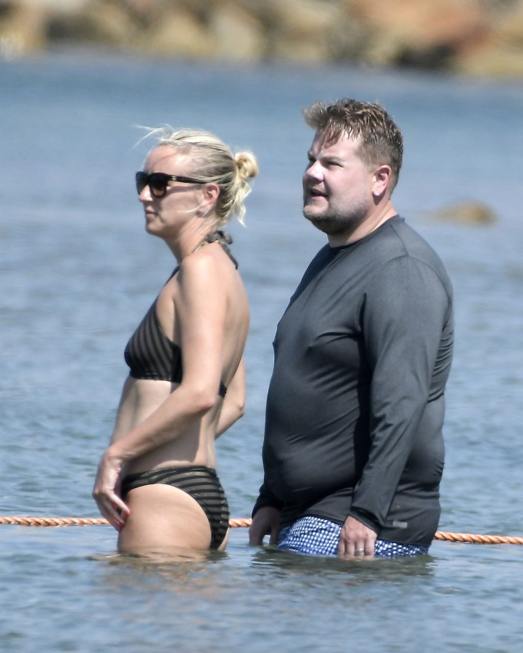Ведущий шоу The Late Late Show Джеймс Корден был замечен, как наслаждается солнцем вместе со своей женой Джулией Кэри и их детьми в Сен-Тропе, 07/07/2019.