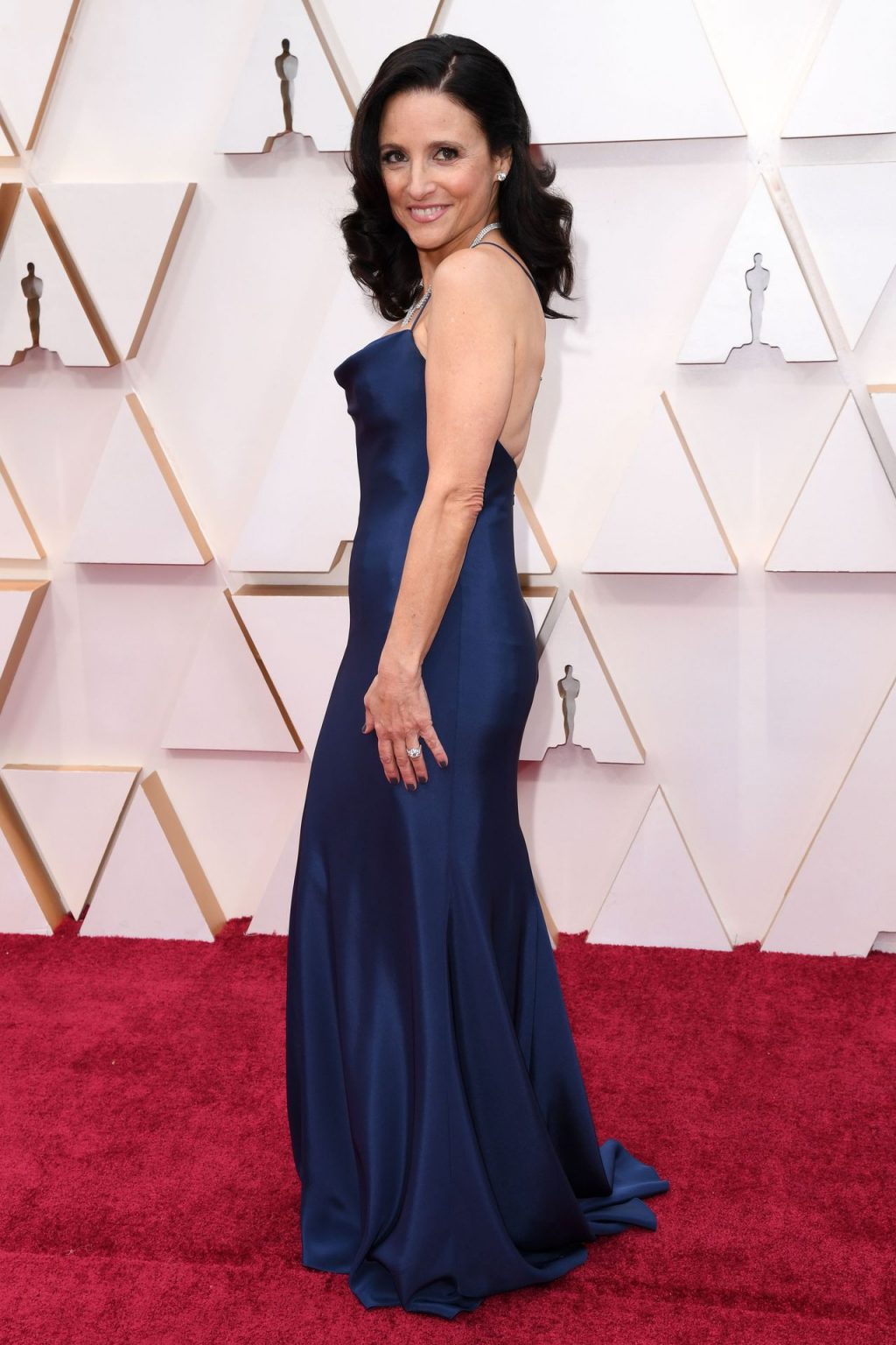 Американская актриса и продюсер Джулия Луи-Дрейфус была замечена в сексуальном синем платье, прибывая на 92-ю церемонию вручения премии «Оскар» в воскресенье, 9 февраля 2020 года, в театре Dolby в Hollywood & Highland Center в Голливуде.