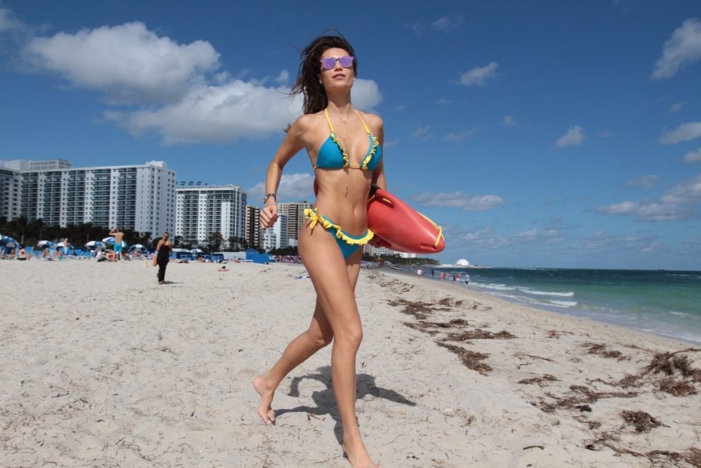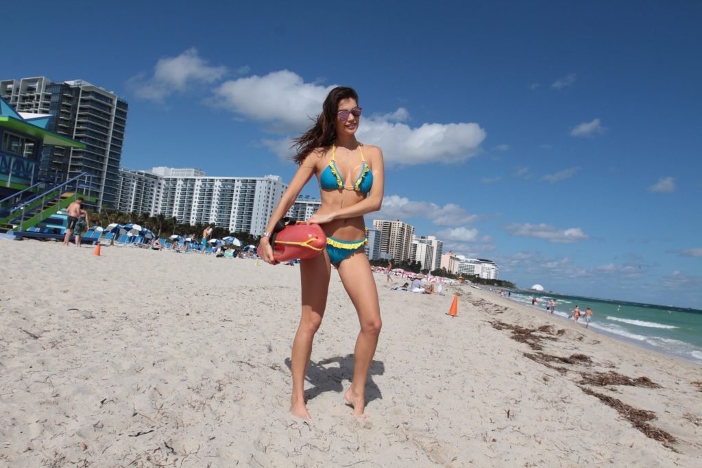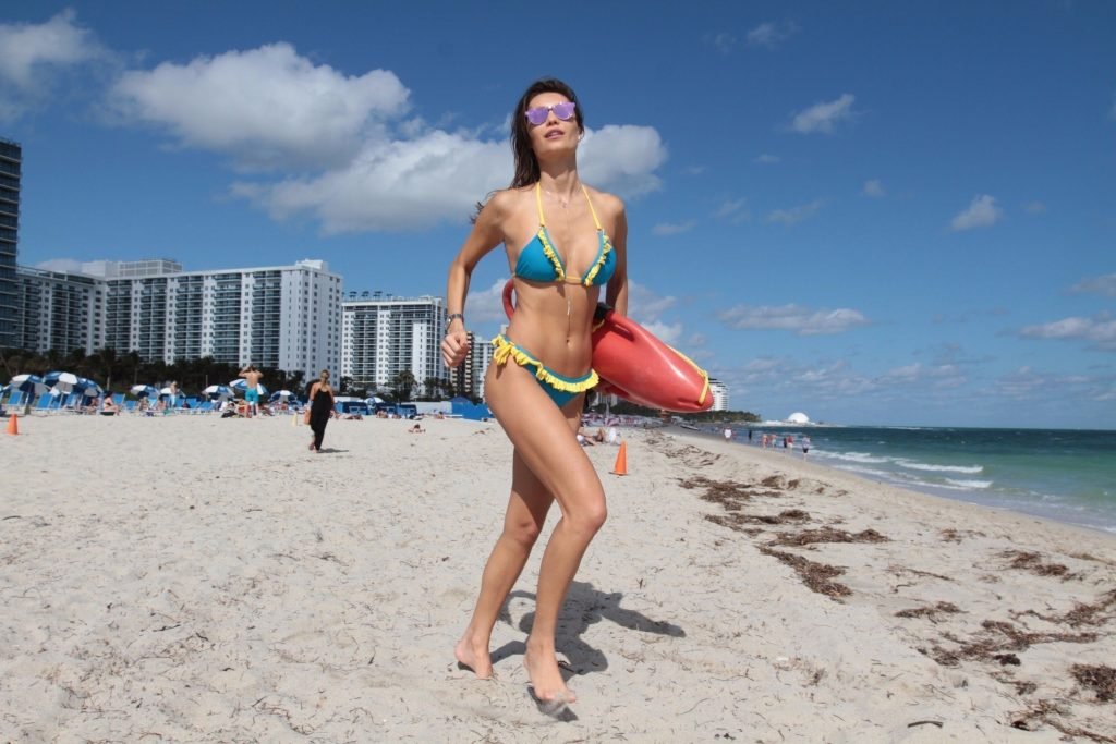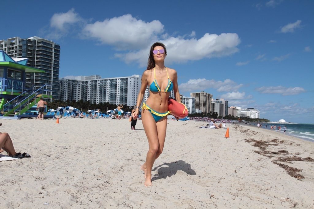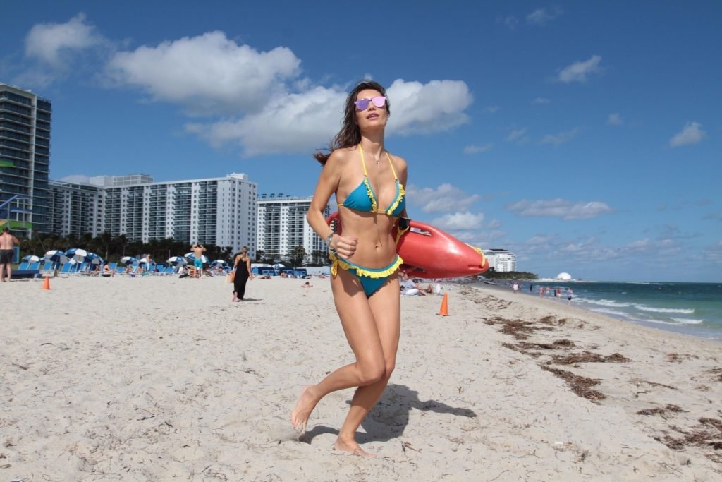 Модель и дизайнер купальников Джулия Перейра (30) демонстрирует своё тело в бикини на пляже в Майами, 12/02/2017.