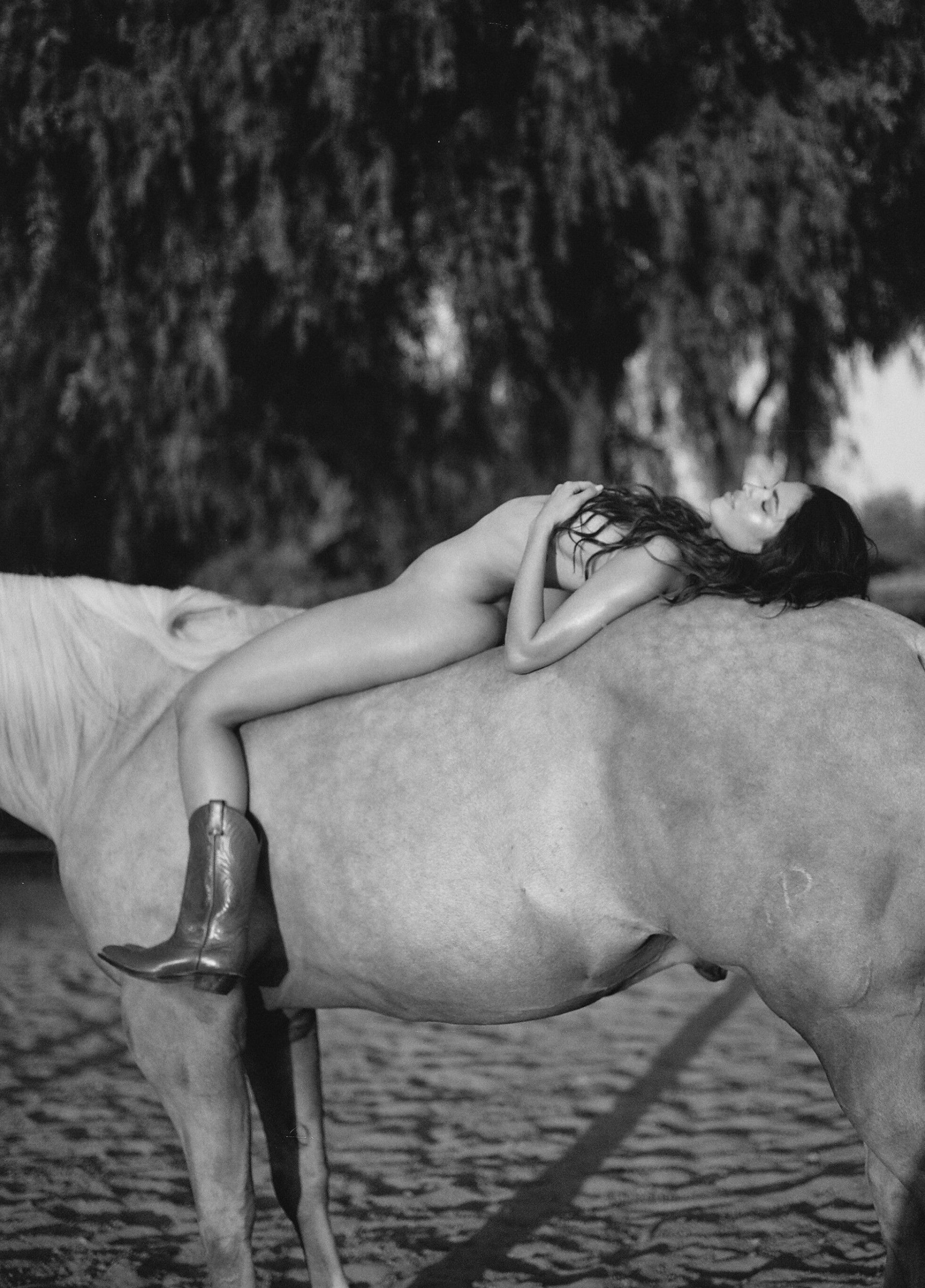 Коста-риканская модель Juliana Herz позирует полностью обнажённой, демонстрируя свои маленькие груди, ягодицы и влагалище в фотосессии с лошадью от Vivian Kim для Серии 8.1 (2020).