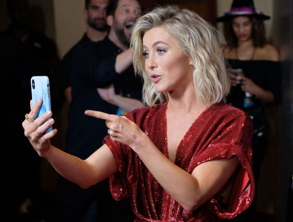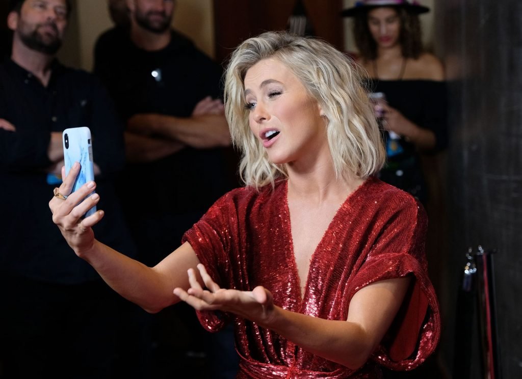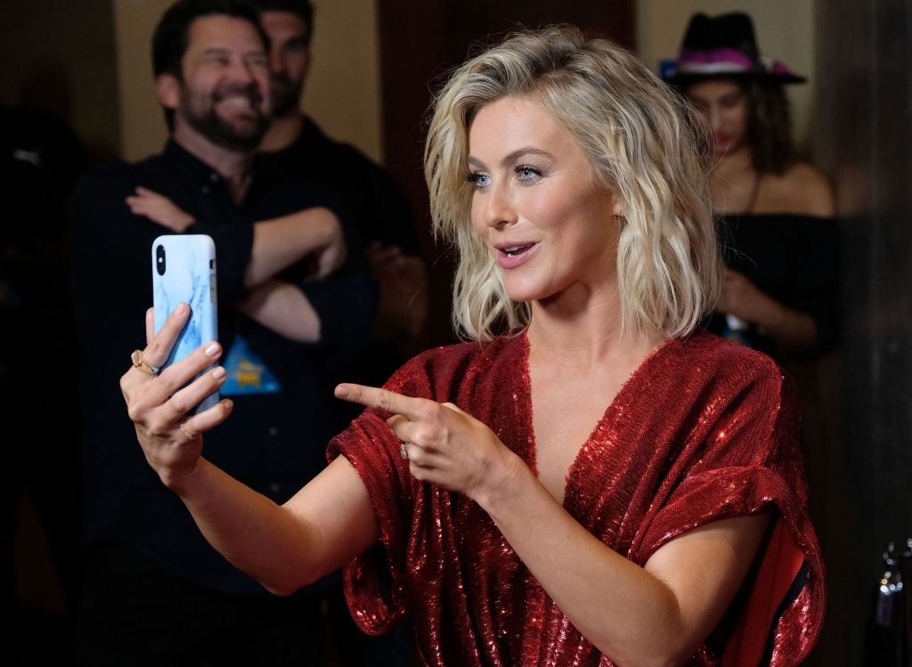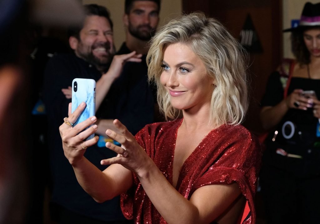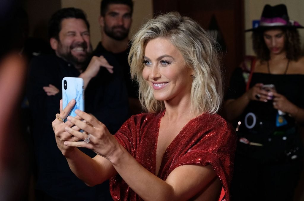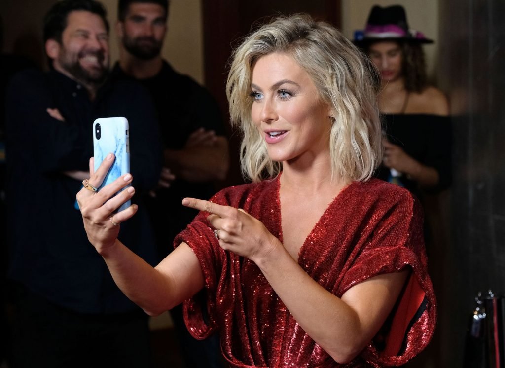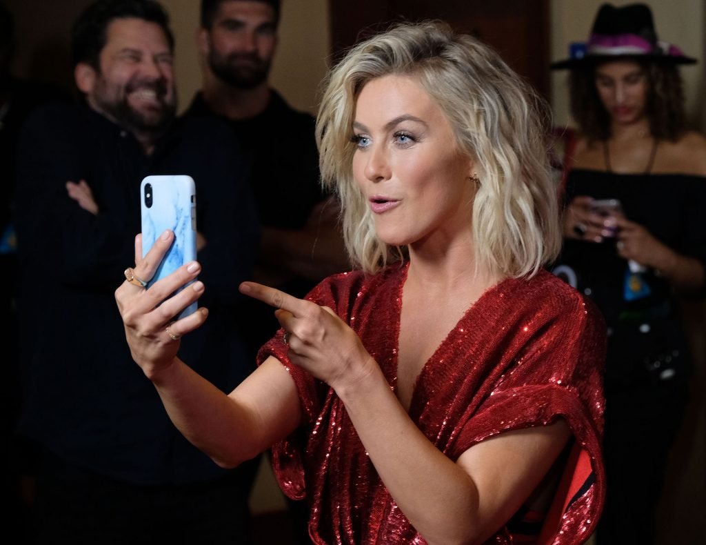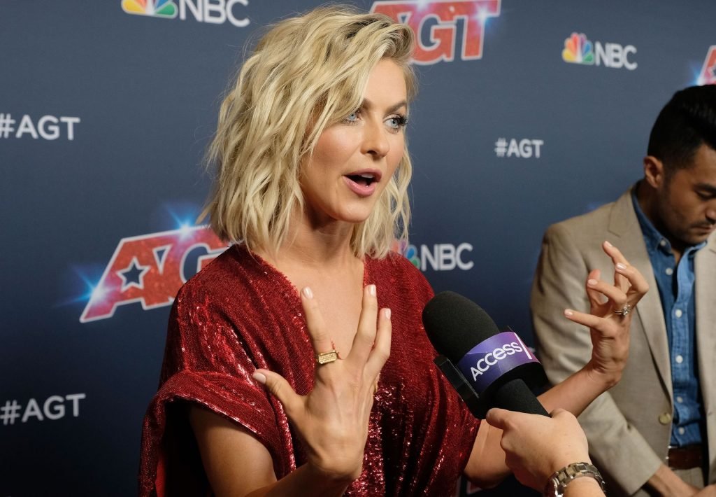 Джулианна Хаф продемонстрировала свои сексуальные ноги, позируя в коротком красном платье на живом шоу 14-го сезона “Америка ищет таланты” в театре Dolby в Голливуде, 20.08.2019.