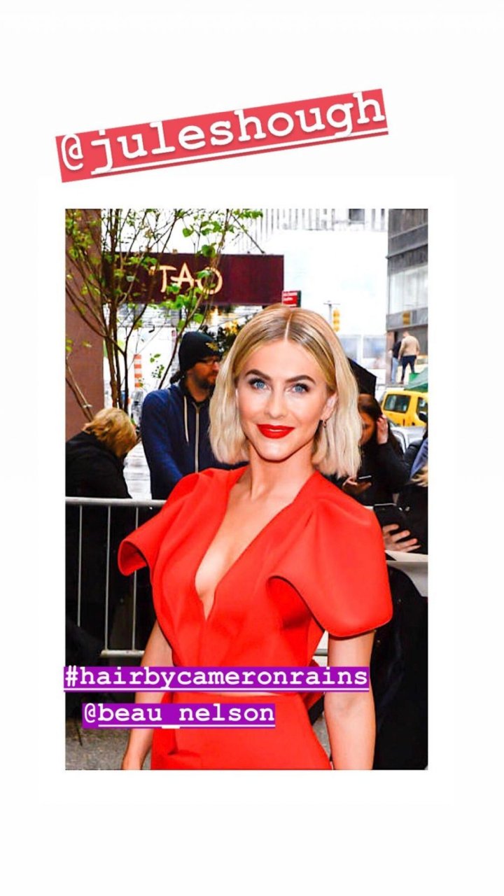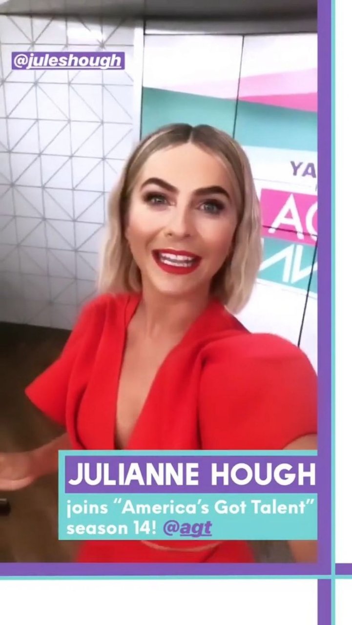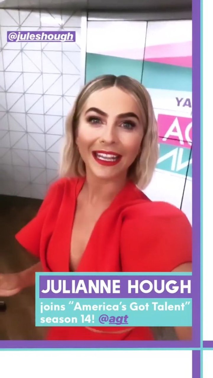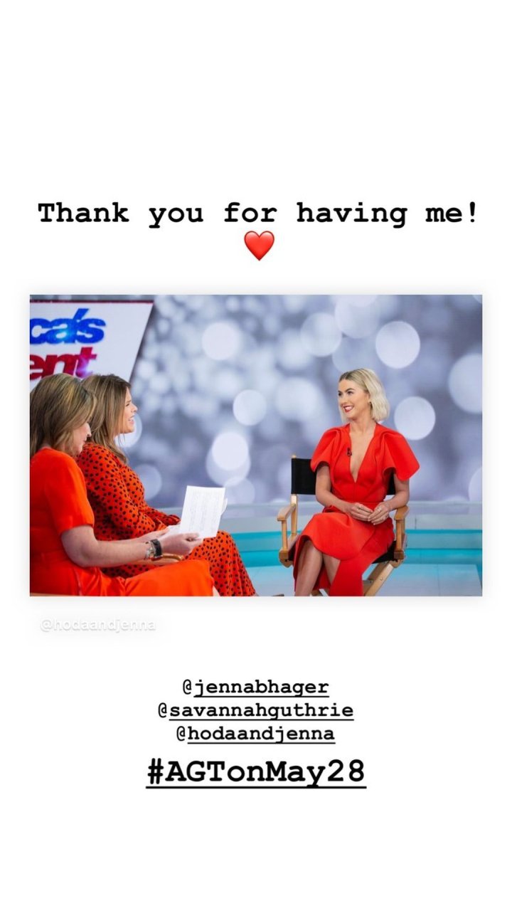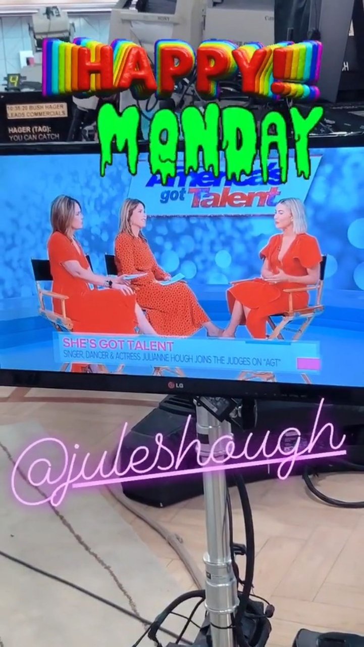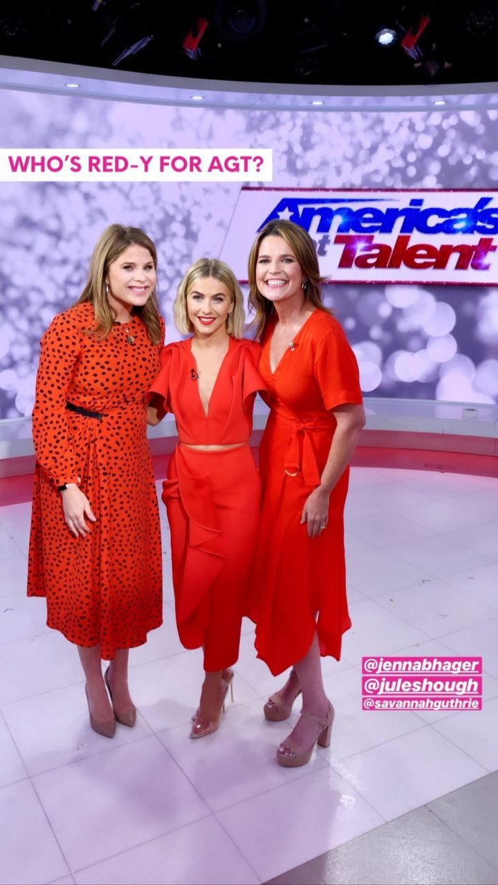 Джулианна Хаф выделяется в ярко-красном на шоу Today, продвигая “Америка имеет талант.” Джулианна кратко позирует для фотографий вне студии.