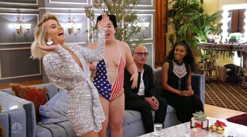Юриан Ретривер ошеломила судей – Хаф, Коуэлла, Габриэль Юнион, Хауи Мандела – и зрителей, когда вышла на сцену, затем сняла свой объемный худи и показала очень скромный купальник в виде американского флага.