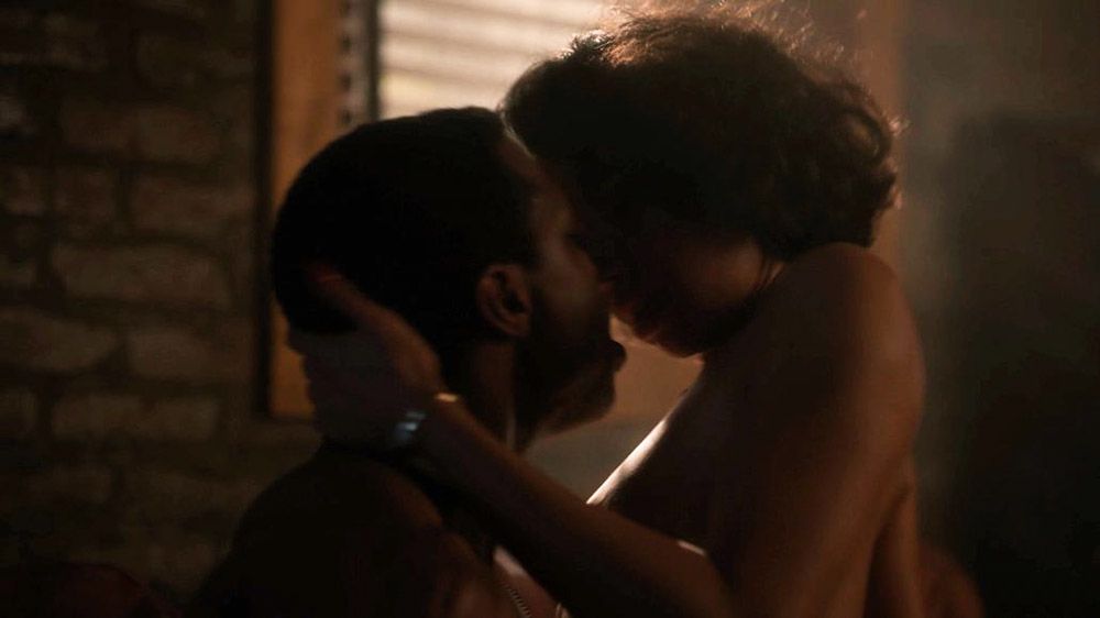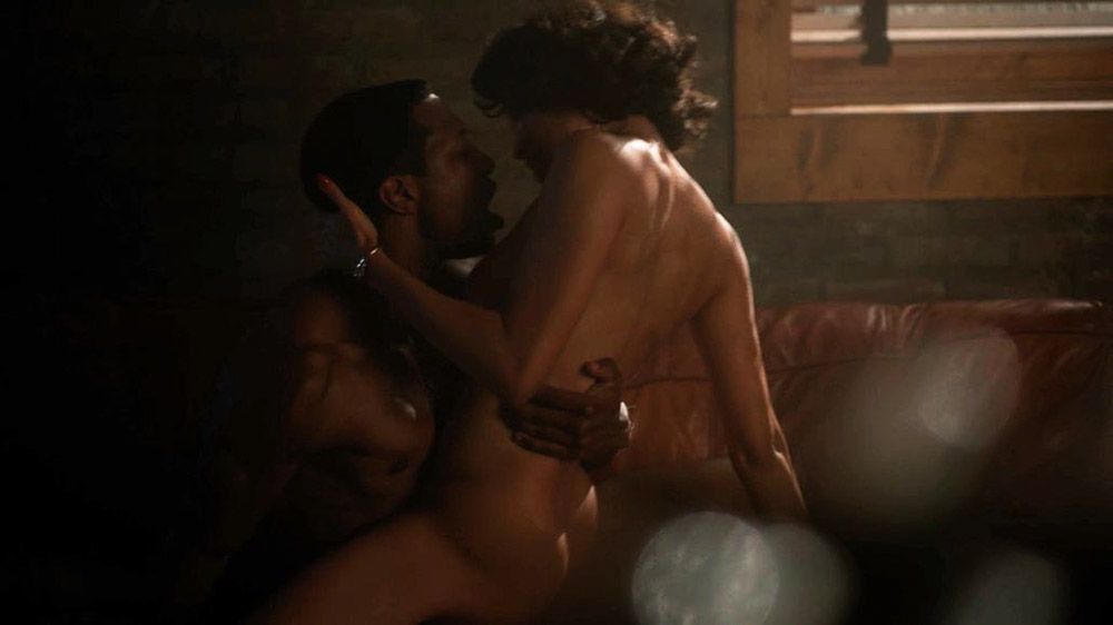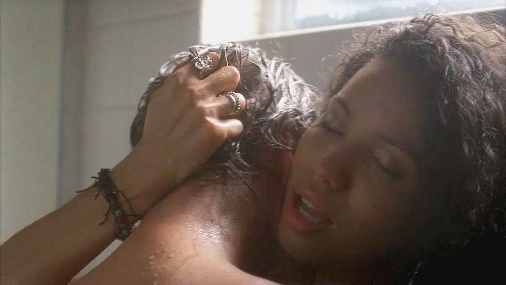 Then Jurnee Smollet-Bell steps into a shower with a guy and has sex with him against the tiled wall. She is naked but with her breasts and ass out of view.