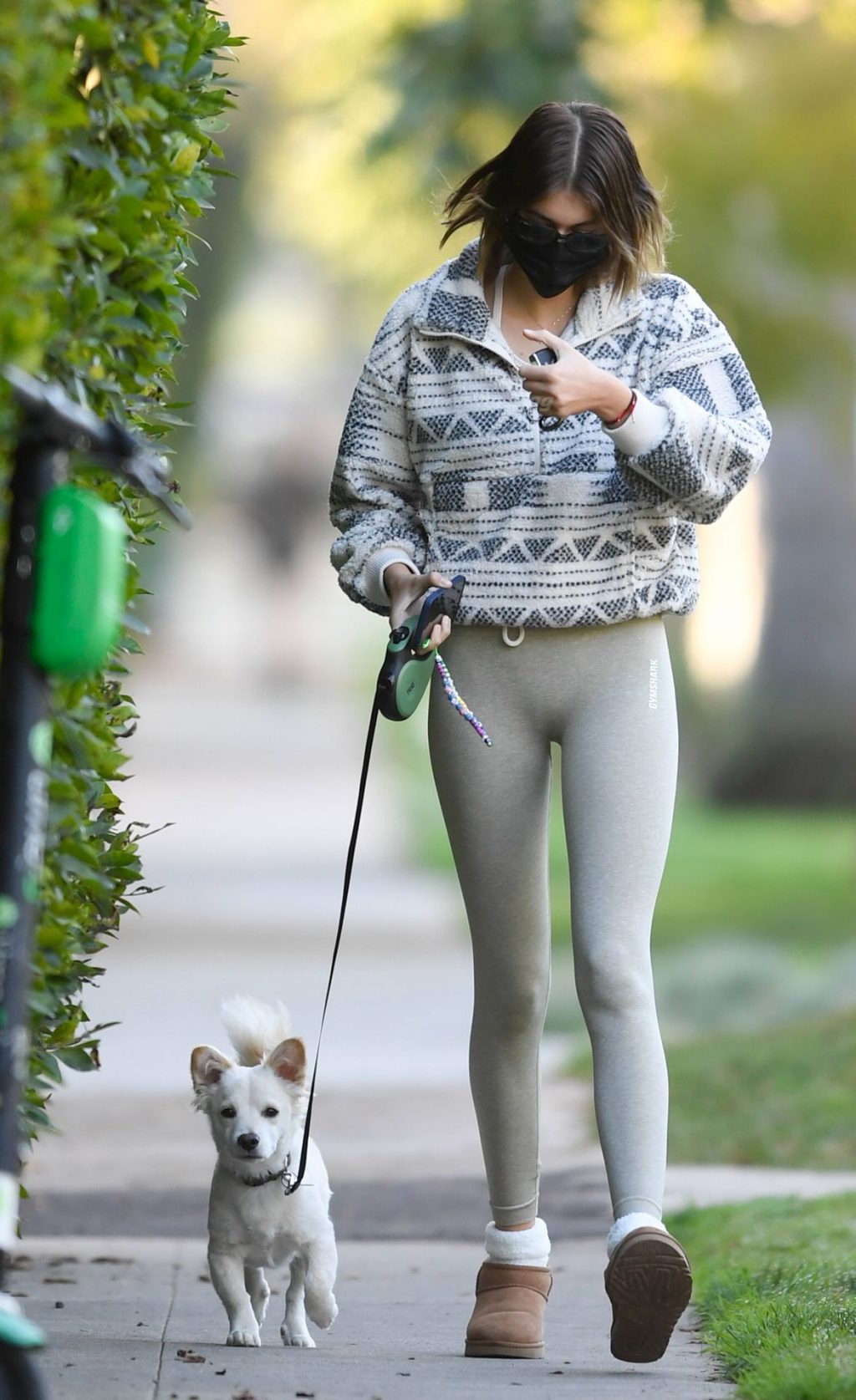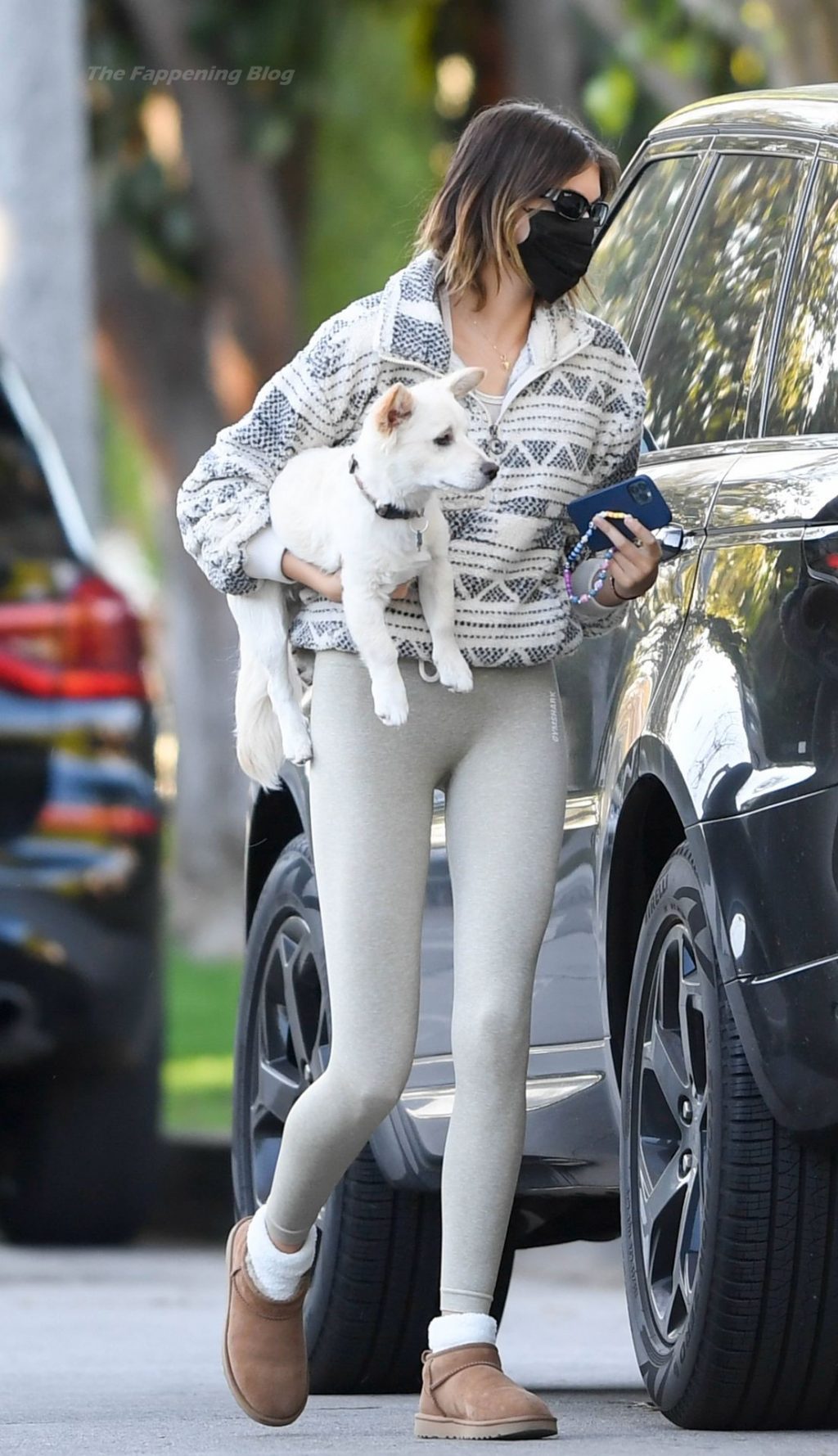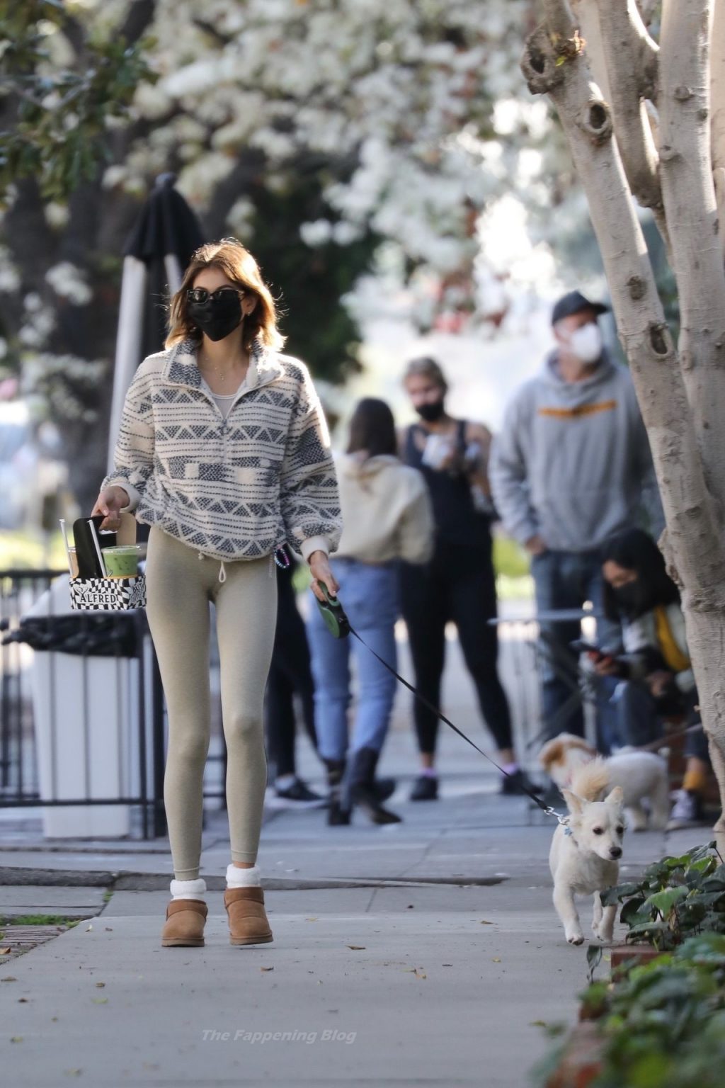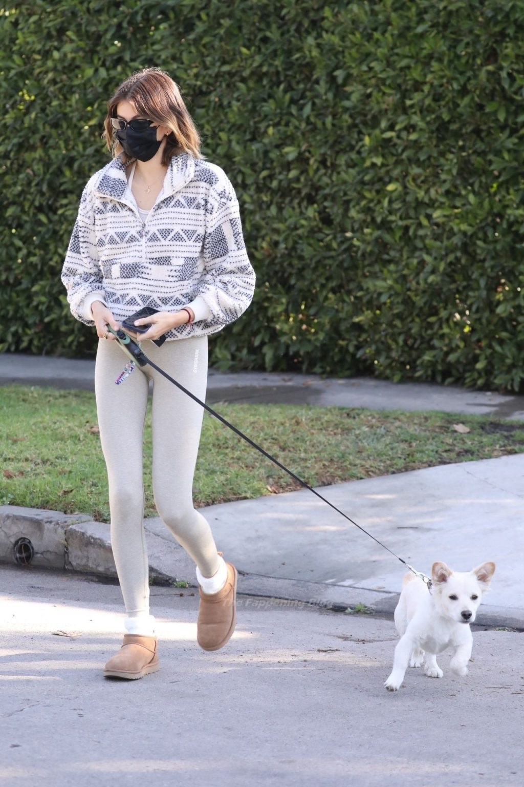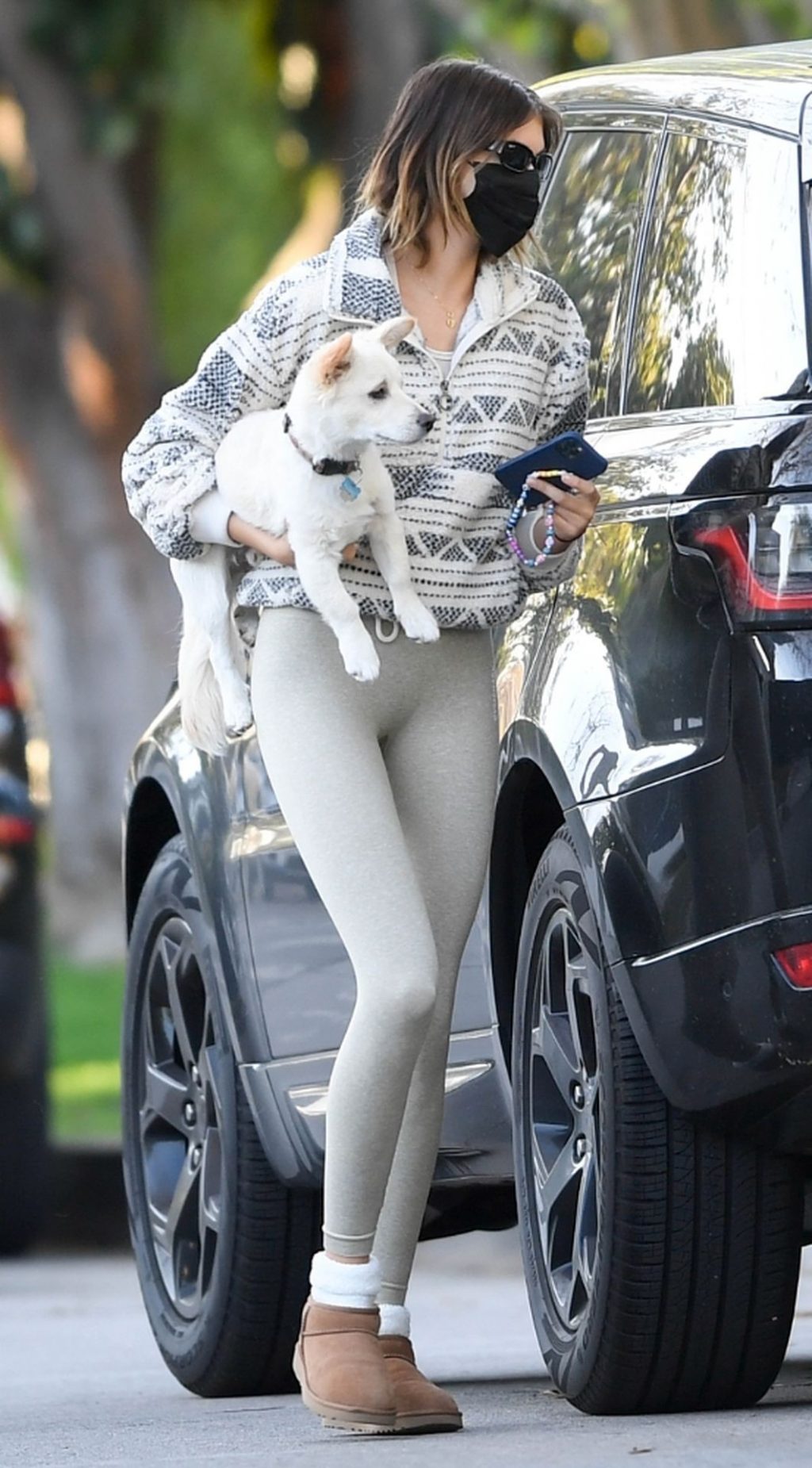 Супермодель Кайя Гербер выглядит уютно и тепло, останавливаясь на утренний кофе в Alfred Coffee после своей частной тренировки по пилатесу в Лос-Анджелесе, 02/02/2021. Ее сопровождал ее пес Майло.