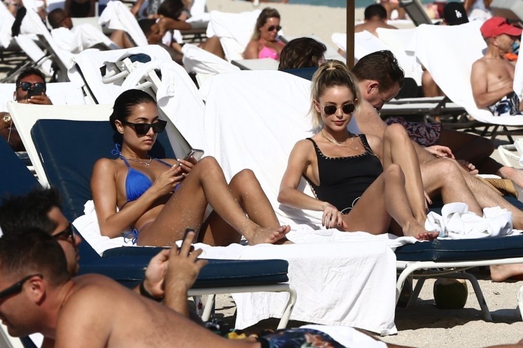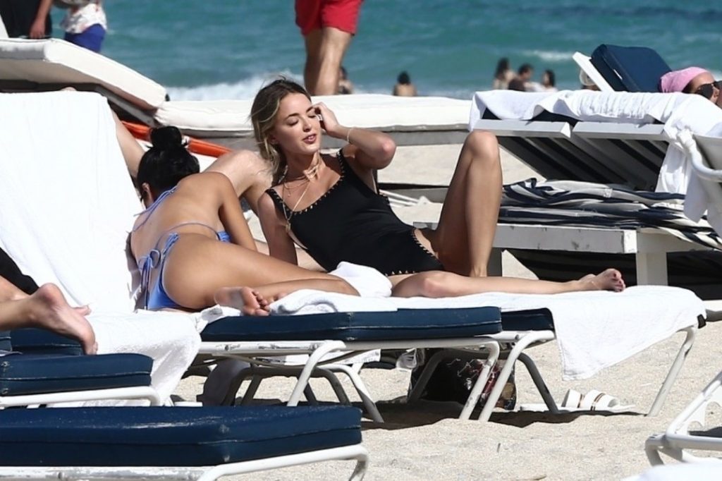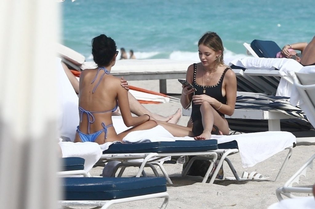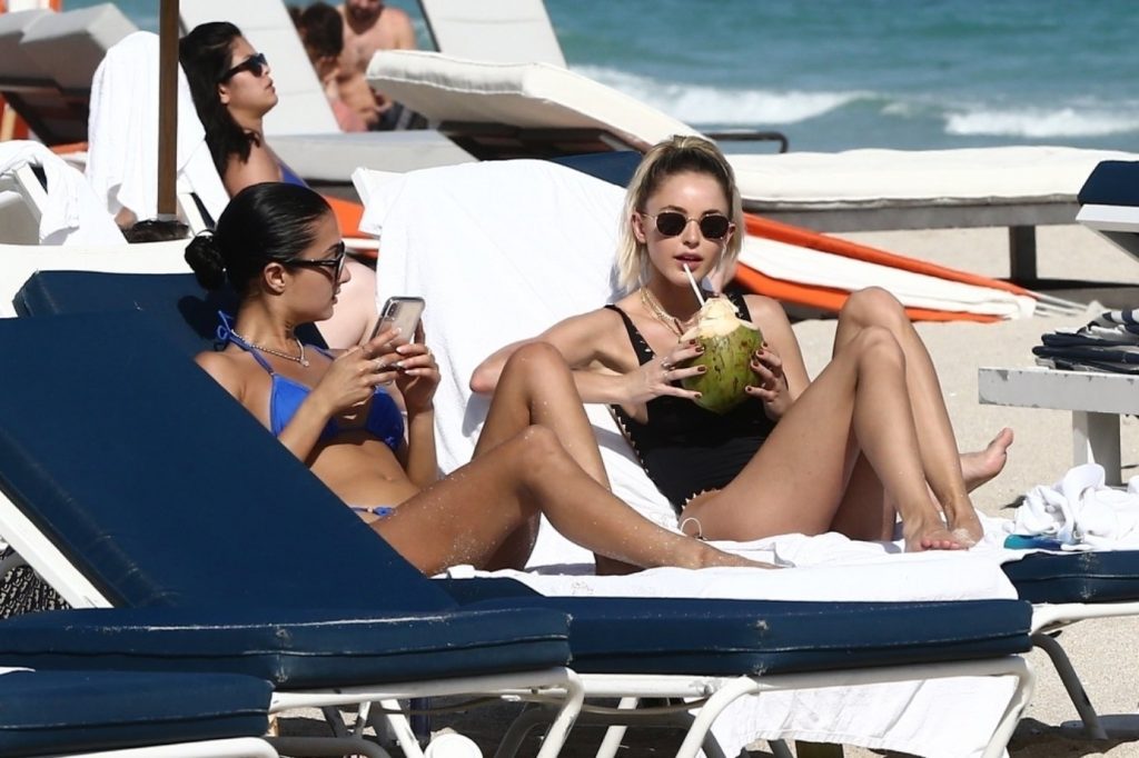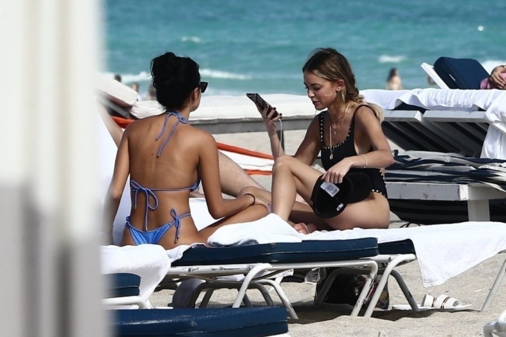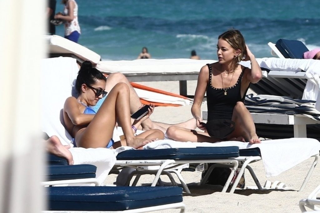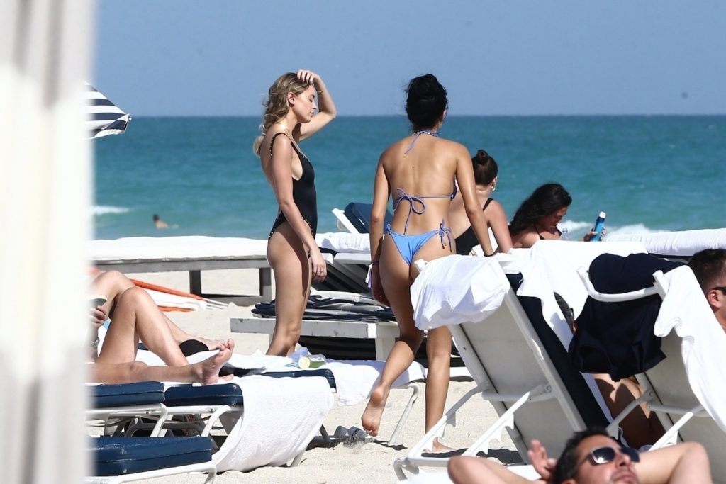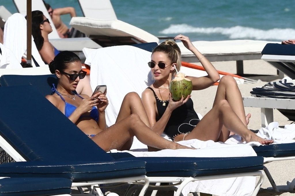 Личность из социальных сетей Кейтлин Картер наслаждается днем на пляже с Ракель Наташей во время Art Basel в Майами, 10.12.2019.