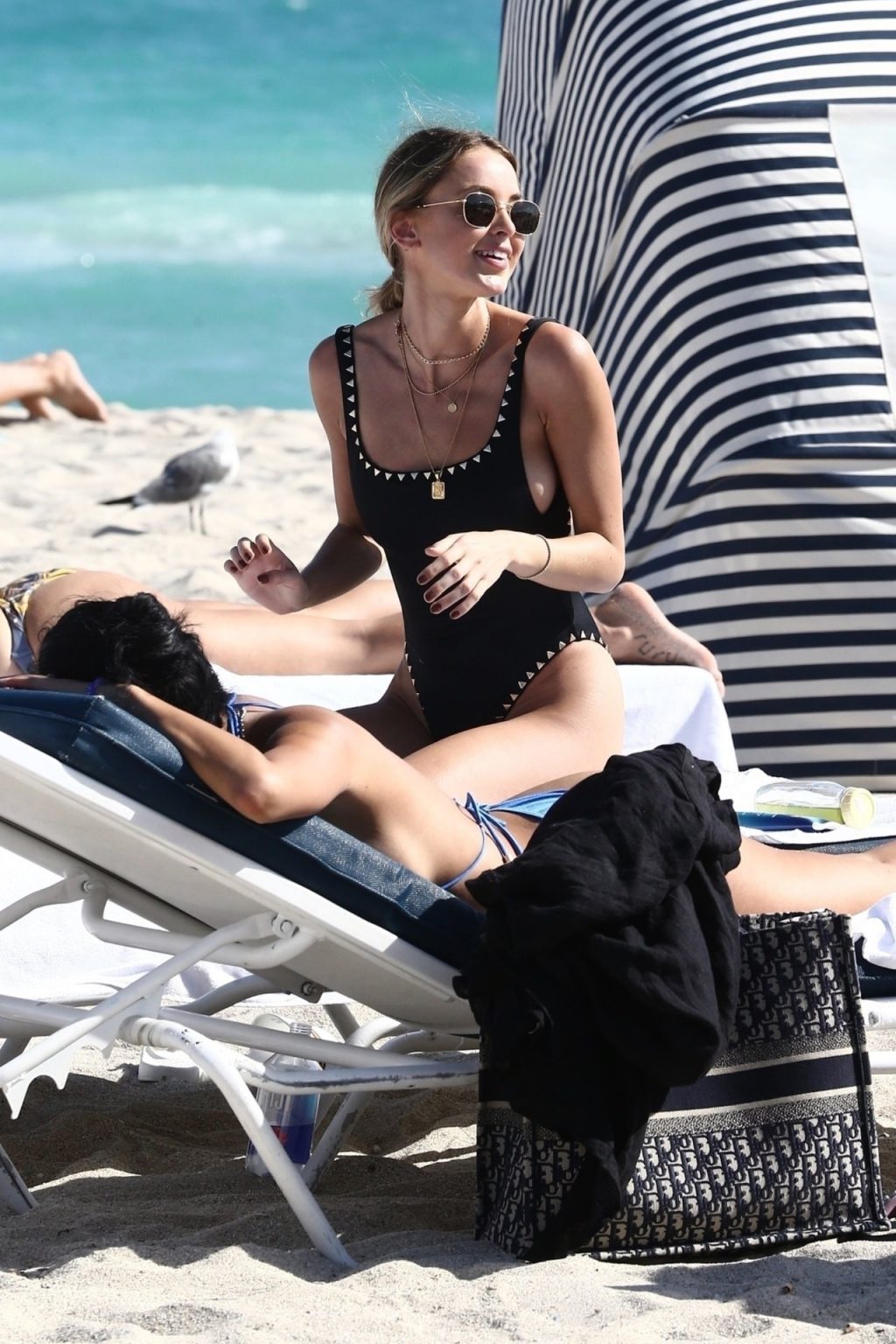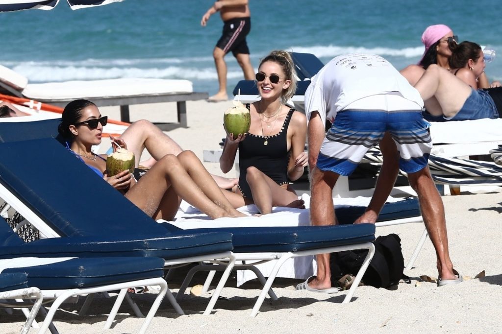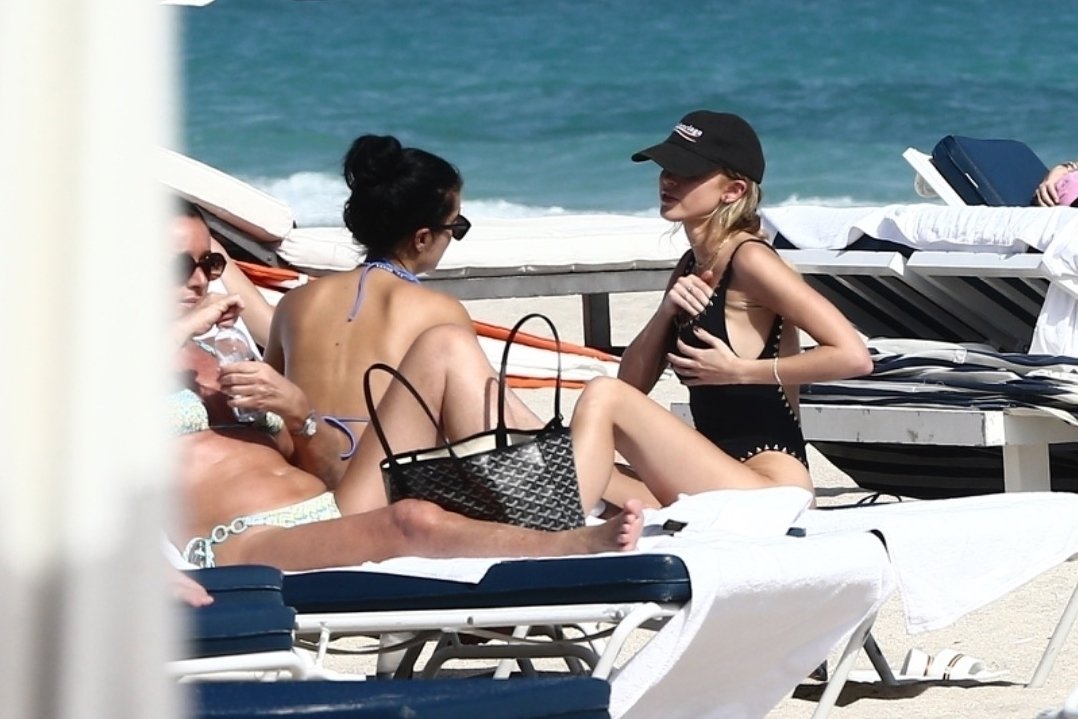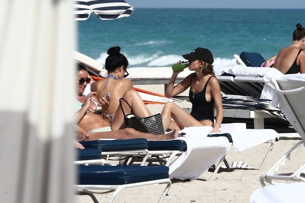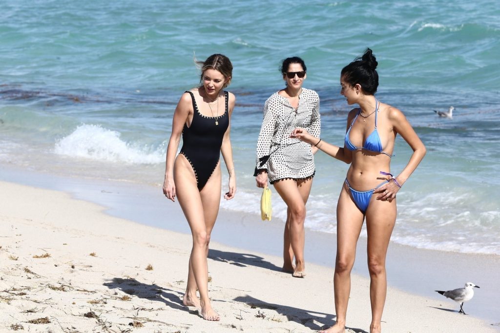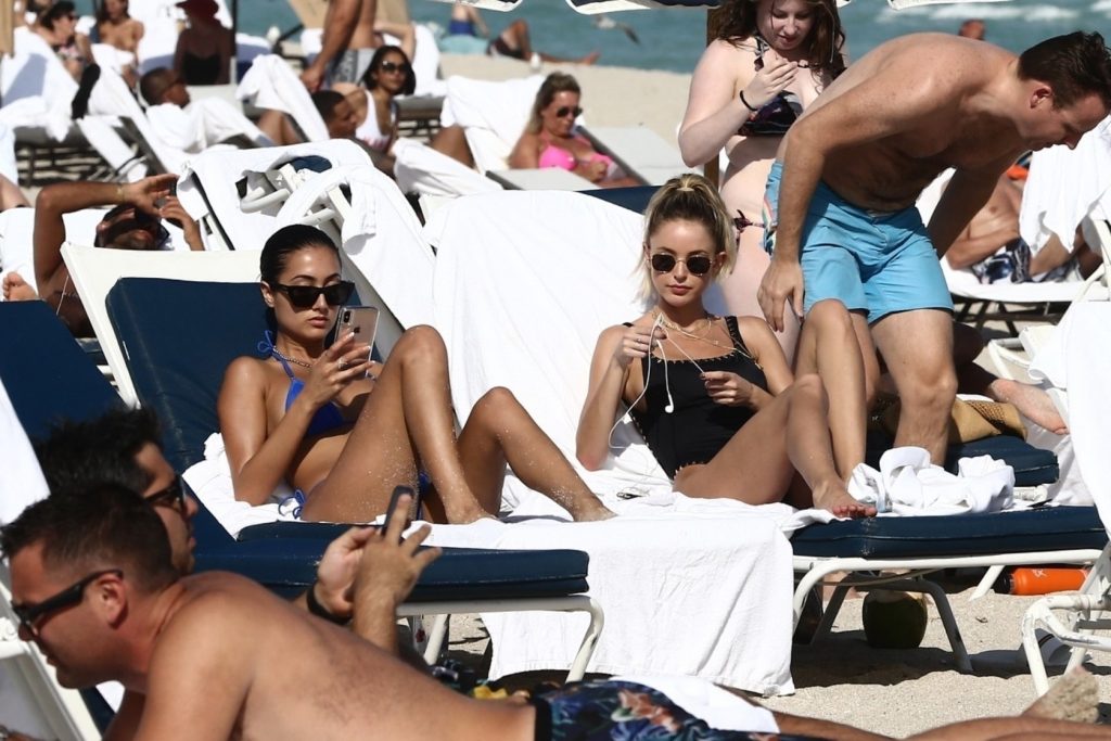 Личность из социальных сетей Кейтлин Картер наслаждается днем на пляже с Ракель Наташей во время Art Basel в Майами, 10.12.2019.