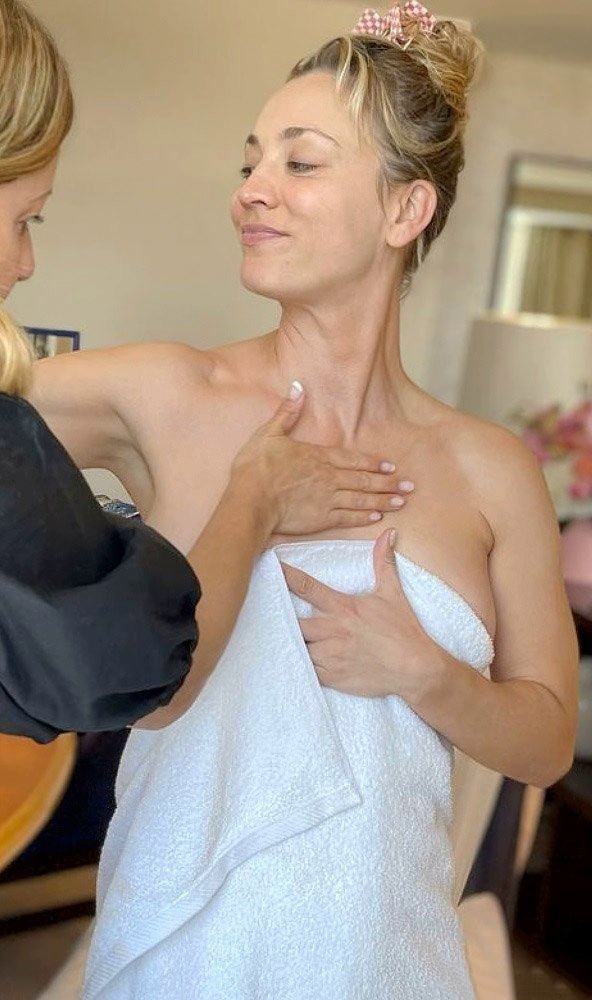 Check this out, guys! Here is a leaked video in which we can see Kaley Cuoco’s nude tits! This firey blonde loves showing off her girlfriends to her partner, and he loves filming them and taking photos of them! So folks, if you wish to see this sexy woman’s breast when they fall out of the robe – just press play!