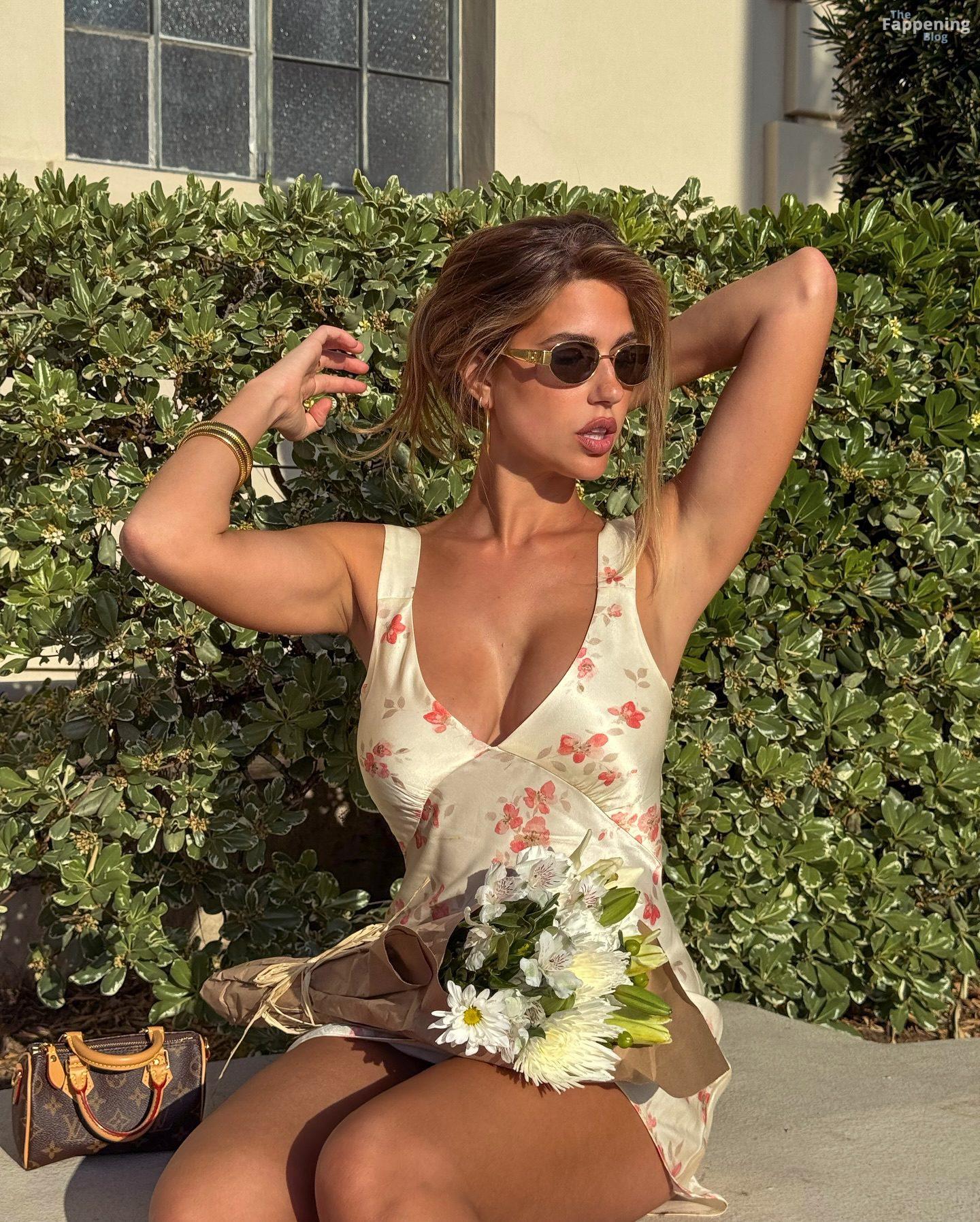 Американская модель Кара Дел Торо позирует в цветочном мини-платье в этой фотосессии для социальных сетей.