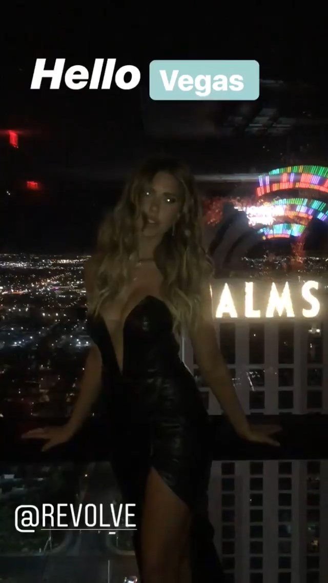 Пышногрудая модель Кара Дел Торо продемонстрировала свое декольте в черном кожаном платье на Второй ежегодной церемонии награждения #REVOLVEawards от Revolve в Лас-Вегасе, 09.11.2018.