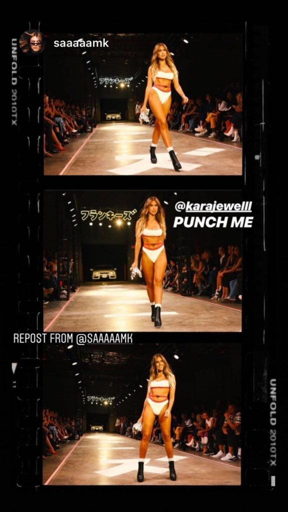 Kara Del Toro вышла на подиум во время показа Frankie’s Bikinis Resort 2019 в Лос-Анджелесе, 21.06.2018. Kara Del Toro — 24-летняя американская модель из Техаса. Девушка снимается для различных журналов, включая знаменитый Maxim.