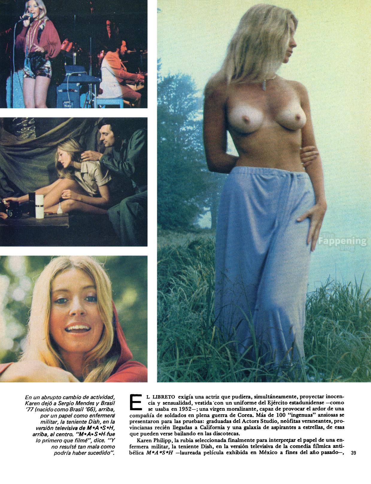 Познакомьтесь с Карен Филлипп, родившейся 7 сентября 1945 года, бывшей американской певицей и актрисой. Она сыграла лейтенанта Диша в первом сезоне сериала M*A*S*H. Её роль была вырезана после двух эпизодов, но её оставили в начальных титрах на весь сериал. Позже она появилась в роли Робин Роллин в сезонах 3-6 сериала Quincy, M.E. Карен также полностью раскрылась, позируя обнажённой для фотосессии в Playboy в сентябре 1972 года, чтобы поддержать своё участие в M*A*S*H.