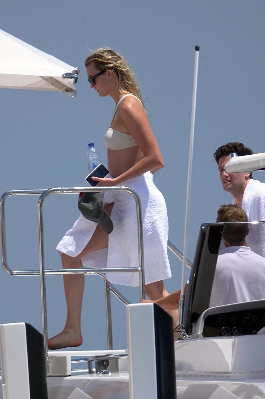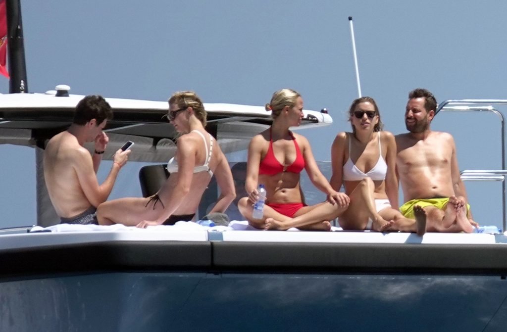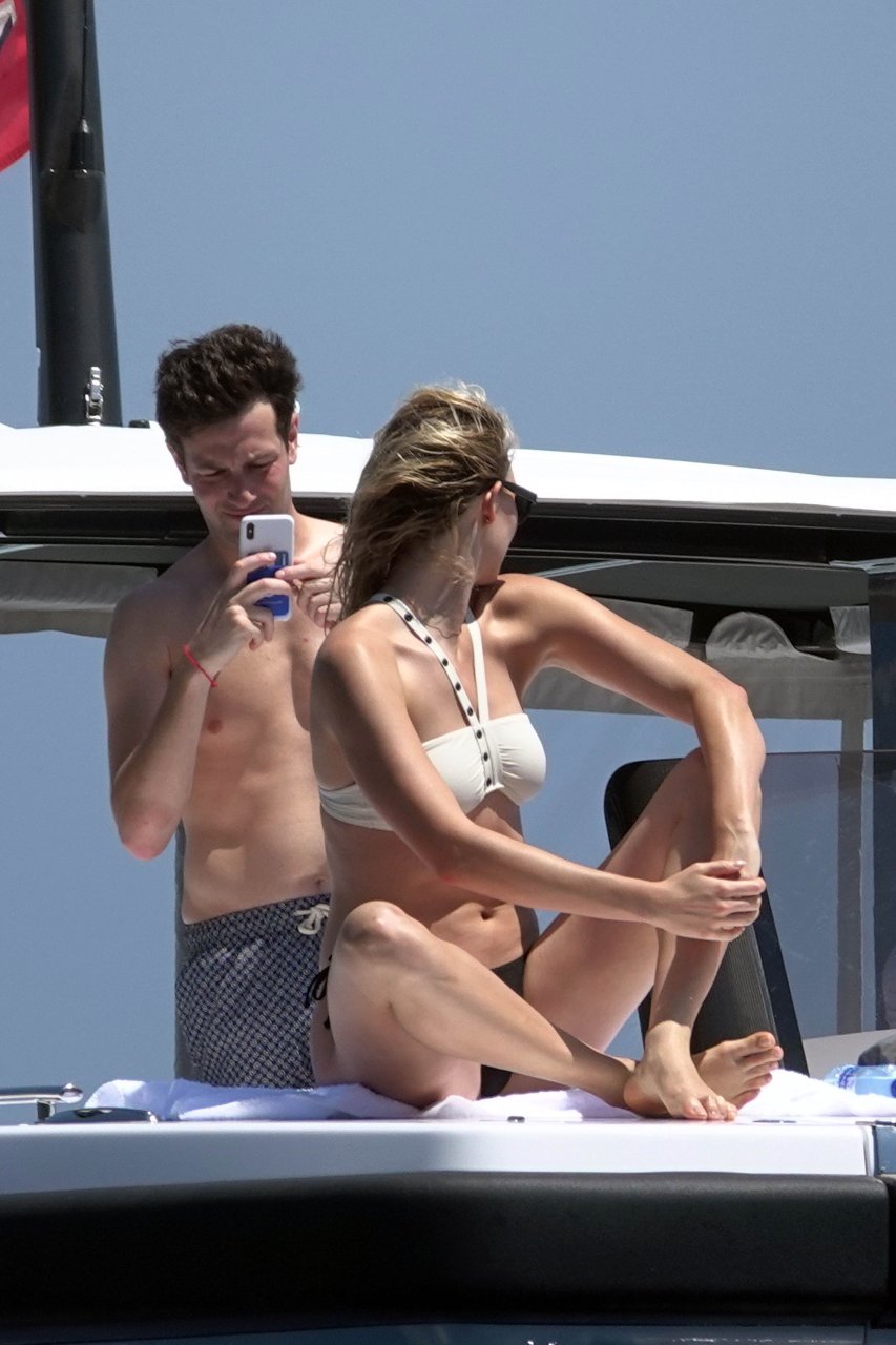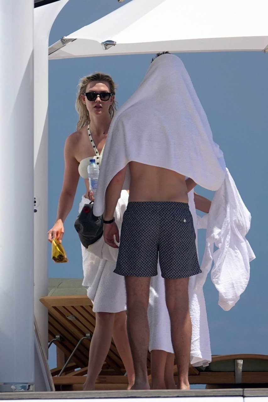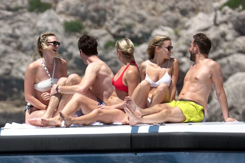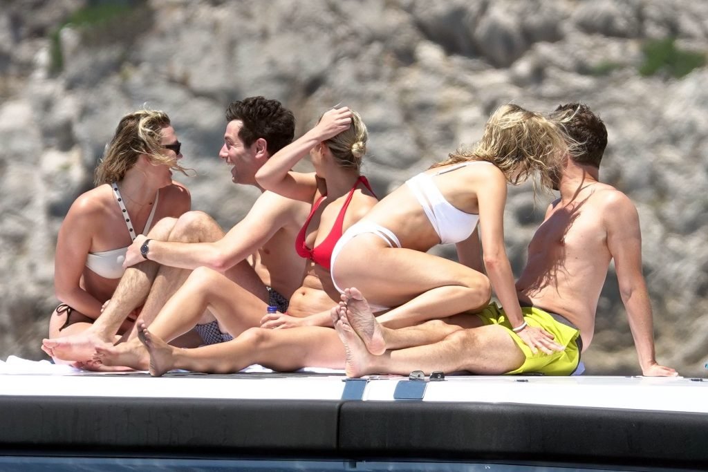 Модель Карли Клосс (25) и её парень Джошуа Кушнер были замечены, как наслаждаются днем на море с друзьями во время отпуска на Капри, Италия, 20.07.2018.