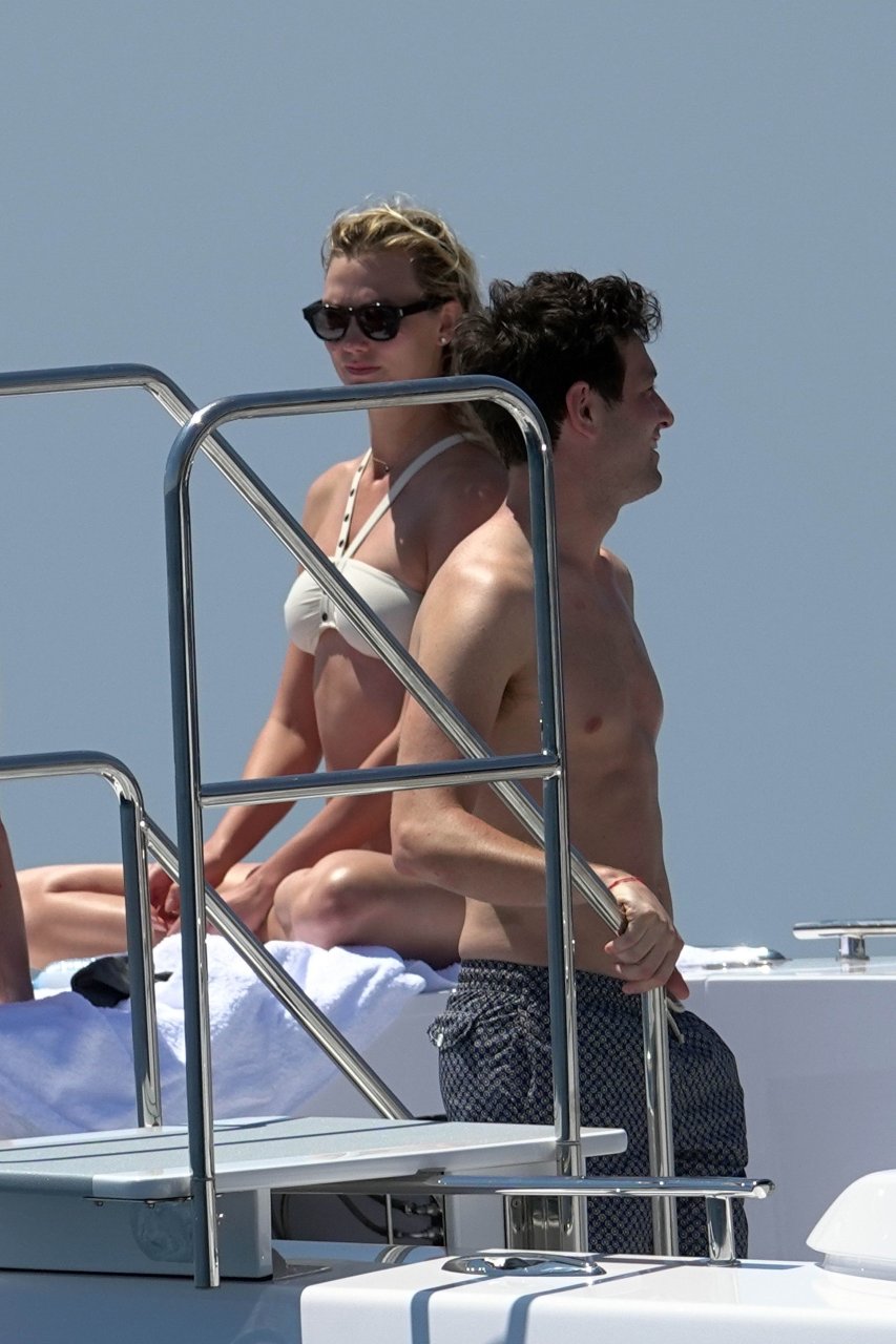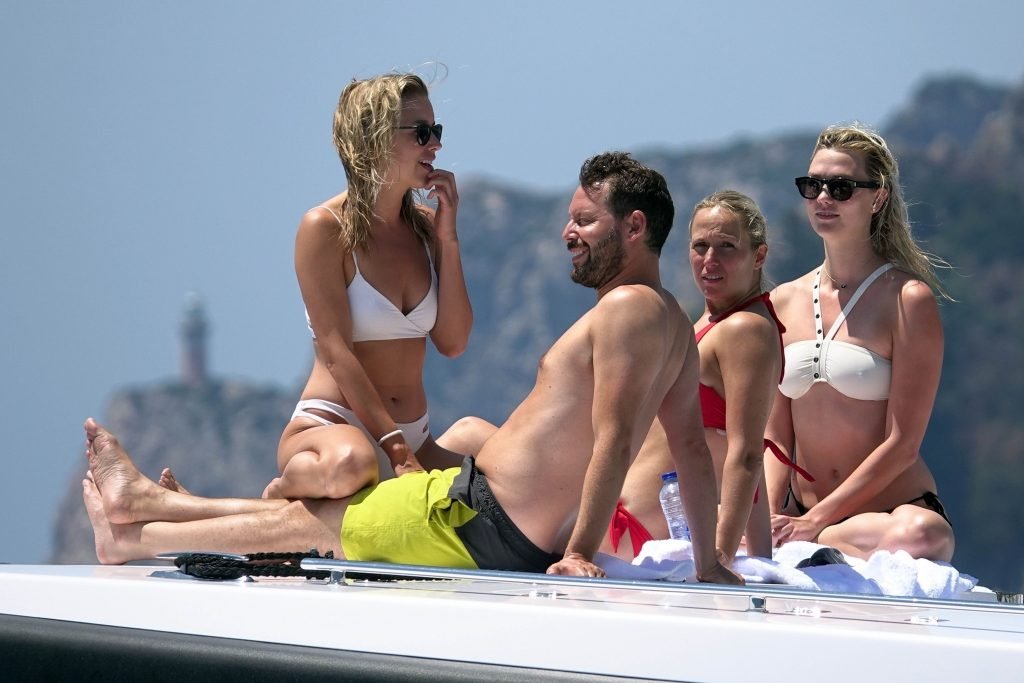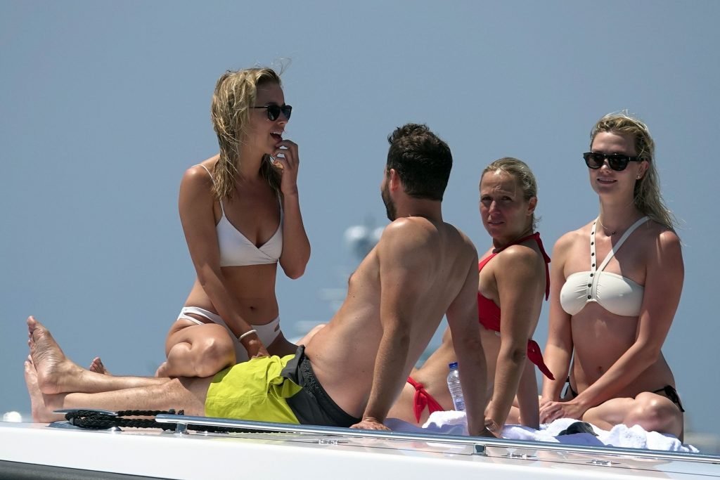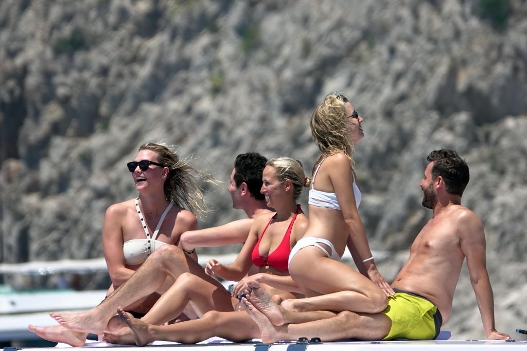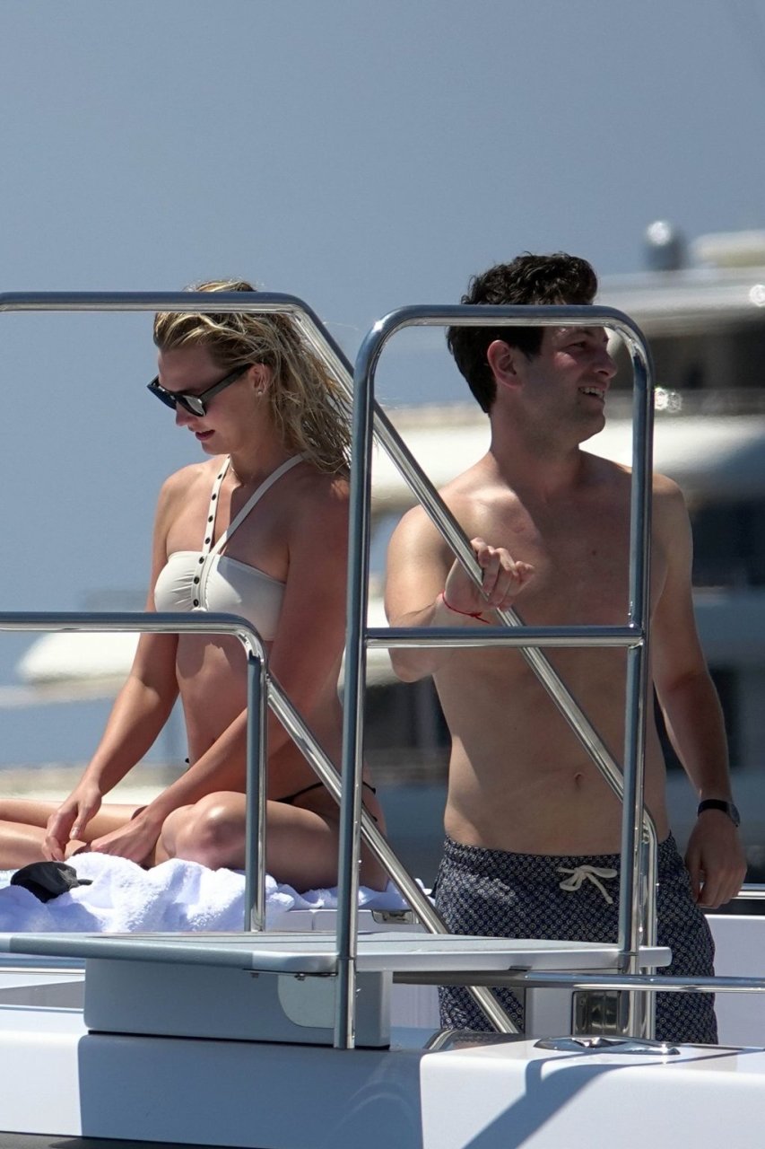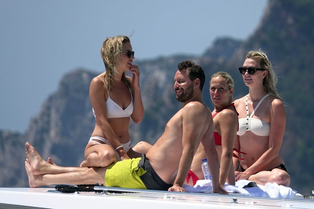 Модель Карли Клосс (25) и её парень Джошуа Кушнер были замечены, как наслаждаются днем на море с друзьями во время отпуска на Капри, Италия, 20.07.2018.