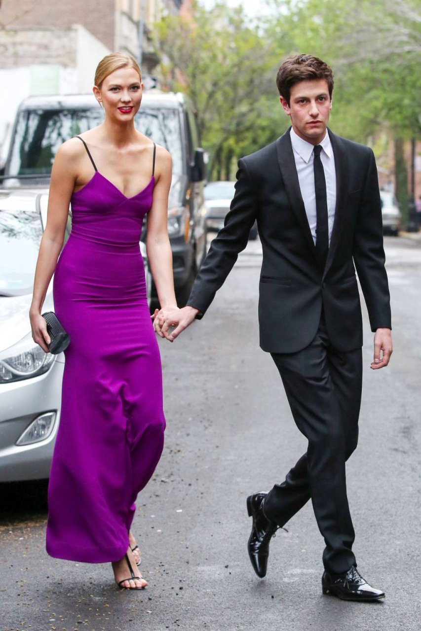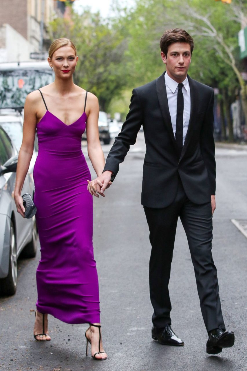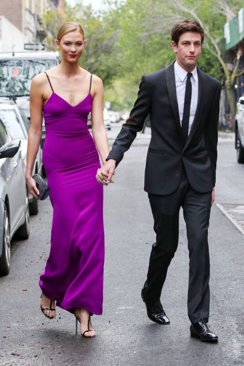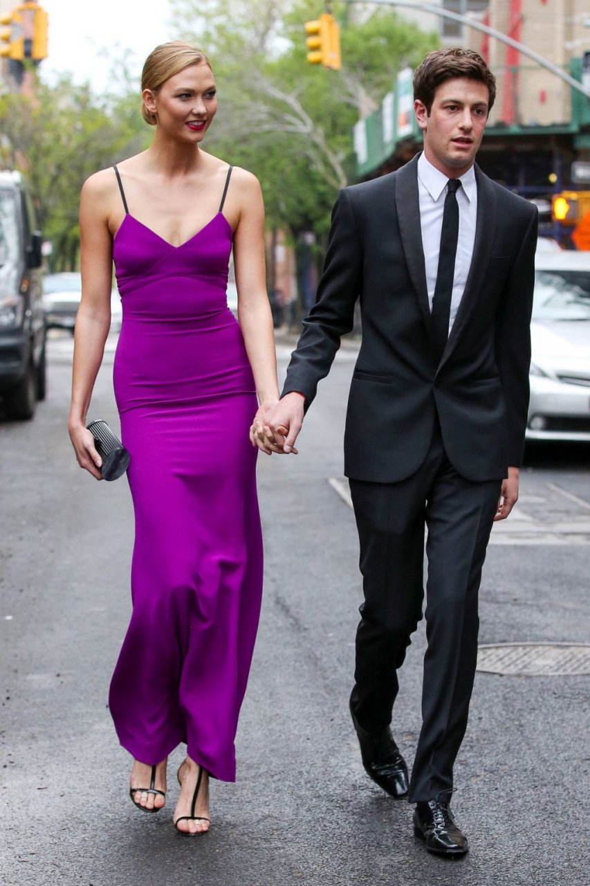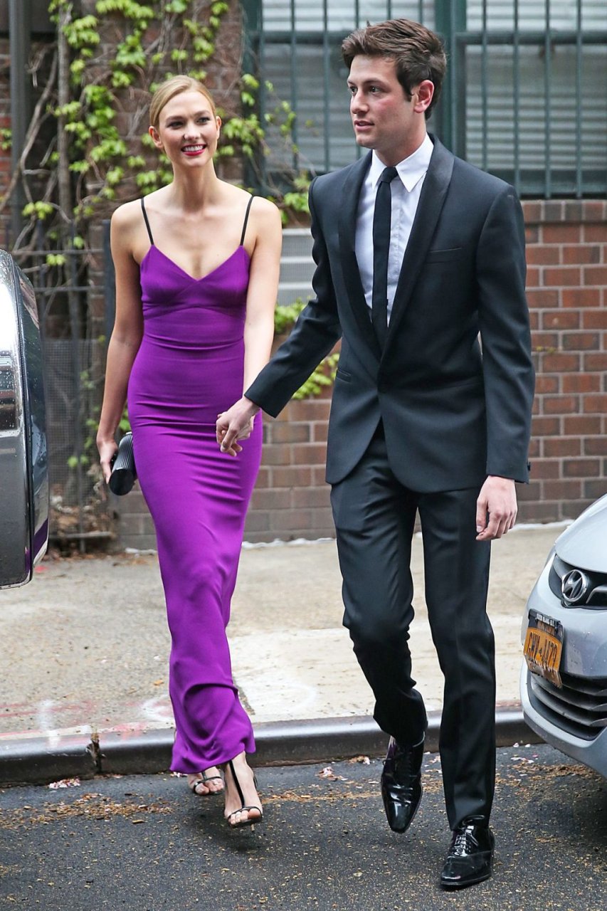 Длинноногая модель Карли Клосс отдает дань уважения Принсу в фиолетовом платье, посетив гала-вечер Time 100 в Нью-Йорке вместе с бойфрендом Джошуа Кушнером, 26.04.2016.