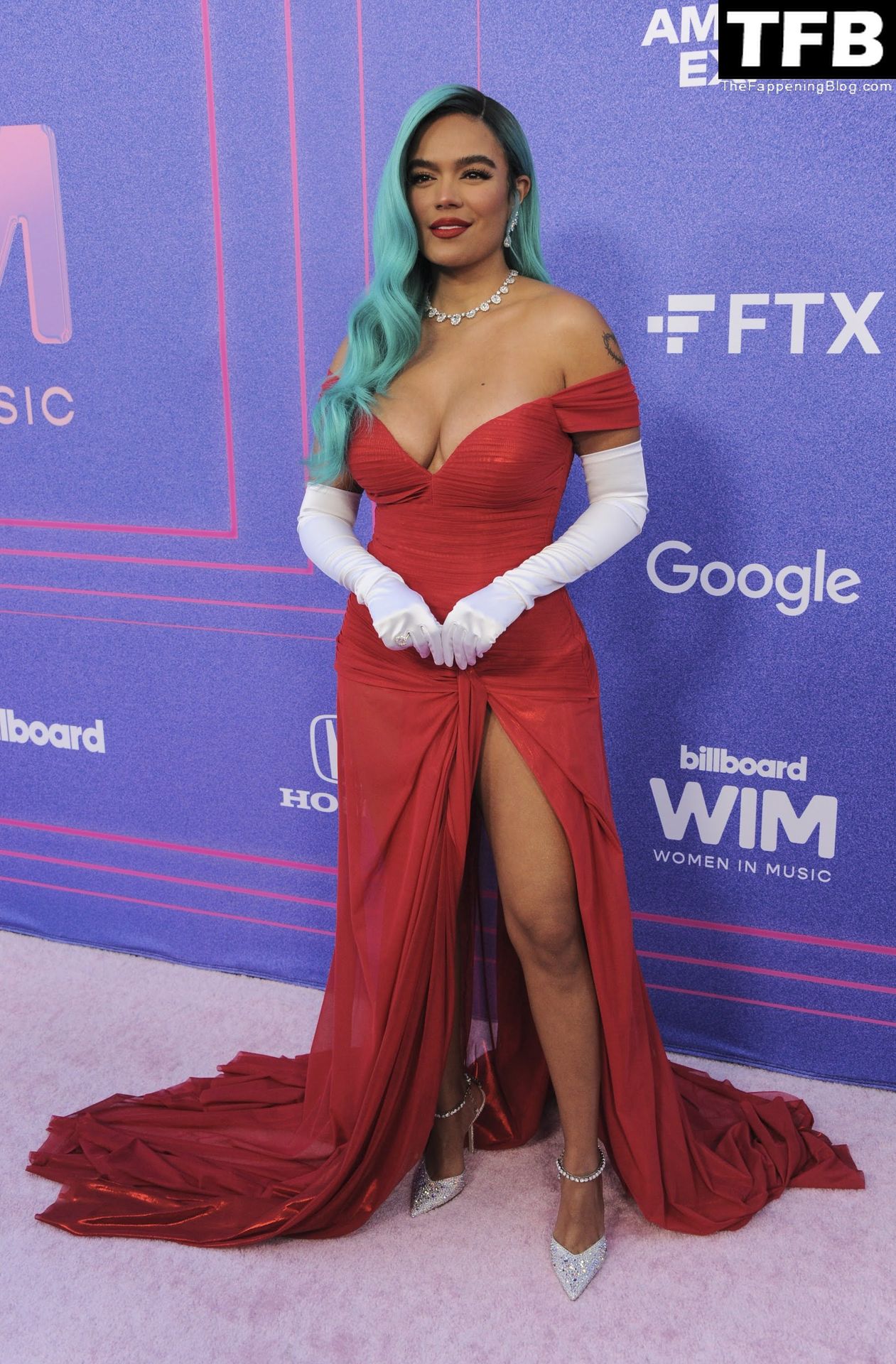 Кароль Джи поражает на красной дорожке церемонии Billboard Women in Music Awards в YouTube Theater в Hollywood Park в Лос-Анджелесе, 03/02/2022.