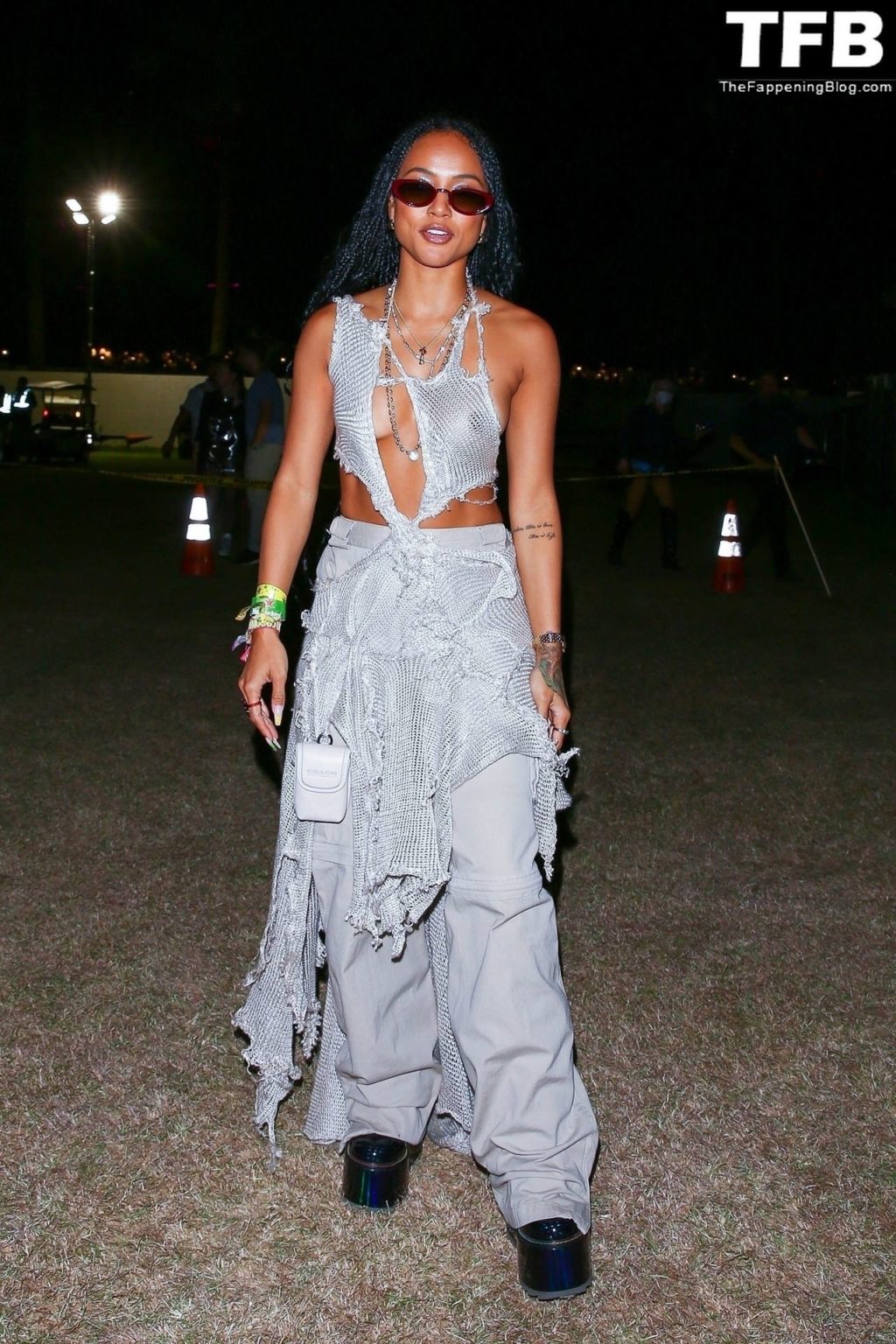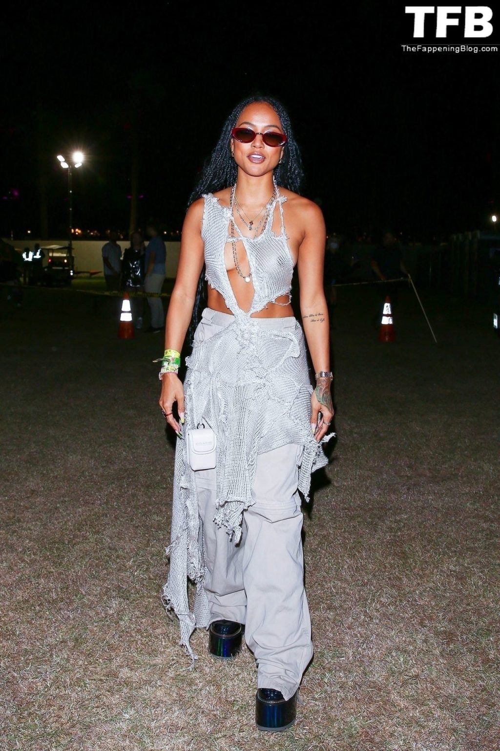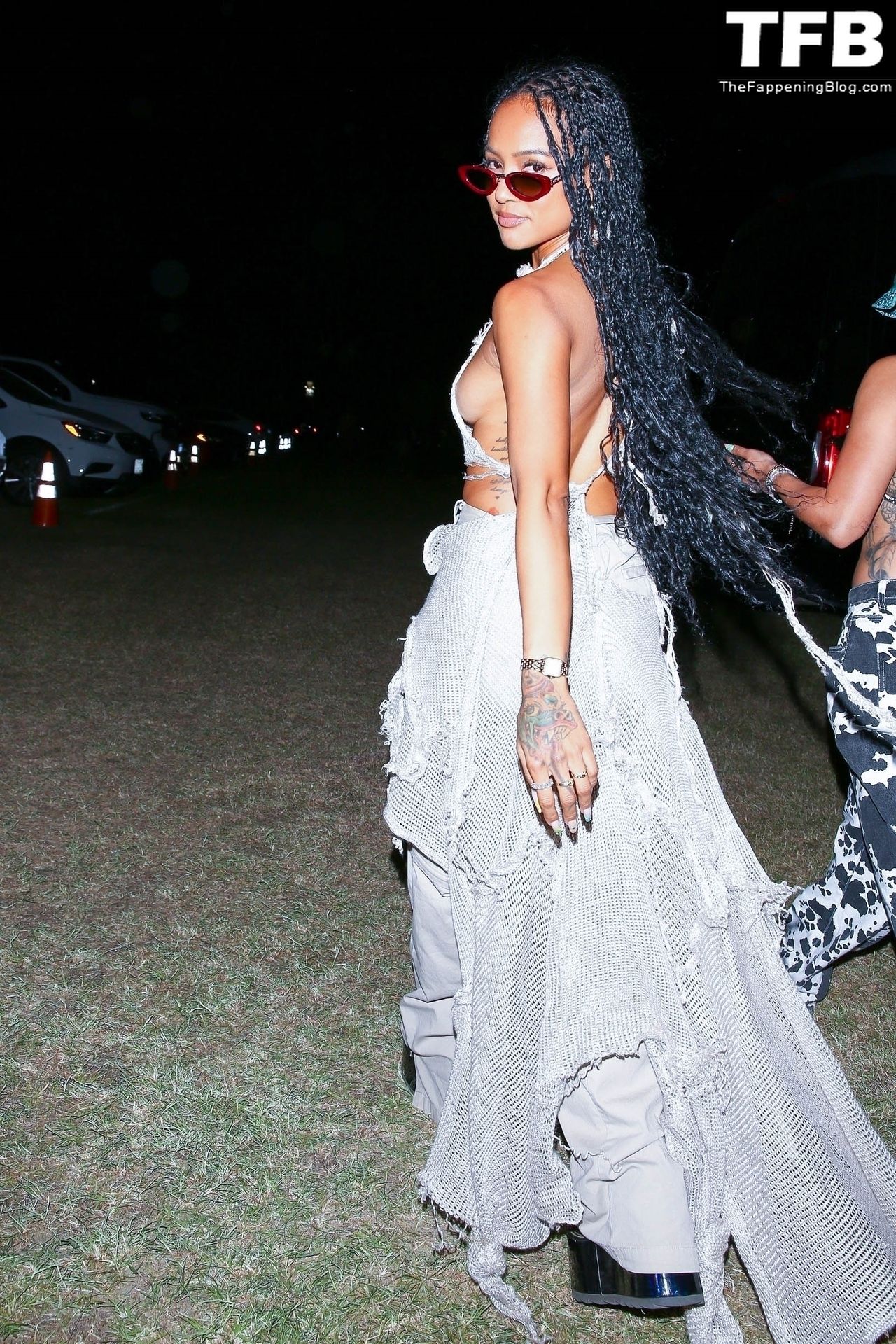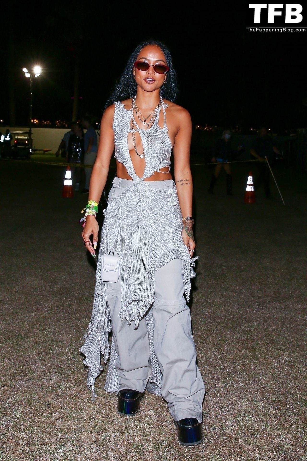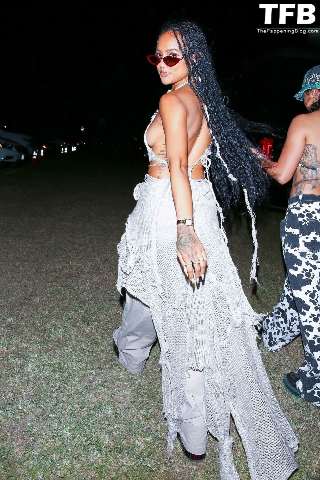 Без бюстгальтера Карруче Тран покидает первый день музыкального и художественного фестиваля Coachella Valley в Индио, 16.04.2022.