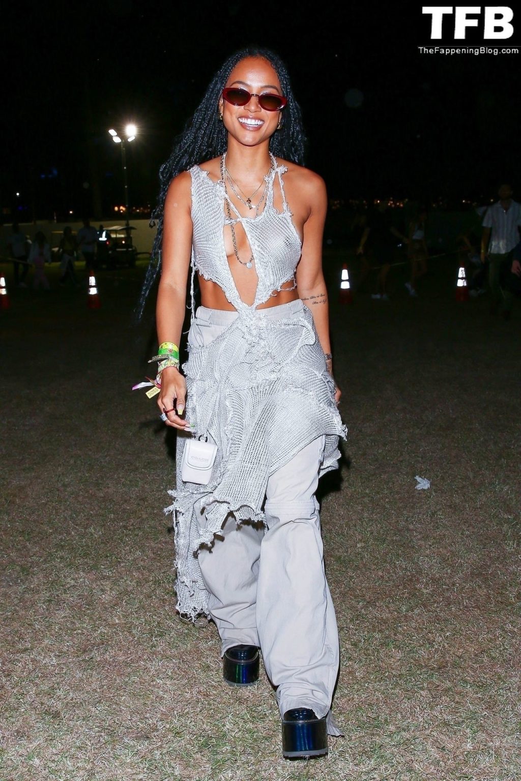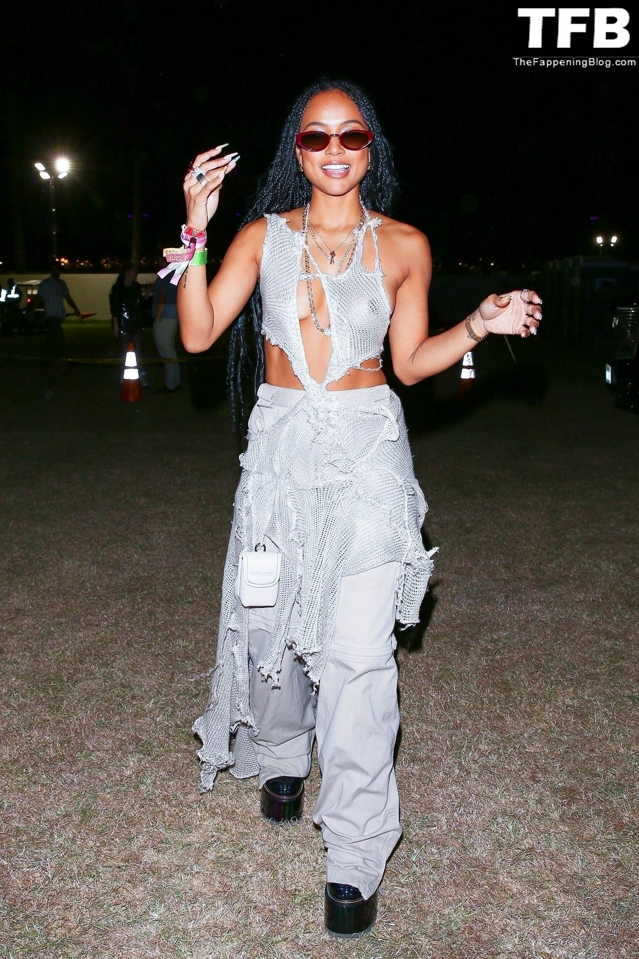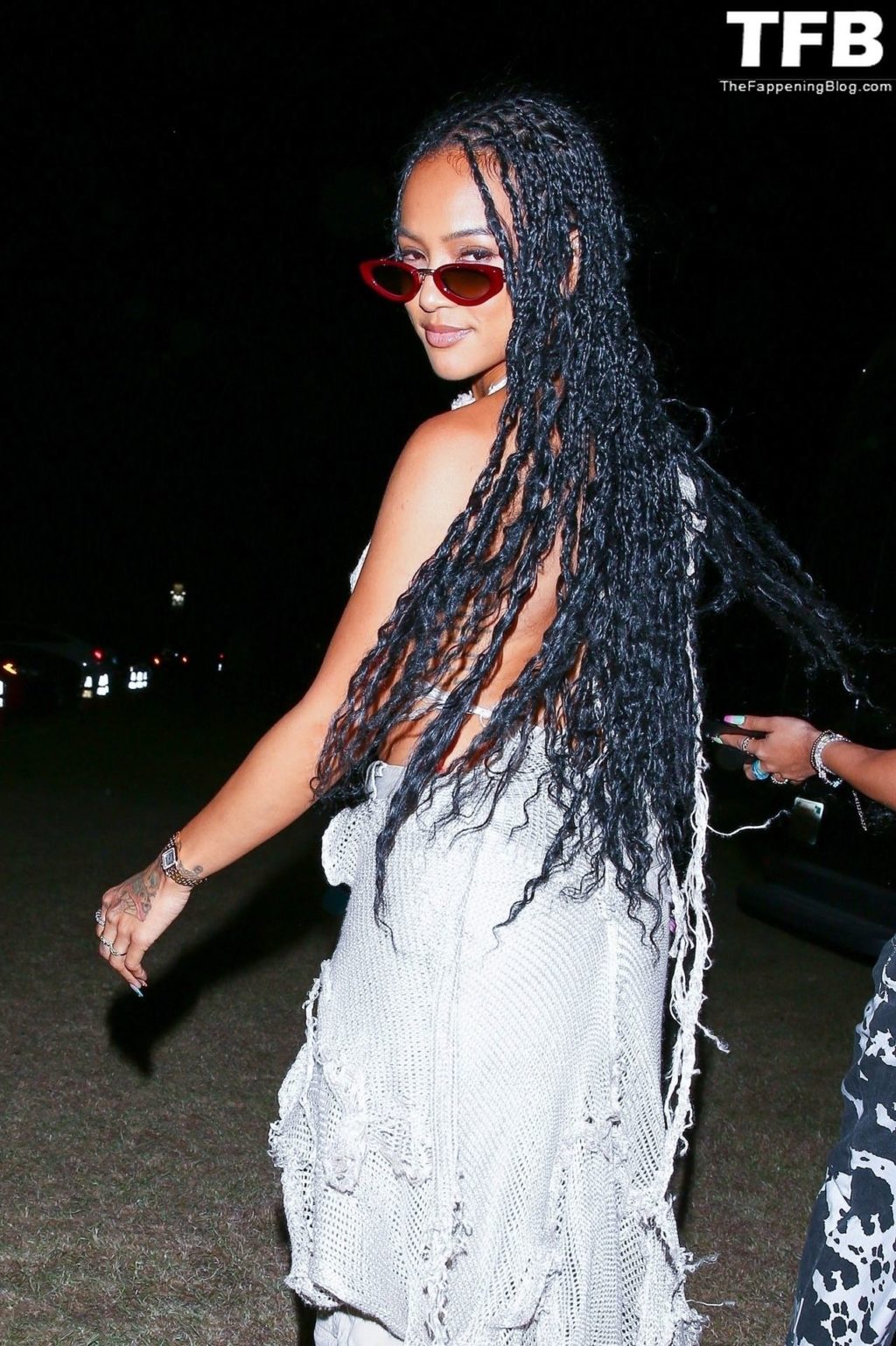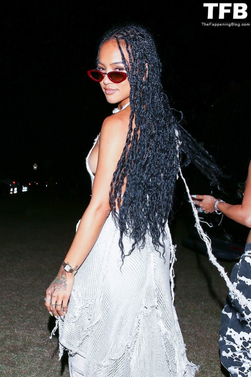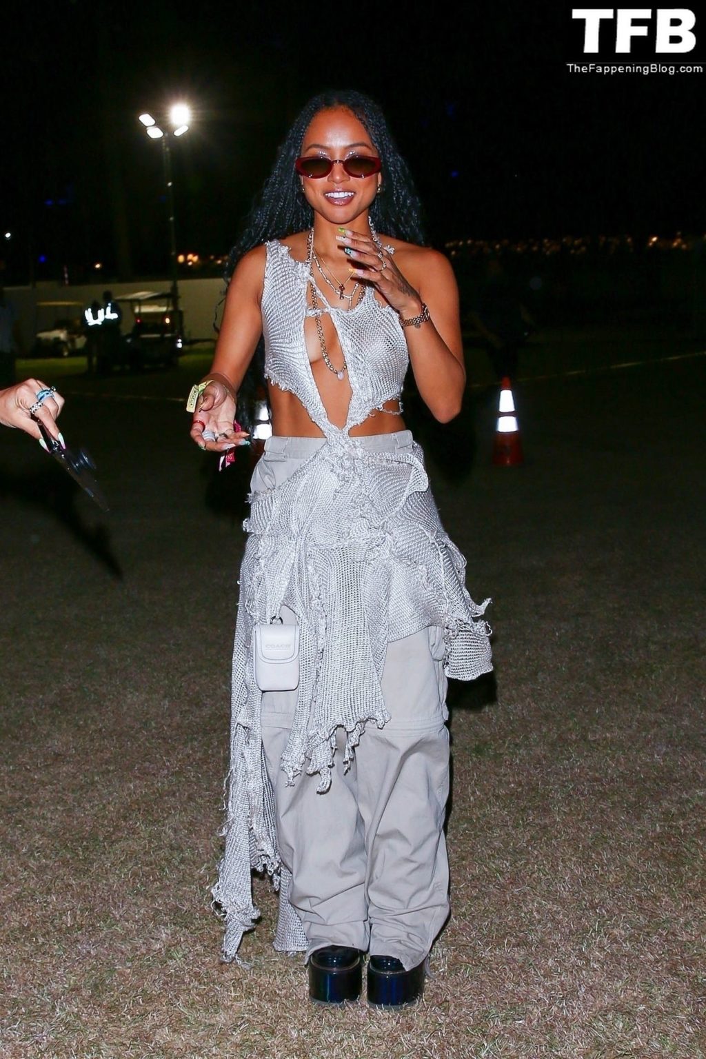 Без бюстгальтера Карруче Тран покидает первый день музыкального и художественного фестиваля Coachella Valley в Индио, 16.04.2022.