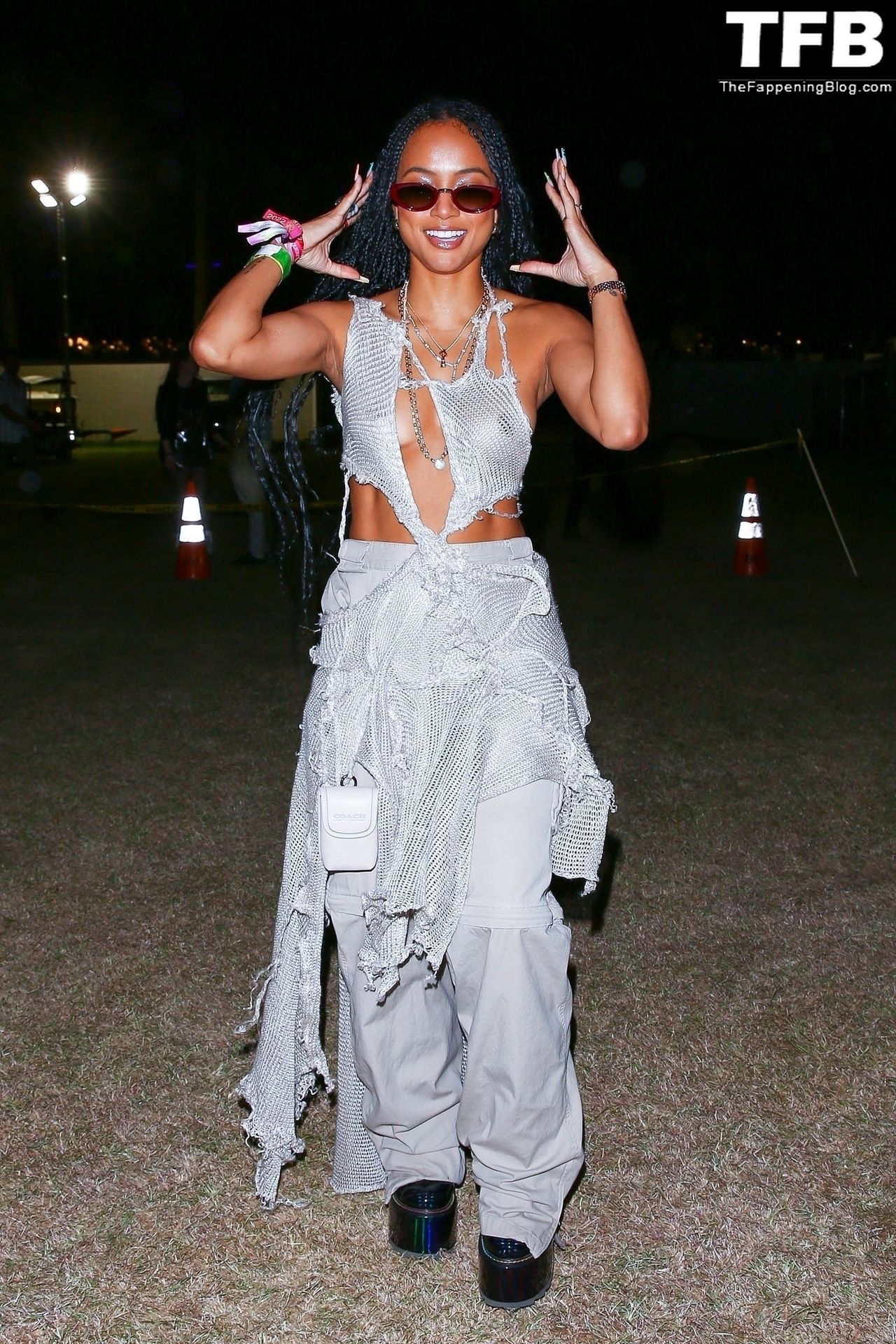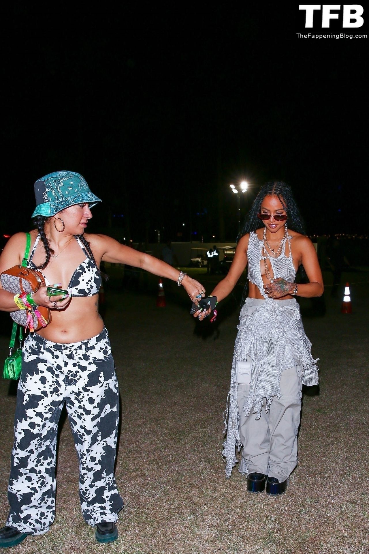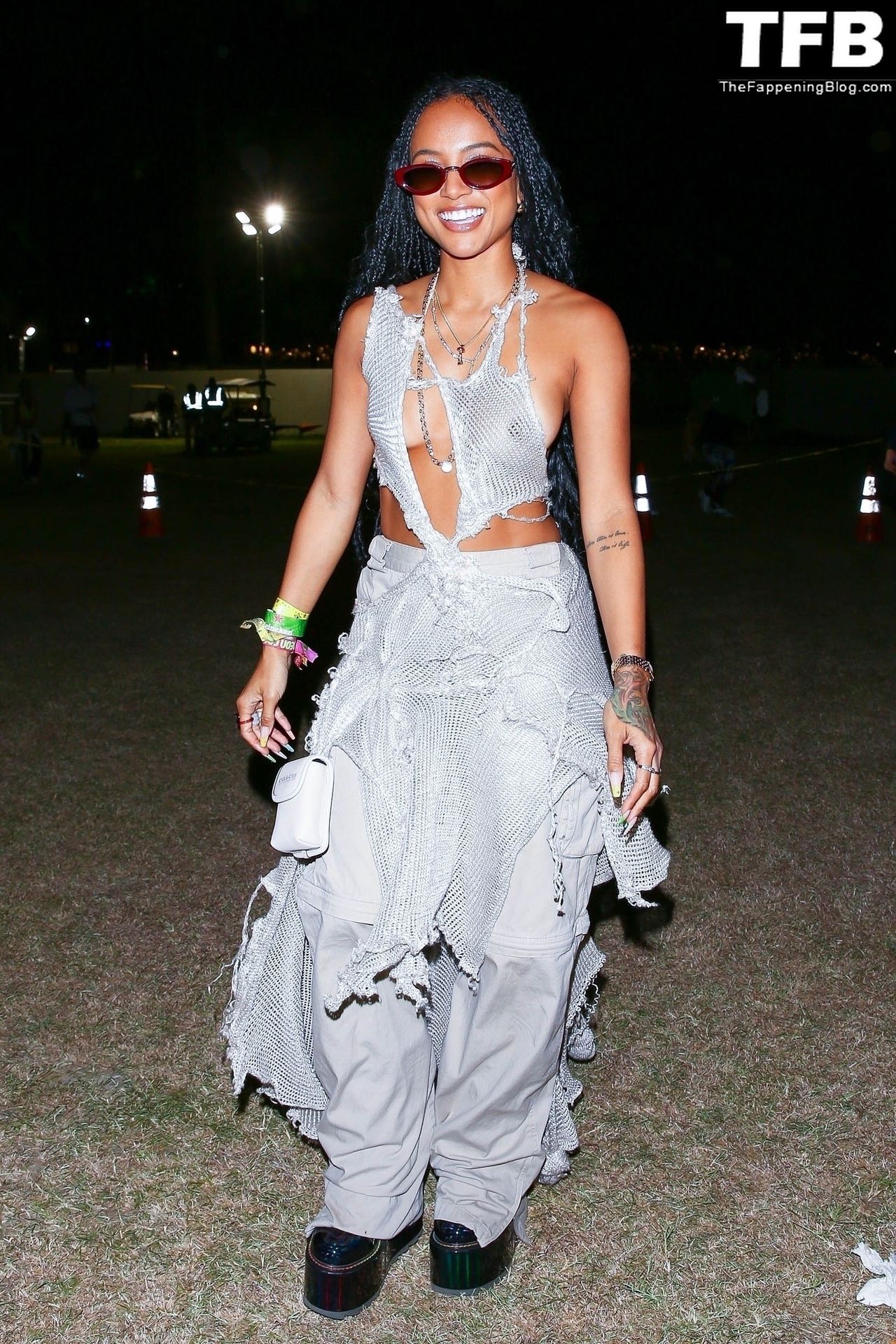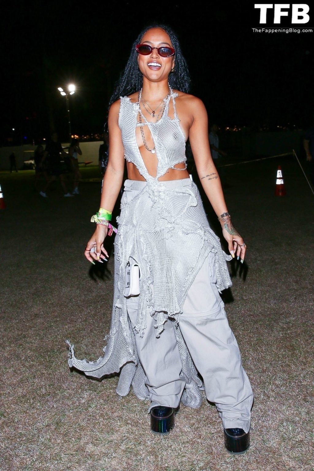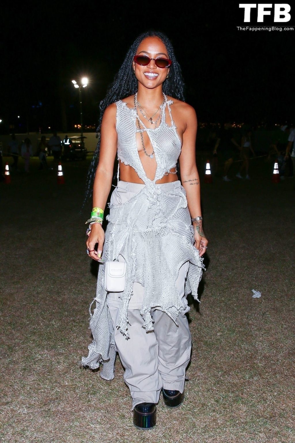 Без бюстгальтера Карруче Тран покидает первый день музыкального и художественного фестиваля Coachella Valley в Индио, 16.04.2022.