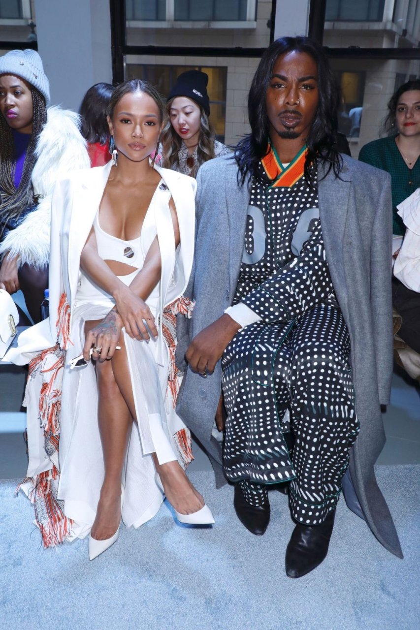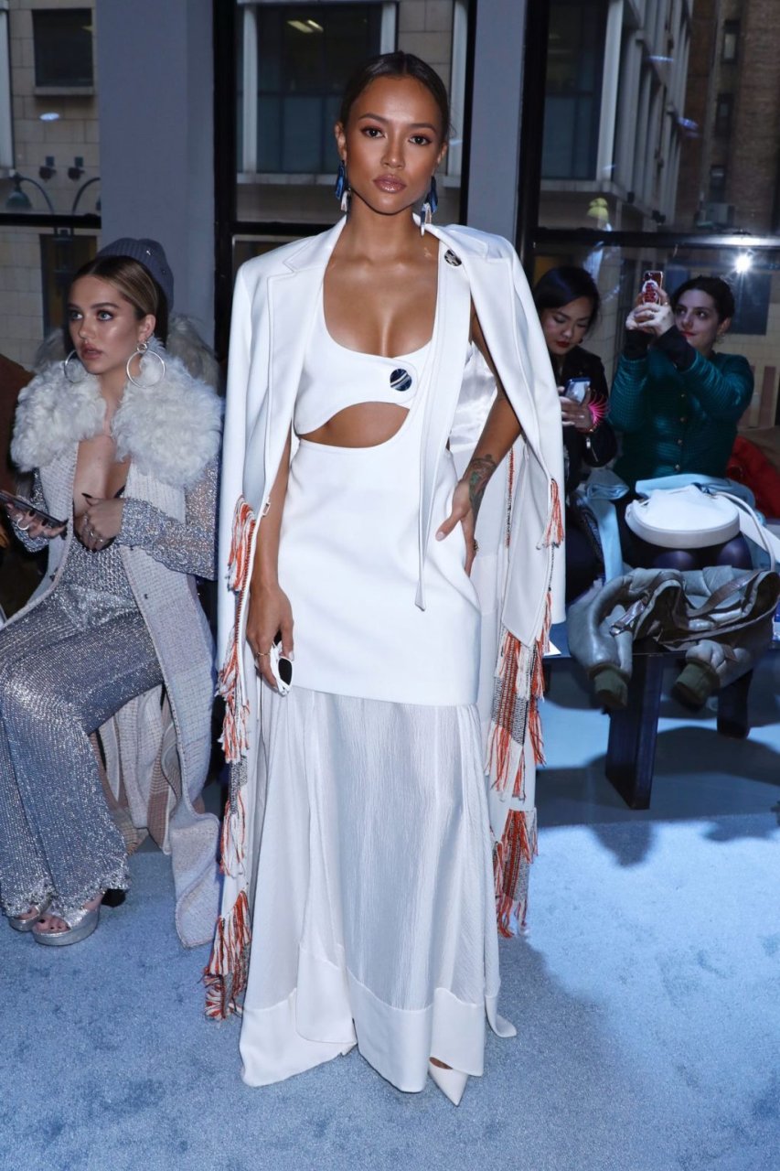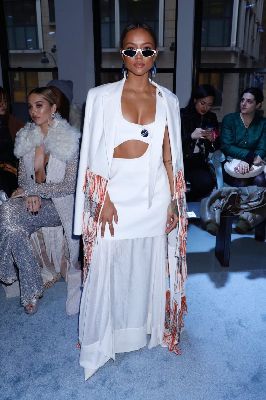 Karrueche Tran продемонстрировала декольте в белом образе на показе 3.1 Phillip Lim осень/зима 2019 во время Недели моды в Нью-Йорке, 11.02.2019.